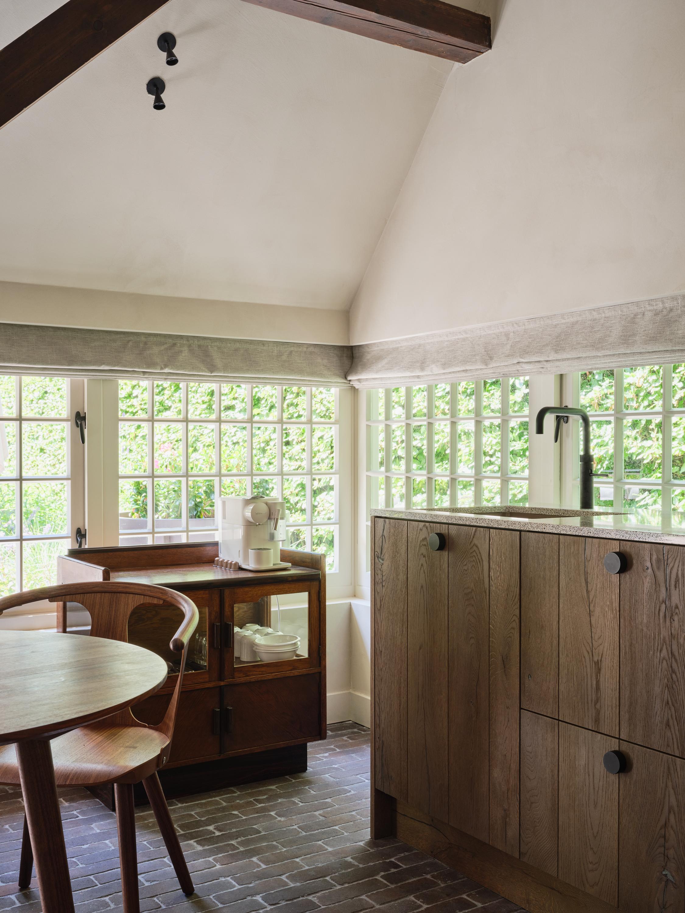 The former coach house has been converted into a luxurious, self-contained guest house with recreational facilities. This stylish studio features a living/sleeping area, a modern open-plan kitchen and a bathroom with a walk-in shower and separate toilet, and is also fitted with underfloor heating, a wood-burning stove and air conditioning, ensuring extra comfort.