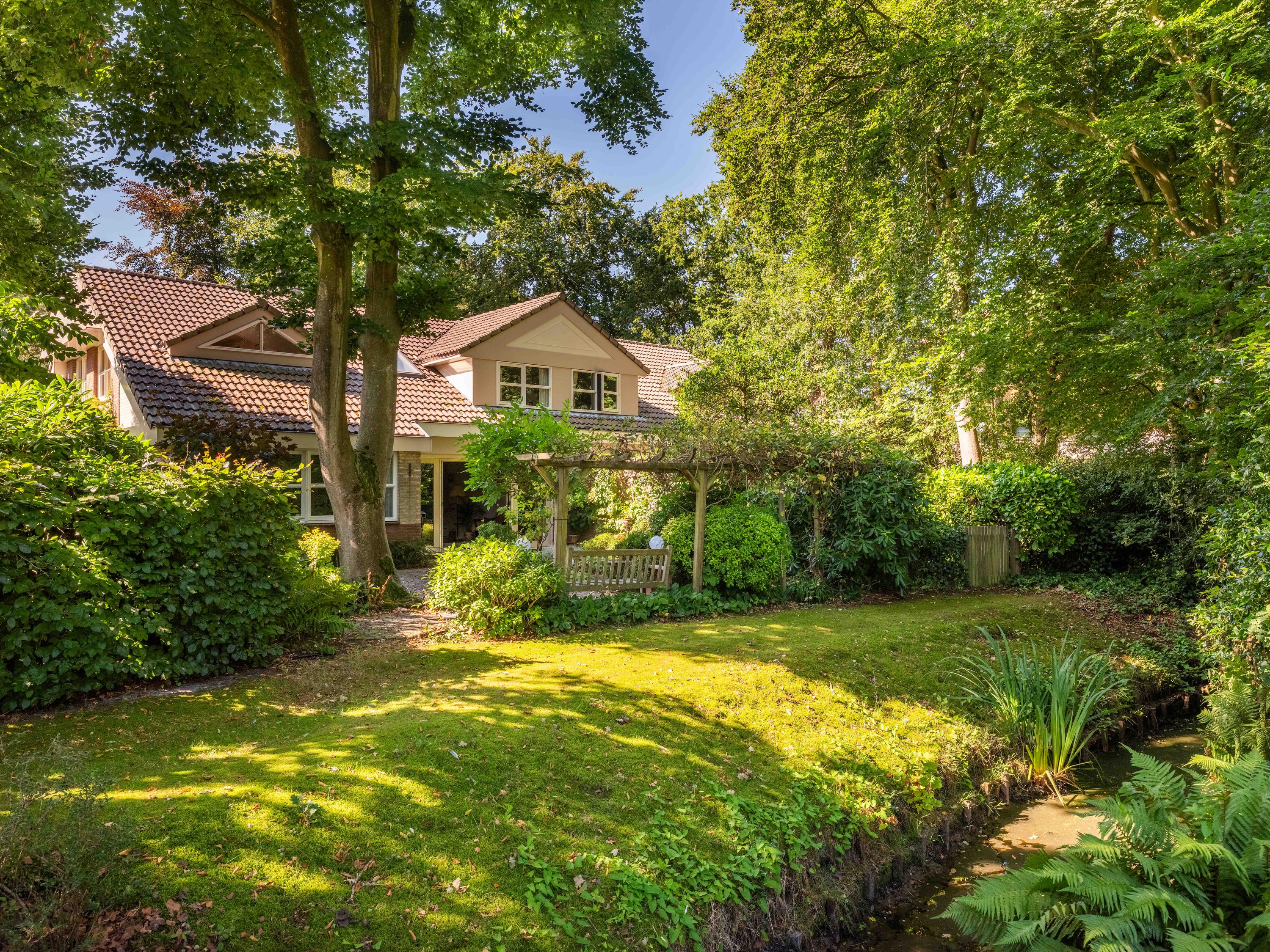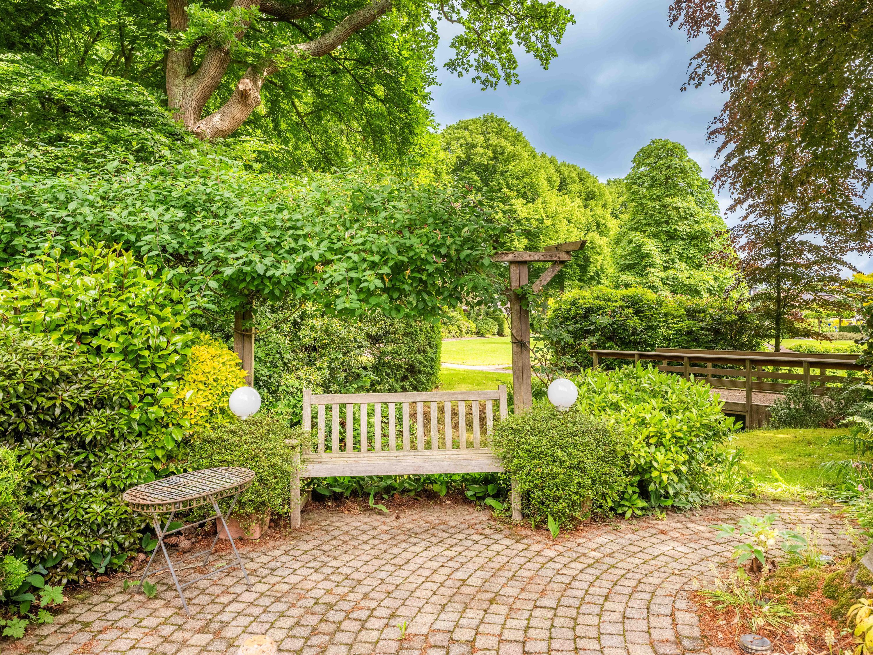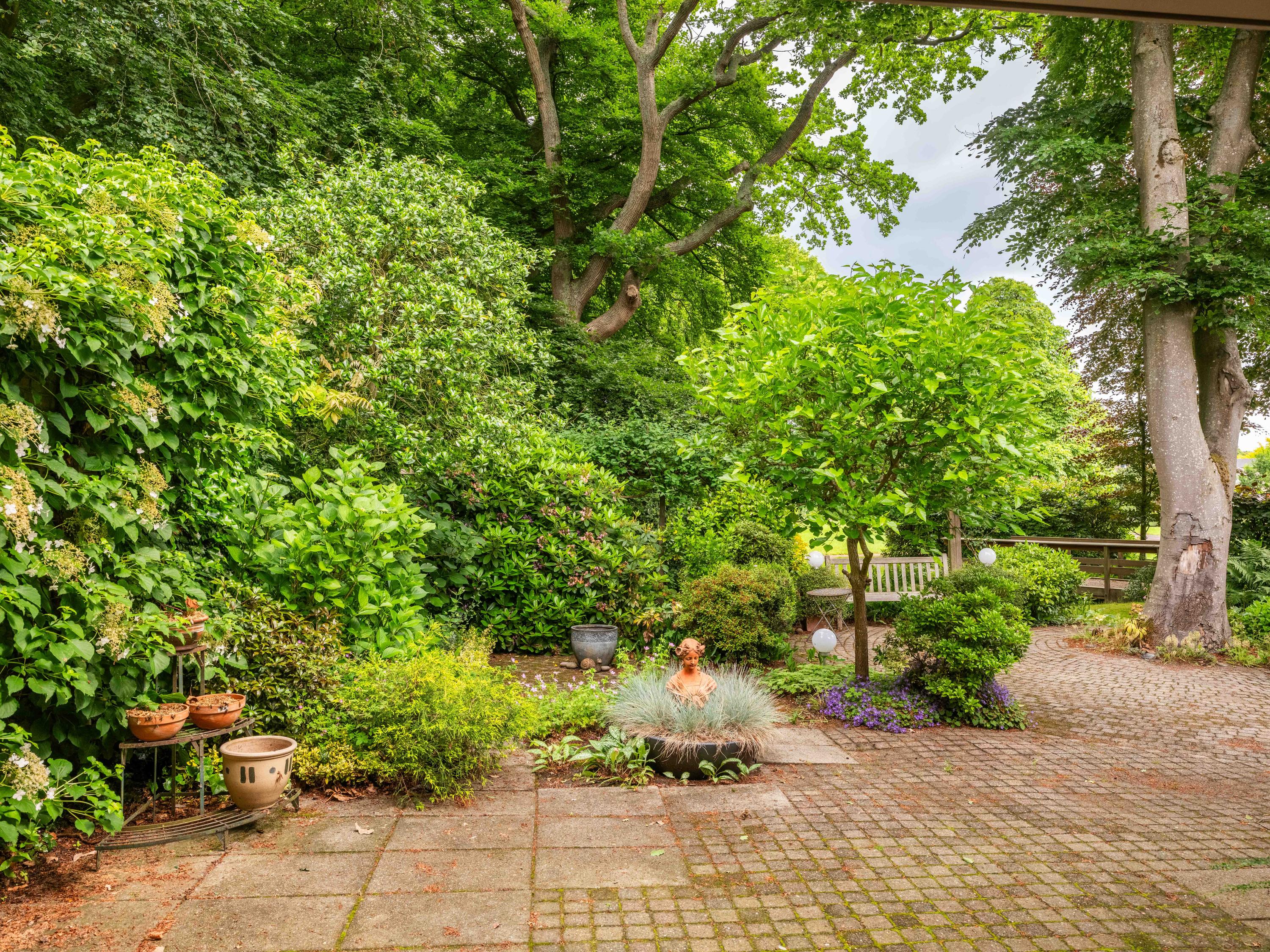 Through the large sliding doors, you step into the sunny, sheltered backyard, a wonderful place to enjoy peace and privacy, with a terrace and a view of the pond. The beautifully landscaped, sunny garden is an oasis of peace and privacy. The terrace borders the exclusive, communal park with ponds – a unique place where you can enjoy nature to the fullest. The park is exclusively accessible to local residents.