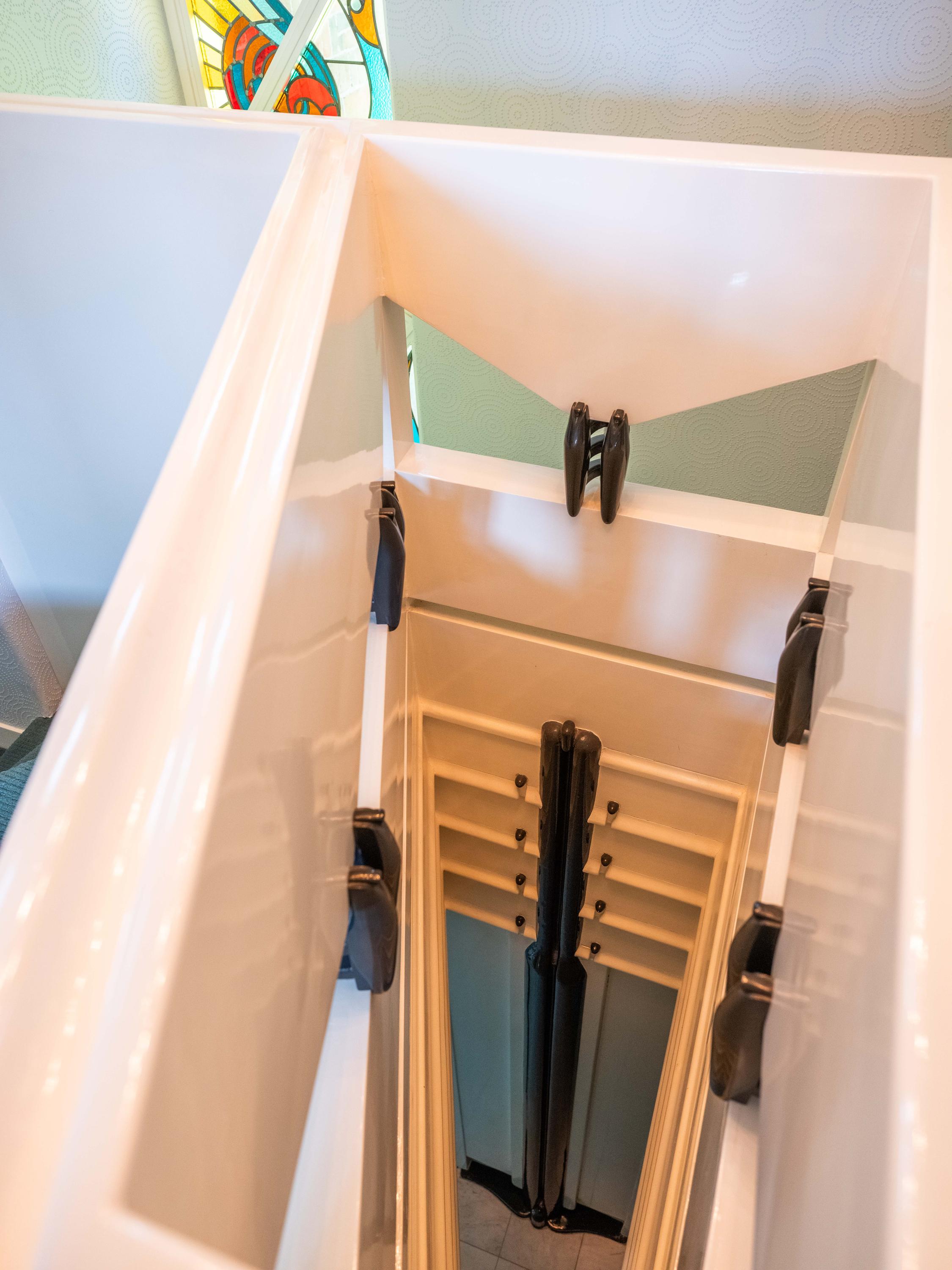 A loft ladder provides access to a storage attic.
