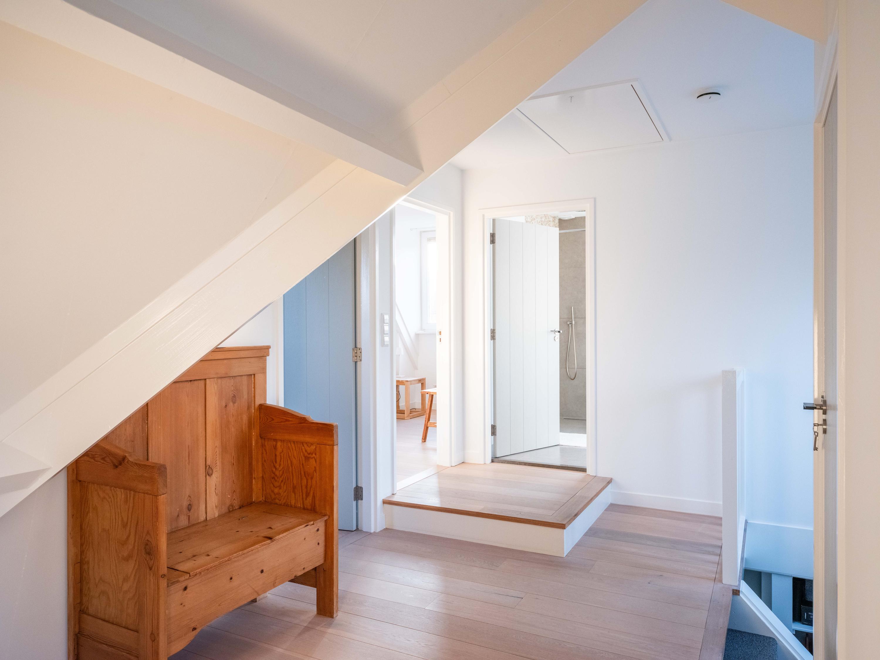 Upon entering, you immediately notice the pleasant atmosphere. The spacious hall with staircase and modern toilet provides access to the practical utility room and leads further to the dining room with fireplace. From here, double garden doors open onto the beautifully landscaped garden, allowing the indoors and outdoors to flow effortlessly into one another. The living room connects seamlessly to the designer kitchen by Piet Jan van den Kommer—a real eye-catcher that perfectly matches the country style of the house. The wooden floors and beamed ceilings enhance the feeling of warmth and character.