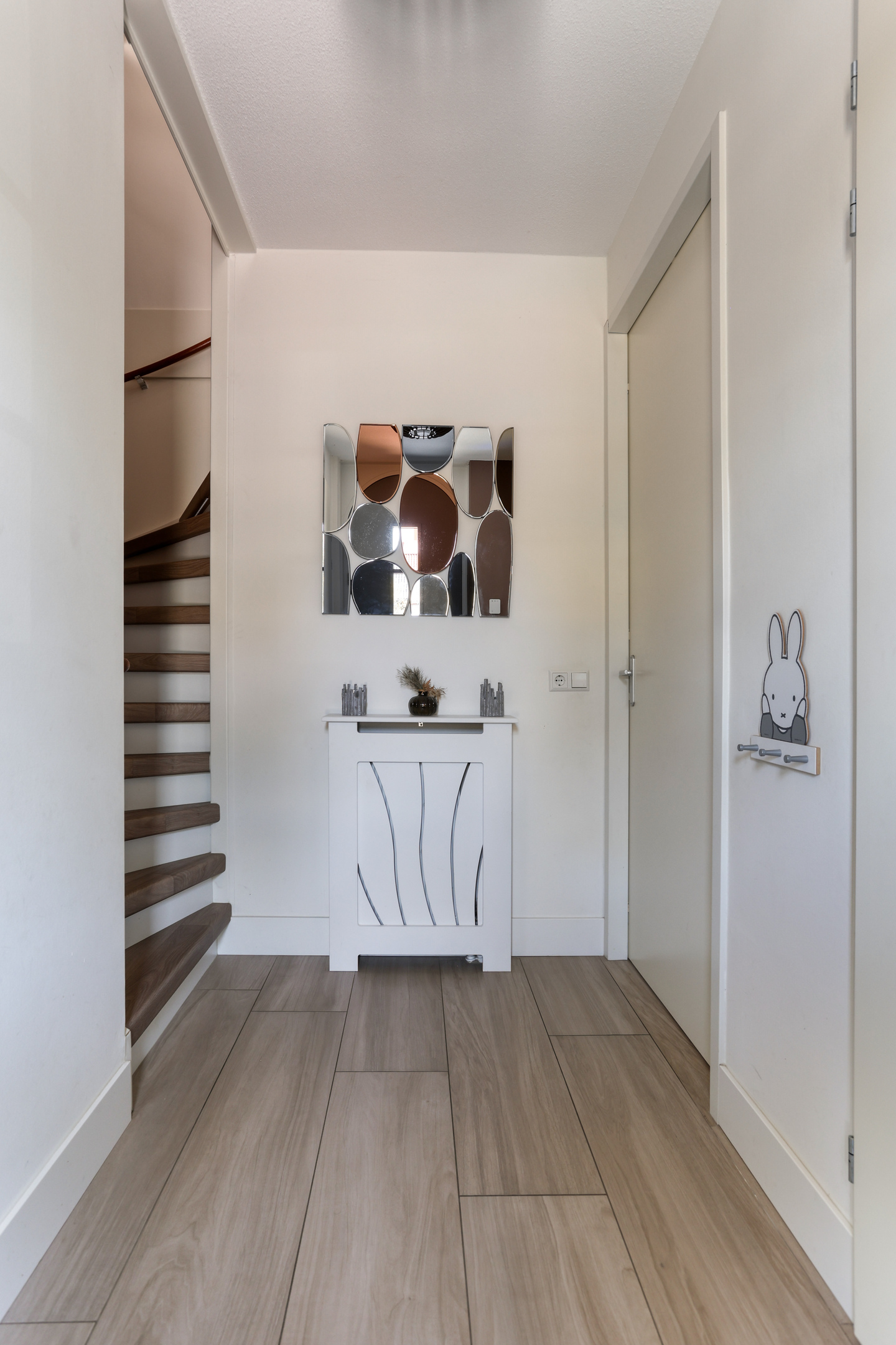 Entrance hall with toilet, meter cupboard, staircase to the first floor, and access to the living room.