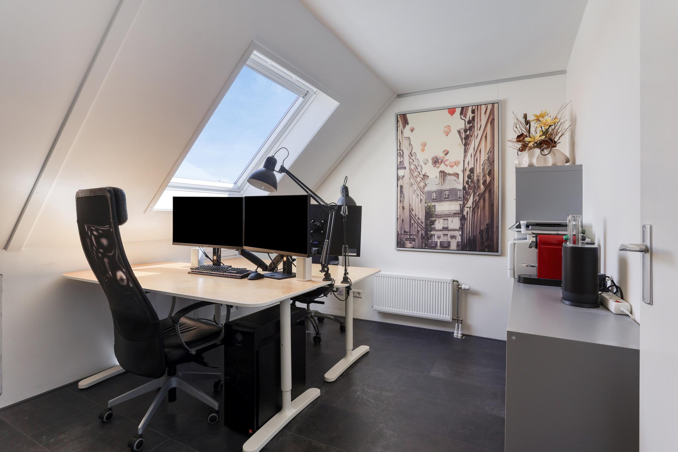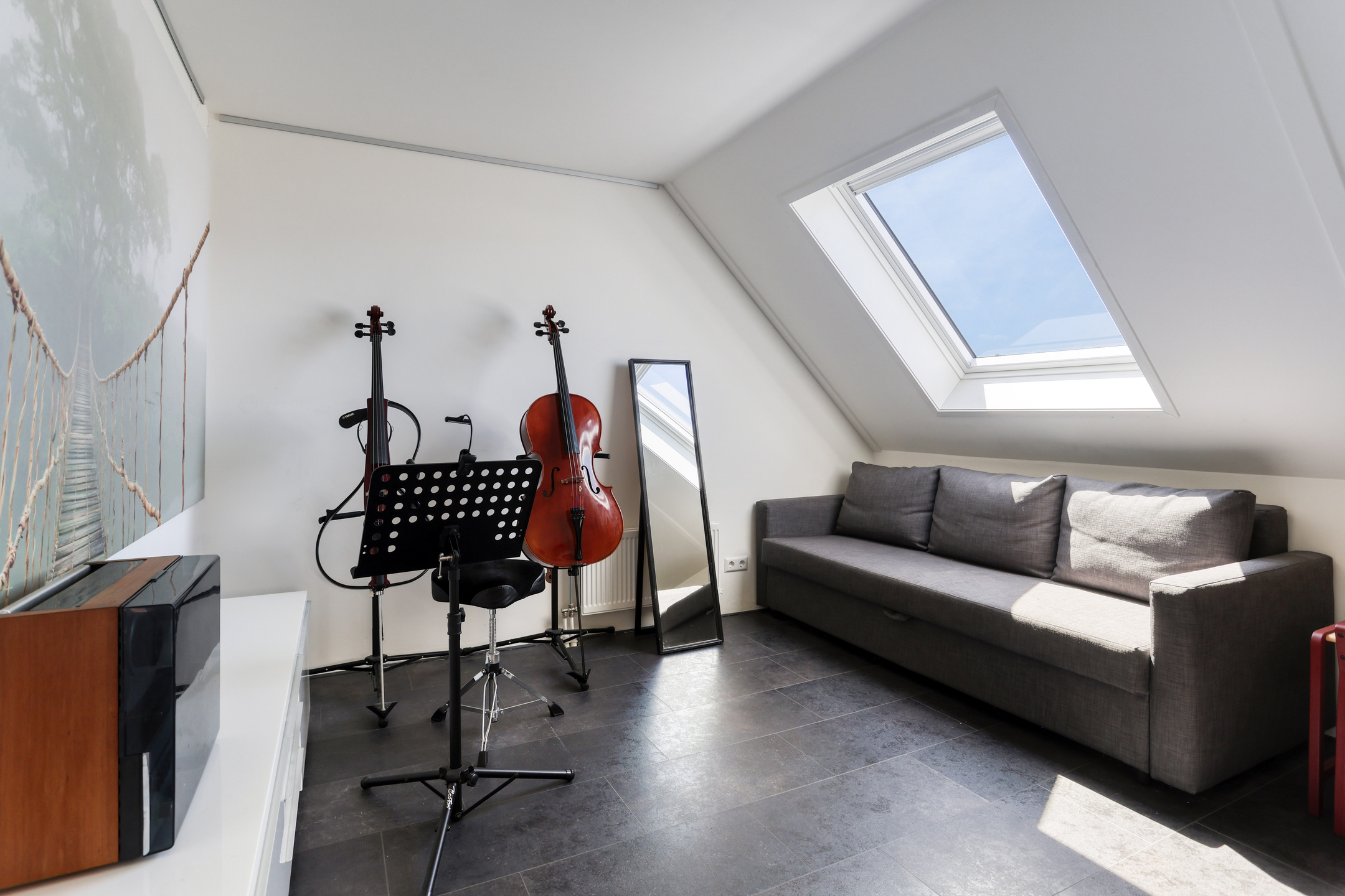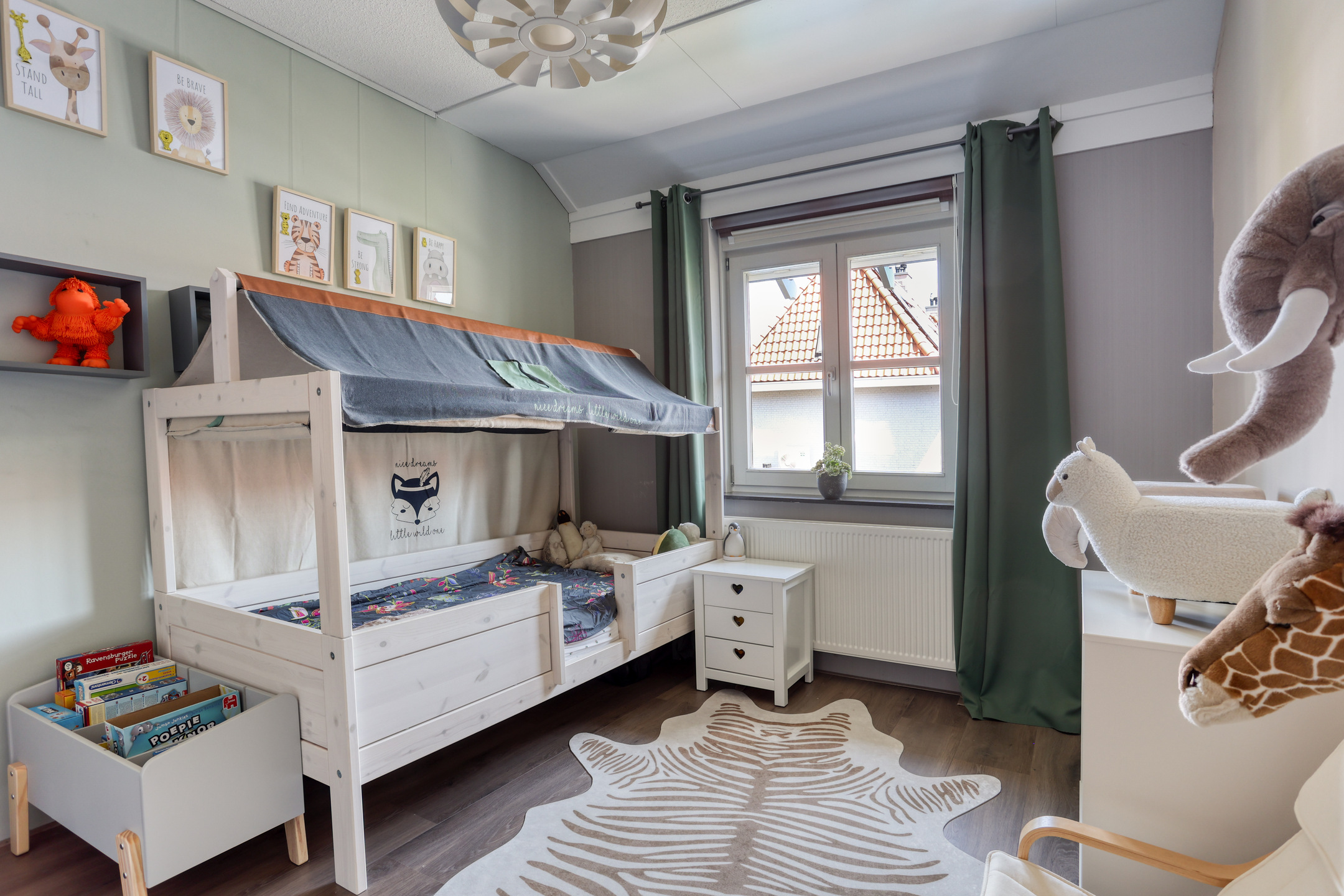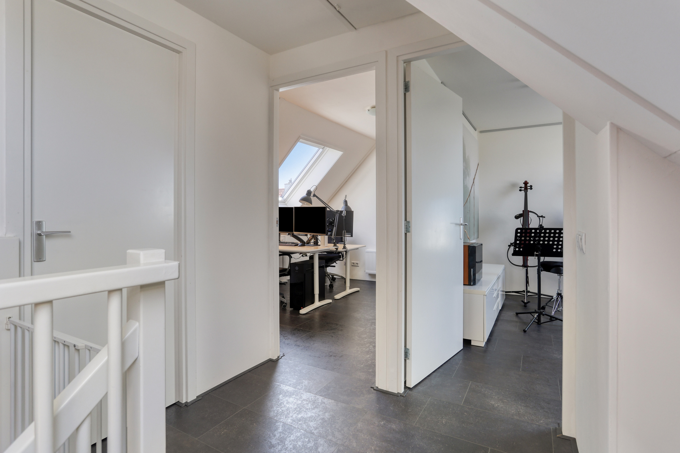 The property features a modern open kitchen and bathroom, five spacious bedrooms, and a private driveway with space for two cars. From the kitchen window, you have a direct view of the large playground in front of the house—ideal for families with young children. The street itself is car-free, contributing to a safe and peaceful living environment.