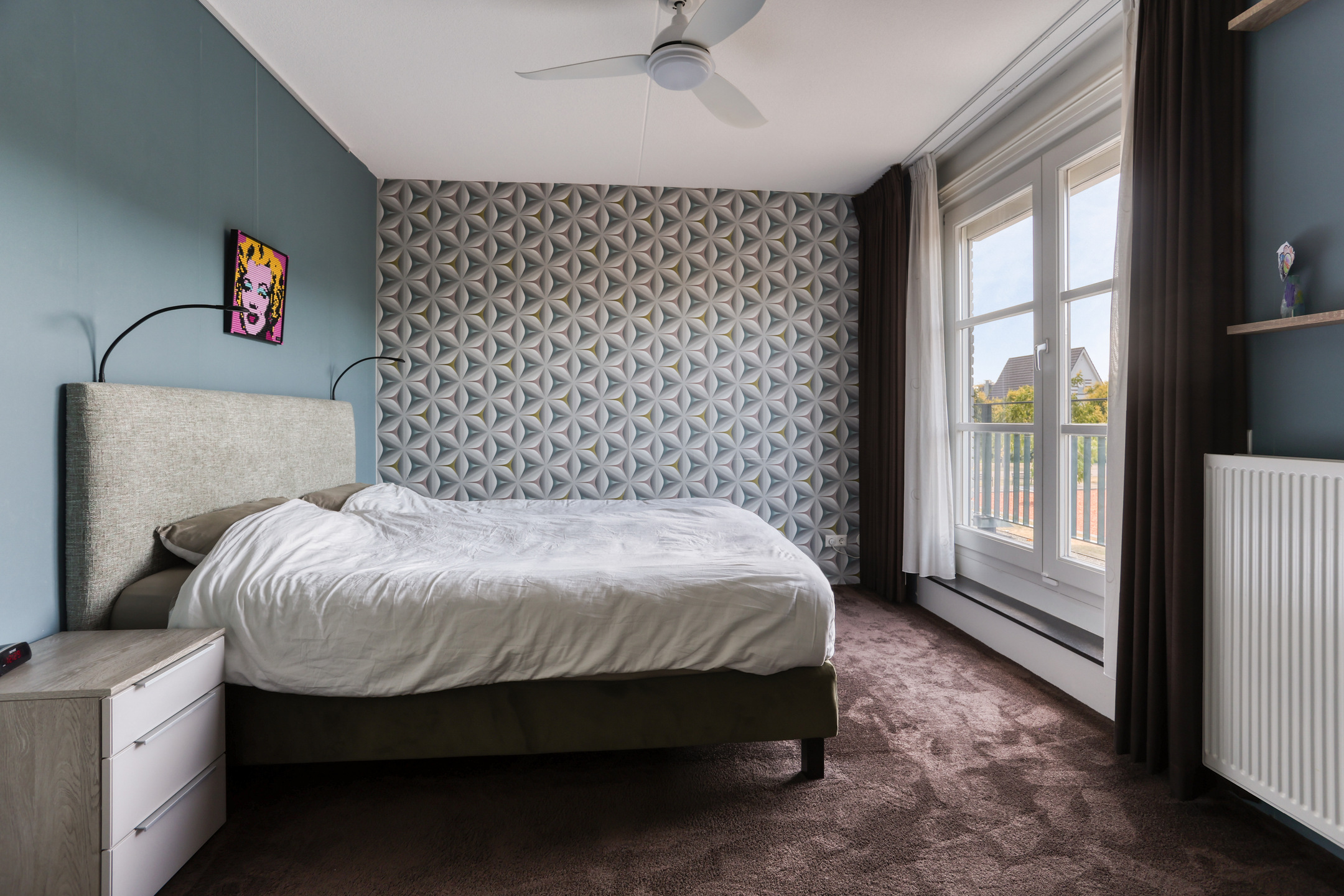 Bedrooms 2 and 3 are located at the rear, both equipped with electric shutters and insect screens.