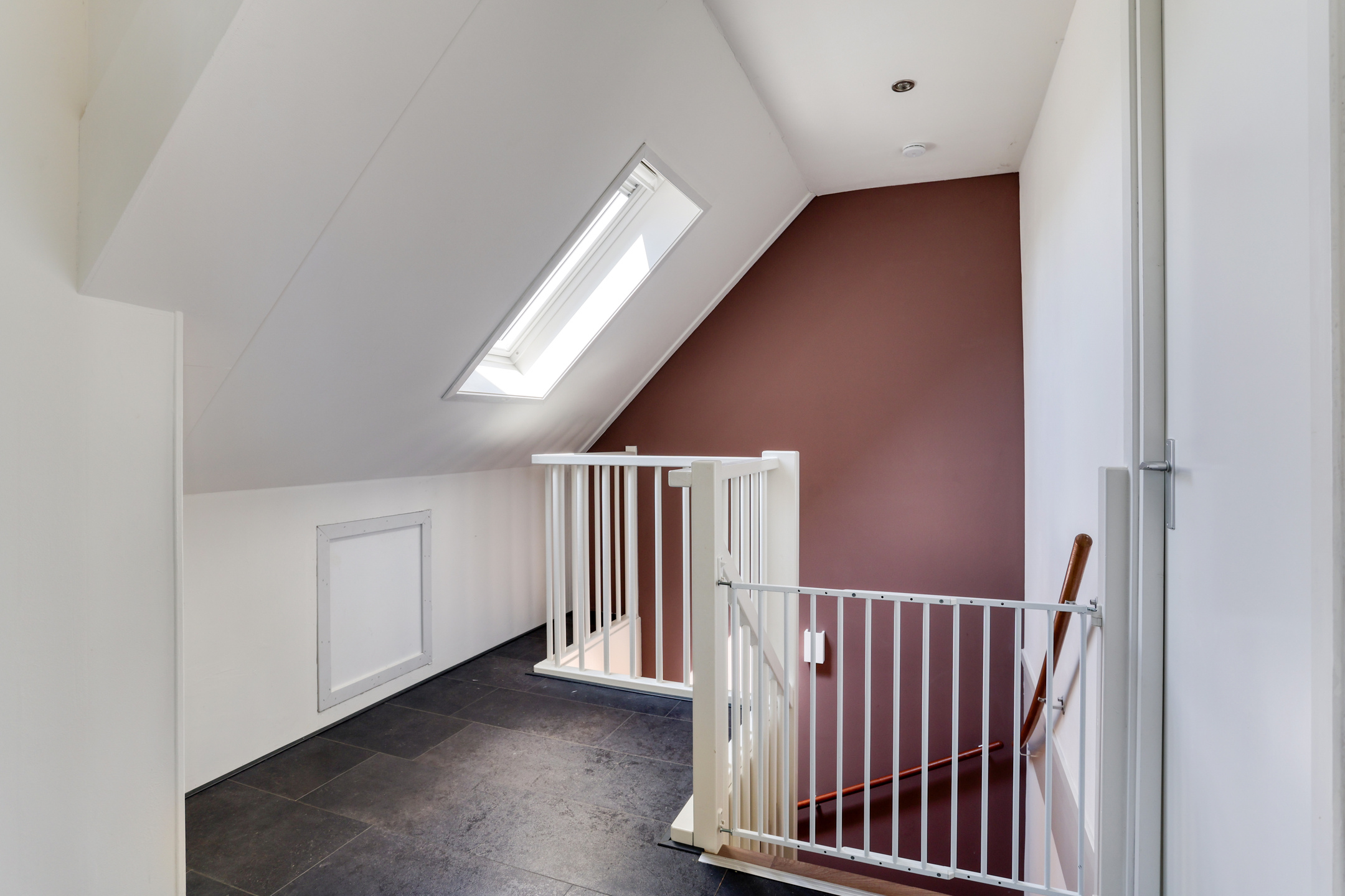 Spacious landing with access to 3 bedrooms, the bathroom, and stairs to the second floor.