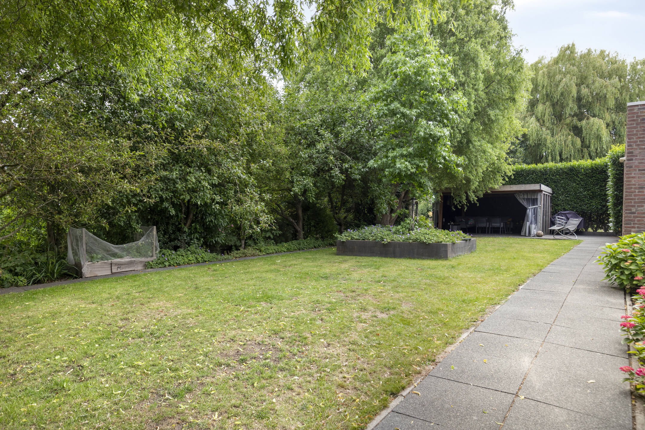 The sunny west-facing backyard is beautifully landscaped and includes multiple terraces, a stylish covered seating area and a wooden deck by the canal — an ideal place to relax well into the evening. At the front of the property, there is private parking for three cars on the driveway, as well as direct access to the garage.