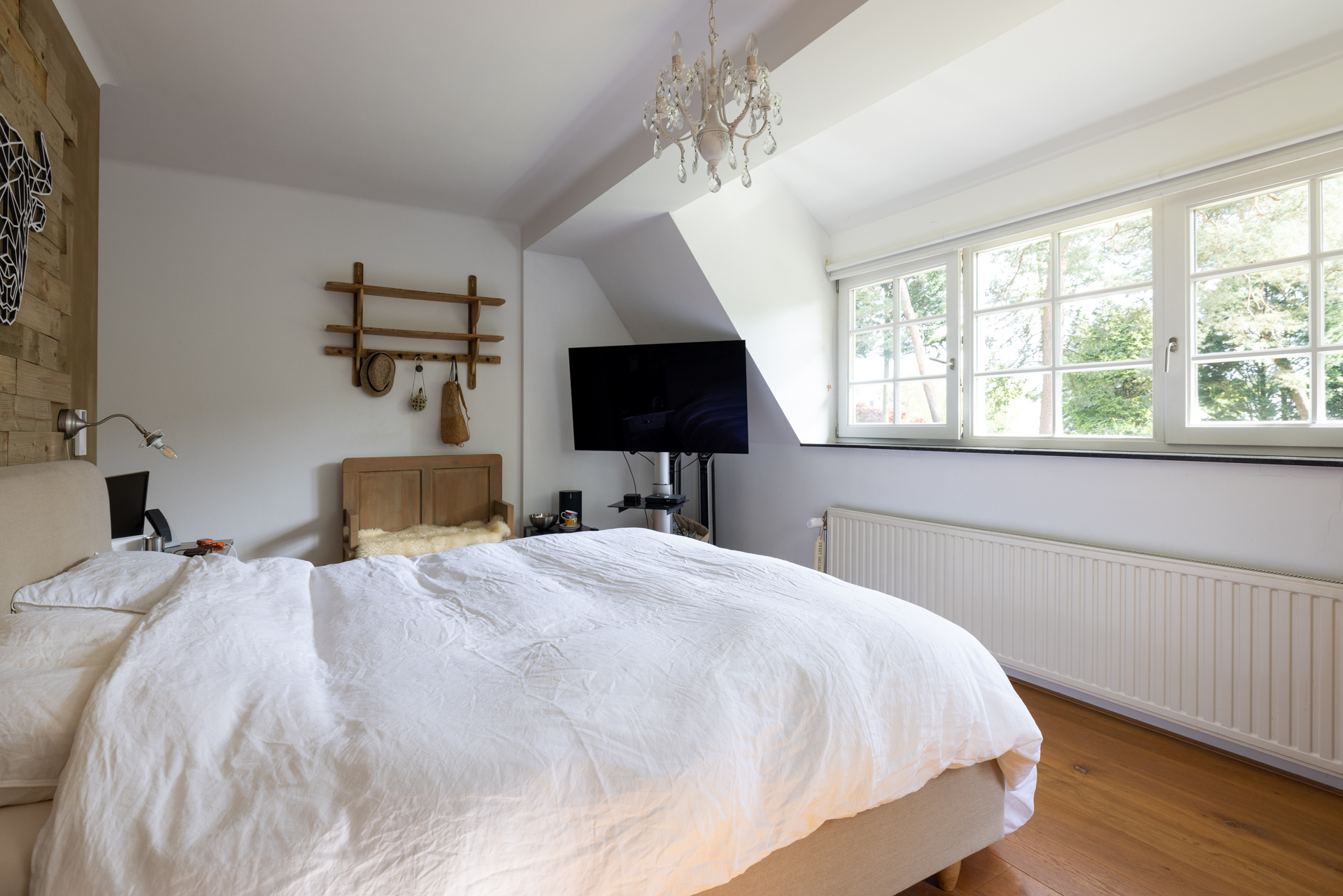 Villa Breda is an expansive country house set on 2,830 m² of wooded land in the stately Ruitersbos district, where privacy meets quiet grandeur. This villa offers 521 m² of living space, seamlessly blending original 1932 details with modern craftsmanship. The thatched roof and stained glass articulate its heritage, while extensive renovations support contemporary comfort.