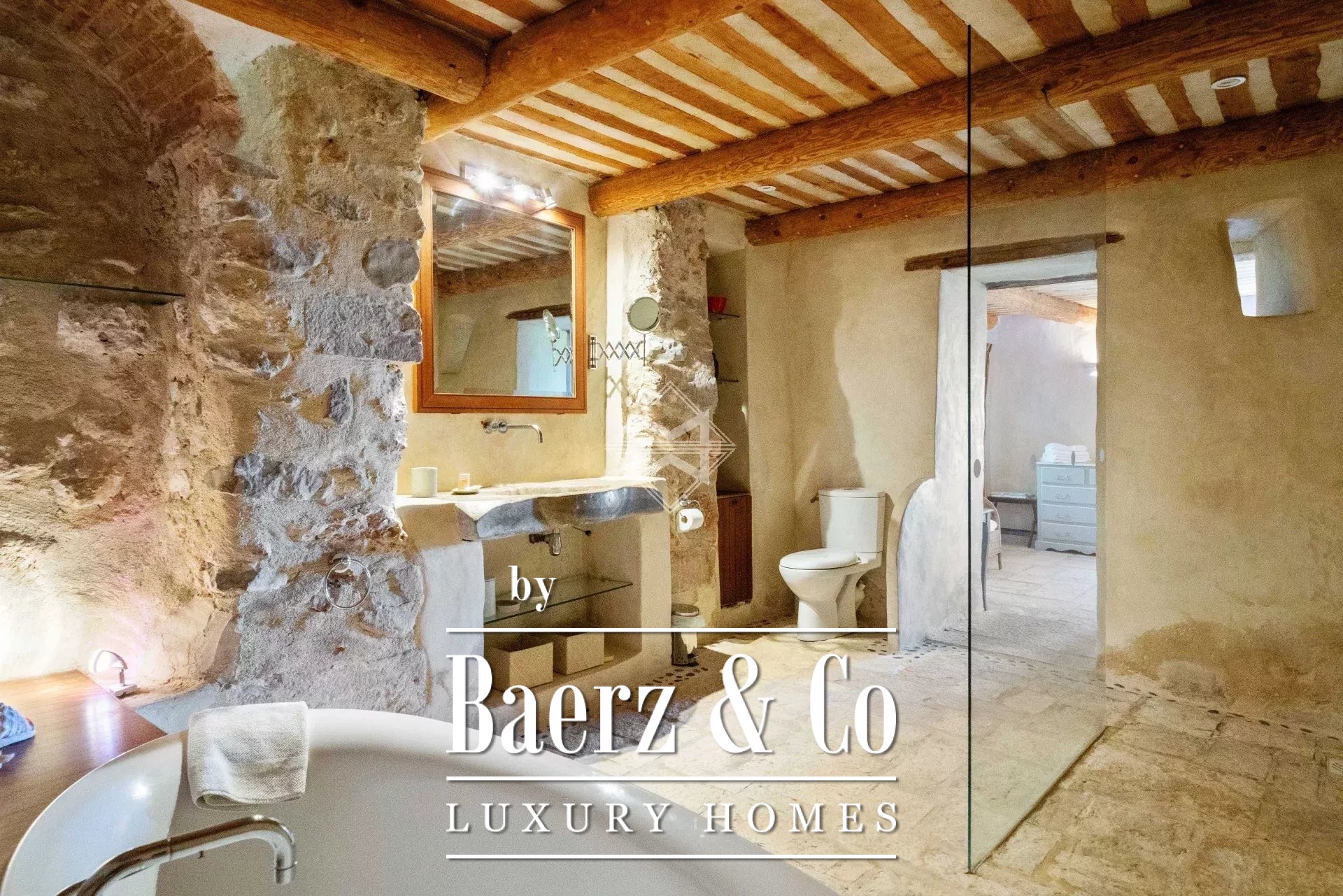 Mas Callas with panoramic countryside views unfolds across 270 m², where a carefully preserved 19th-century mas anchors a privileged and private setting in the heart of nature. This mas Callas property pairs exposed stone walls and wooden beams with considered, contemporary comforts, maintaining a sense of timelessness throughout every space.