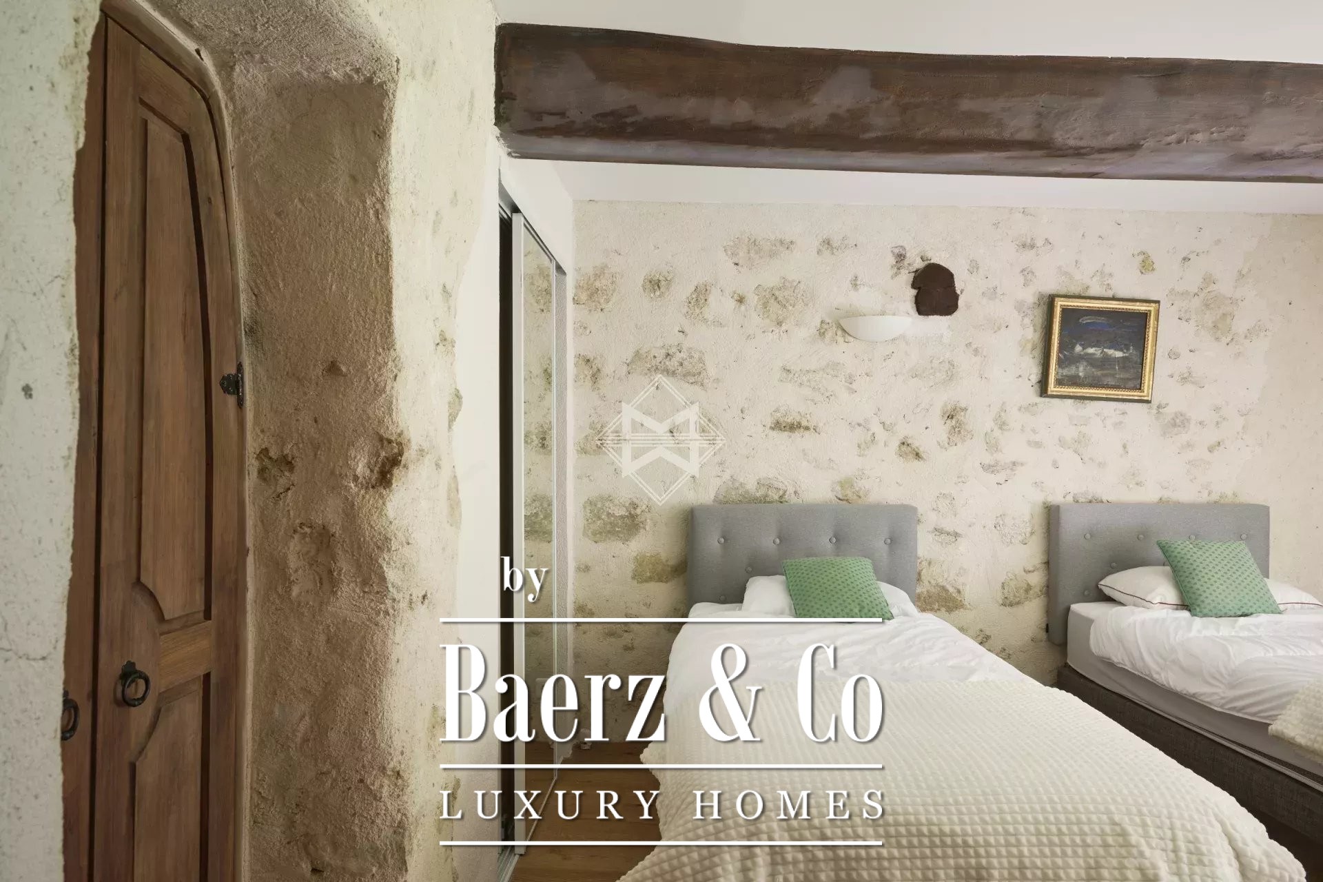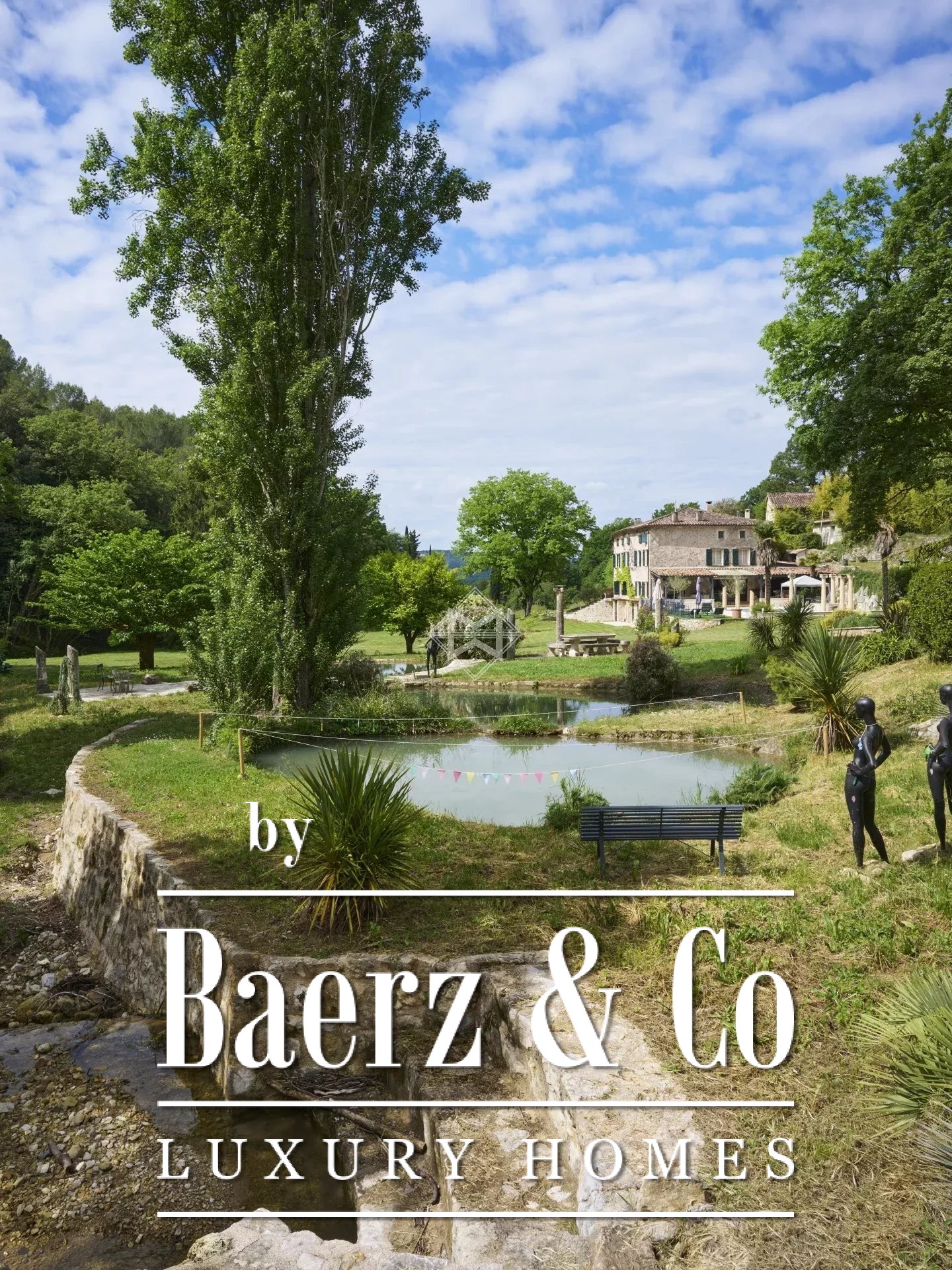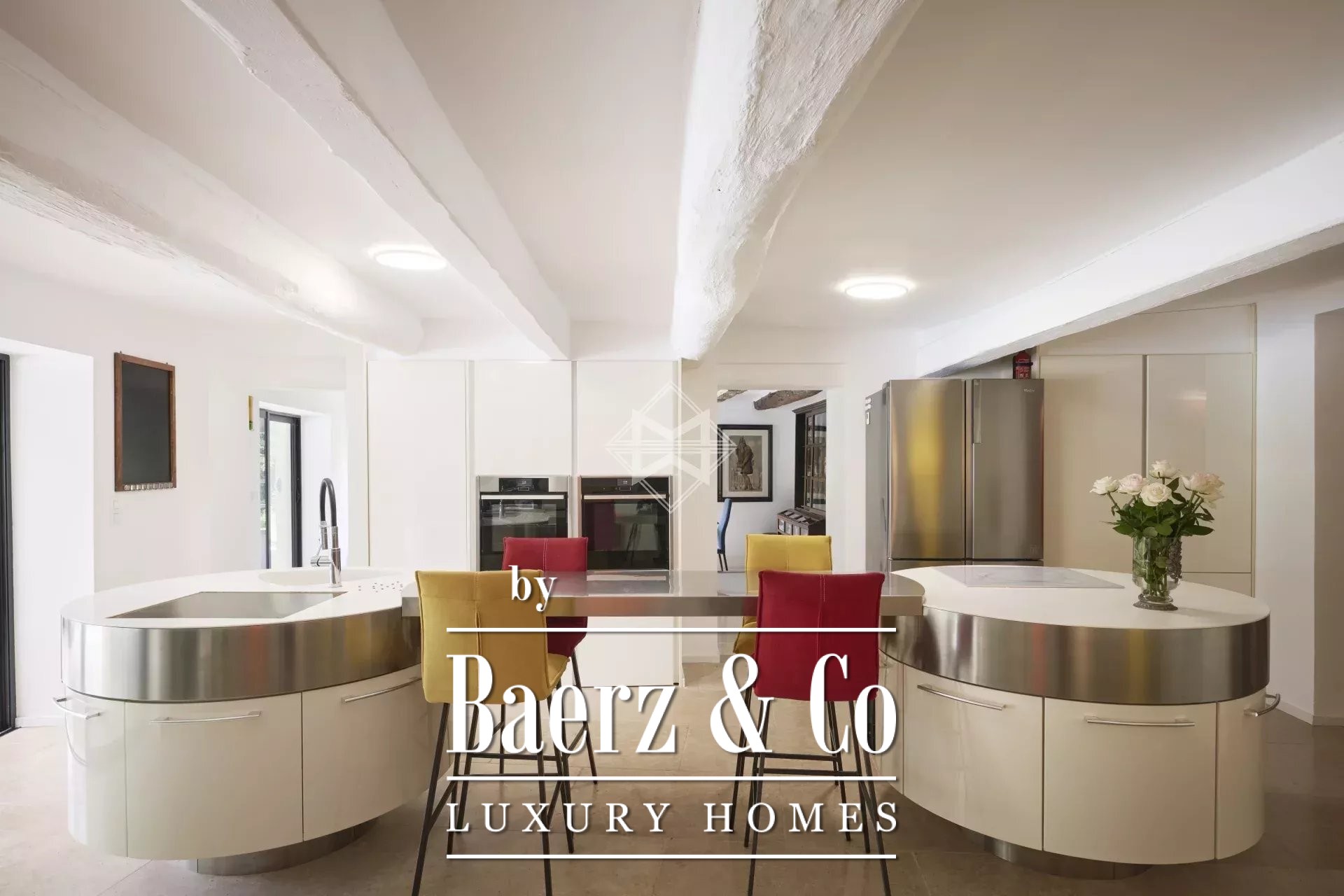 Mill Callian stands as a restored 14th-century estate at the foot of the Provençal village, merging historic authenticity with understated ease. The original oil mill has been fully renovated with carefully selected materials, preserving vaulted cellars and spacious volumes throughout. Within the main house, seven bedrooms each retain individual shower rooms, offering a sense of privacy for family and guests. A charming caretaker’s house and a separate stone guest house allow for discreet hosting or independent living.