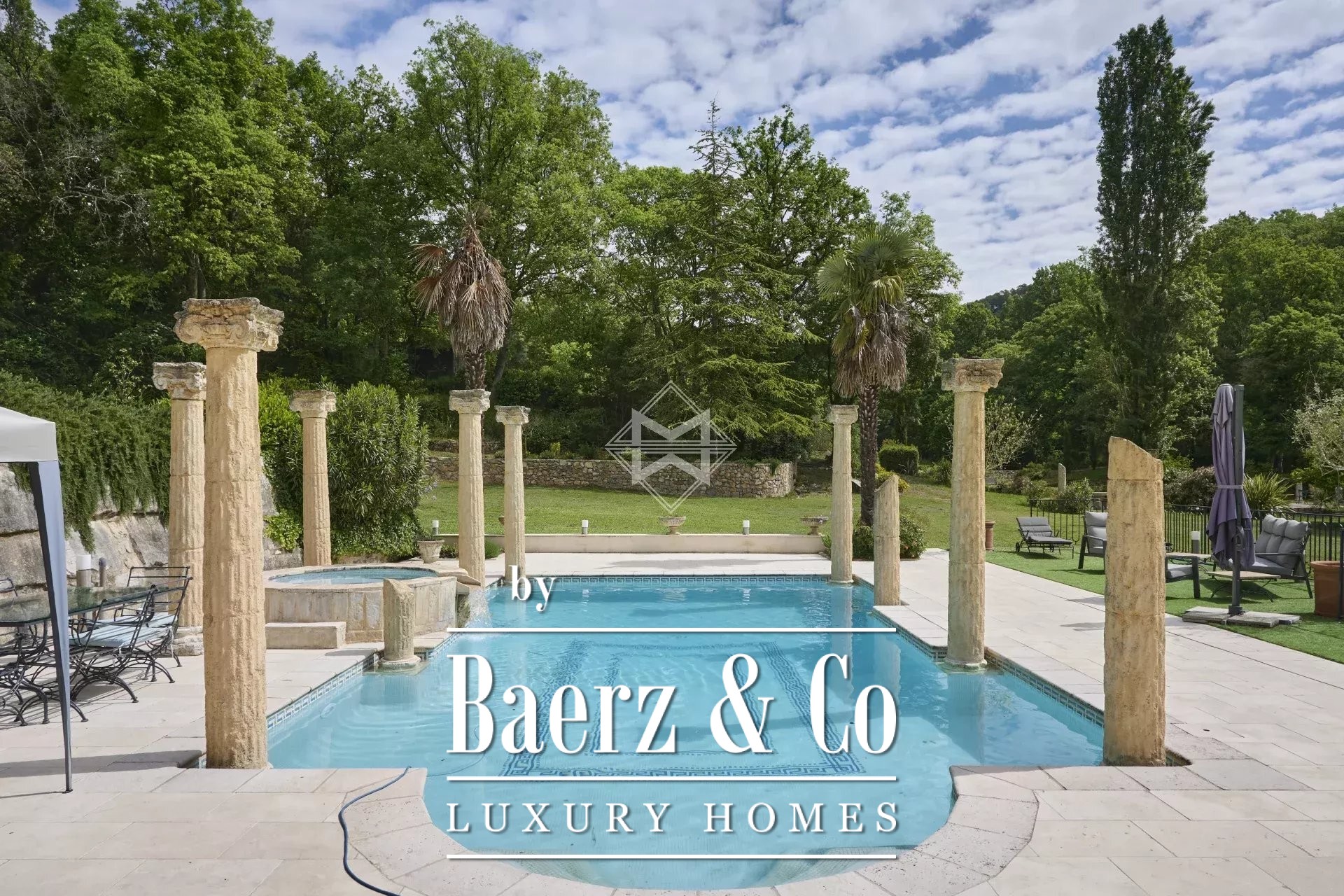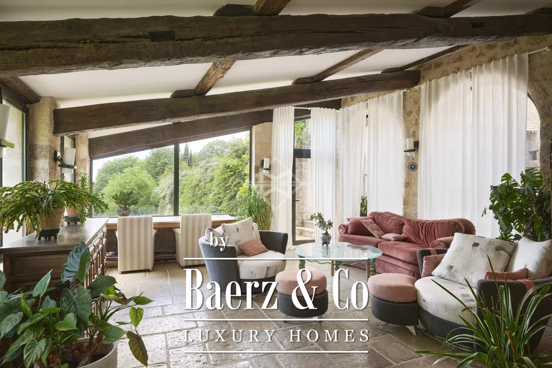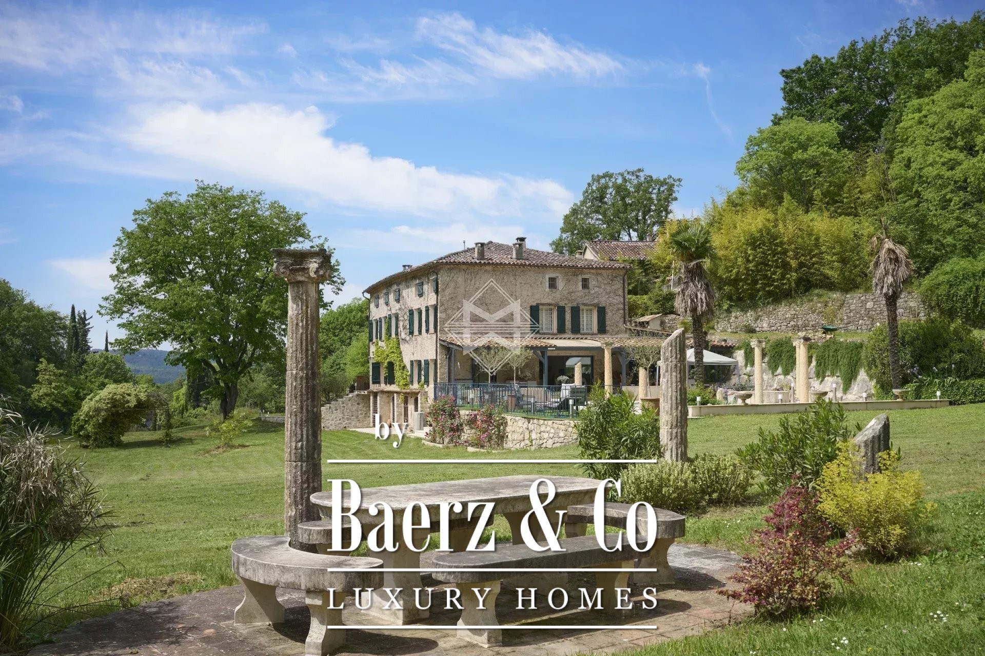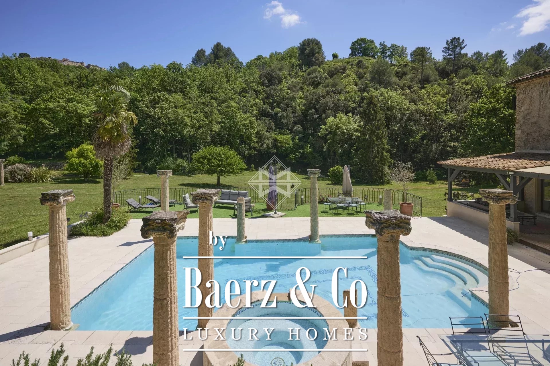 Mill Callian stands as a restored 14th-century estate at the foot of the Provençal village, merging historic authenticity with understated ease. The original oil mill has been fully renovated with carefully selected materials, preserving vaulted cellars and spacious volumes throughout. Within the main house, seven bedrooms each retain individual shower rooms, offering a sense of privacy for family and guests. A charming caretaker’s house and a separate stone guest house allow for discreet hosting or independent living.