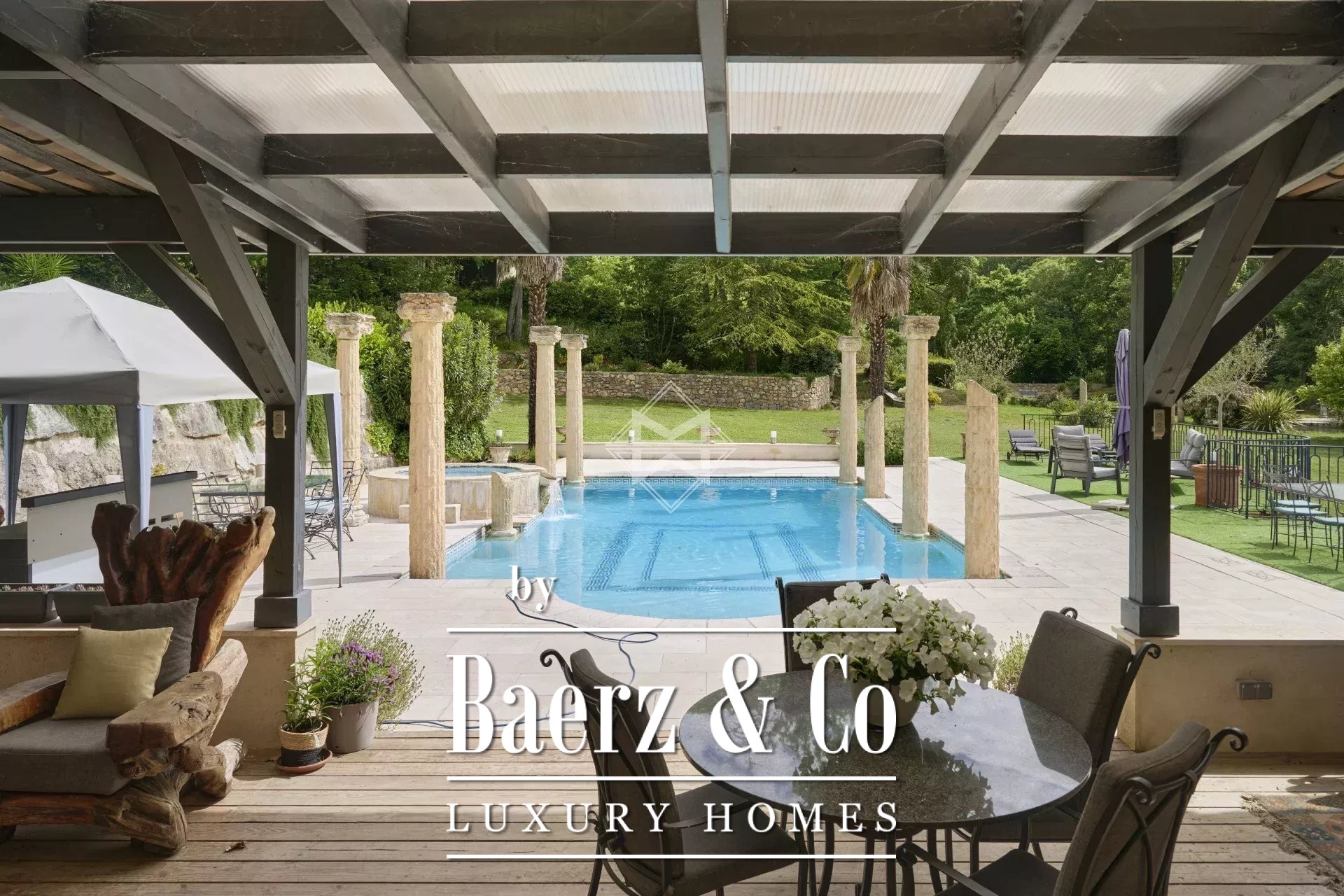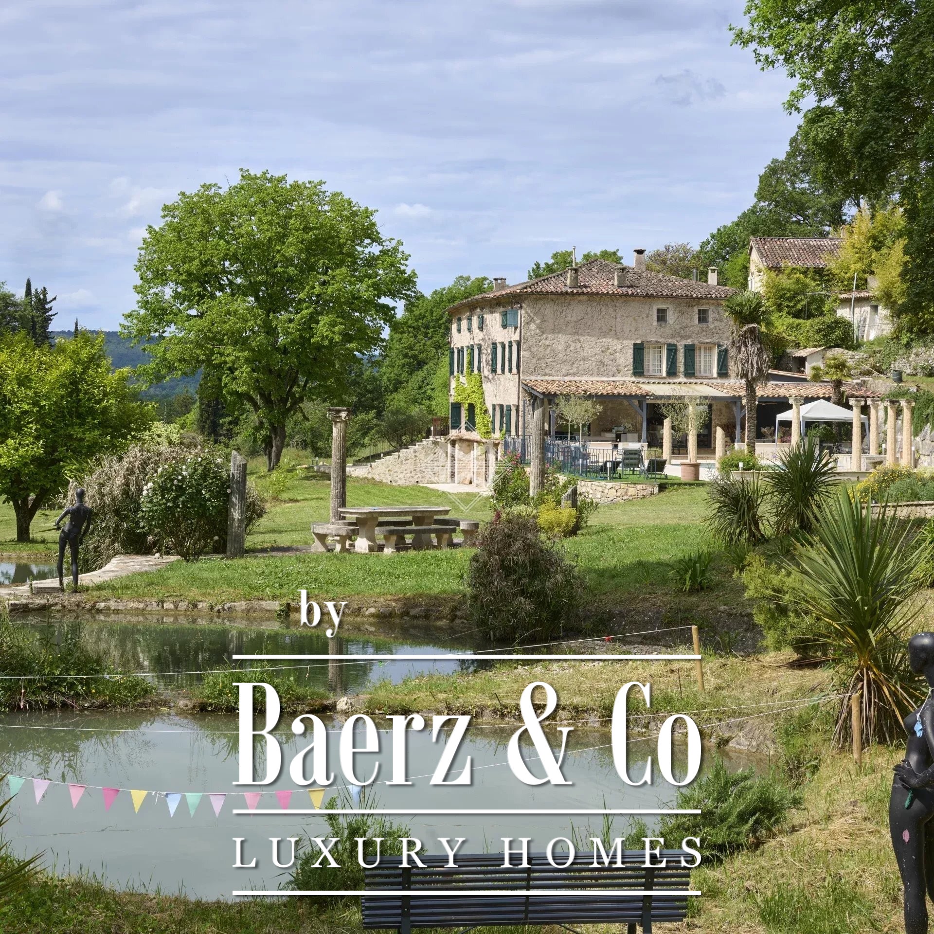 The estate is anchored by a wooded garden spanning more than 46,900 m², where mature trees and a spring-fed pond invite moments of quiet reflection. Air conditioning, double glazing, and a fireplace balance comfort with period integrity, while additional amenities include a swimming pool, sauna, playground, and car port. Orientated for privacy, the mill residence reflects the enduring architecture of the region, conveying a measured pace that invites both convivial gathering and contemplative retreat. Mill Callian offers a unique synthesis of provenance, space, and natural beauty, appealing to those seeking a property with history and presence.