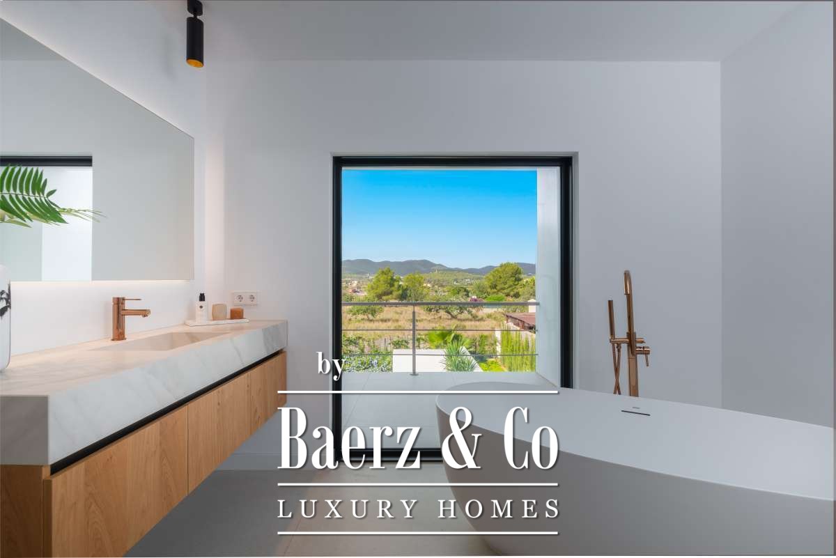 Outdoor living is celebrated with a private swimming pool, a covered patio for al fresco dining, a built-in barbecue, and multiple terraces. Landscaped gardens, a rooftop terrace, sun beds, and secure, fully fenced grounds ensure privacy and tranquility. Additional features include garage and outdoor parking, alarm system, and amenities such as internet, double glazing, and smart security. This villa in Can Ramón encapsulates refined Mediterranean living with convenient access to Ibiza’s beaches, marinas, and city life.