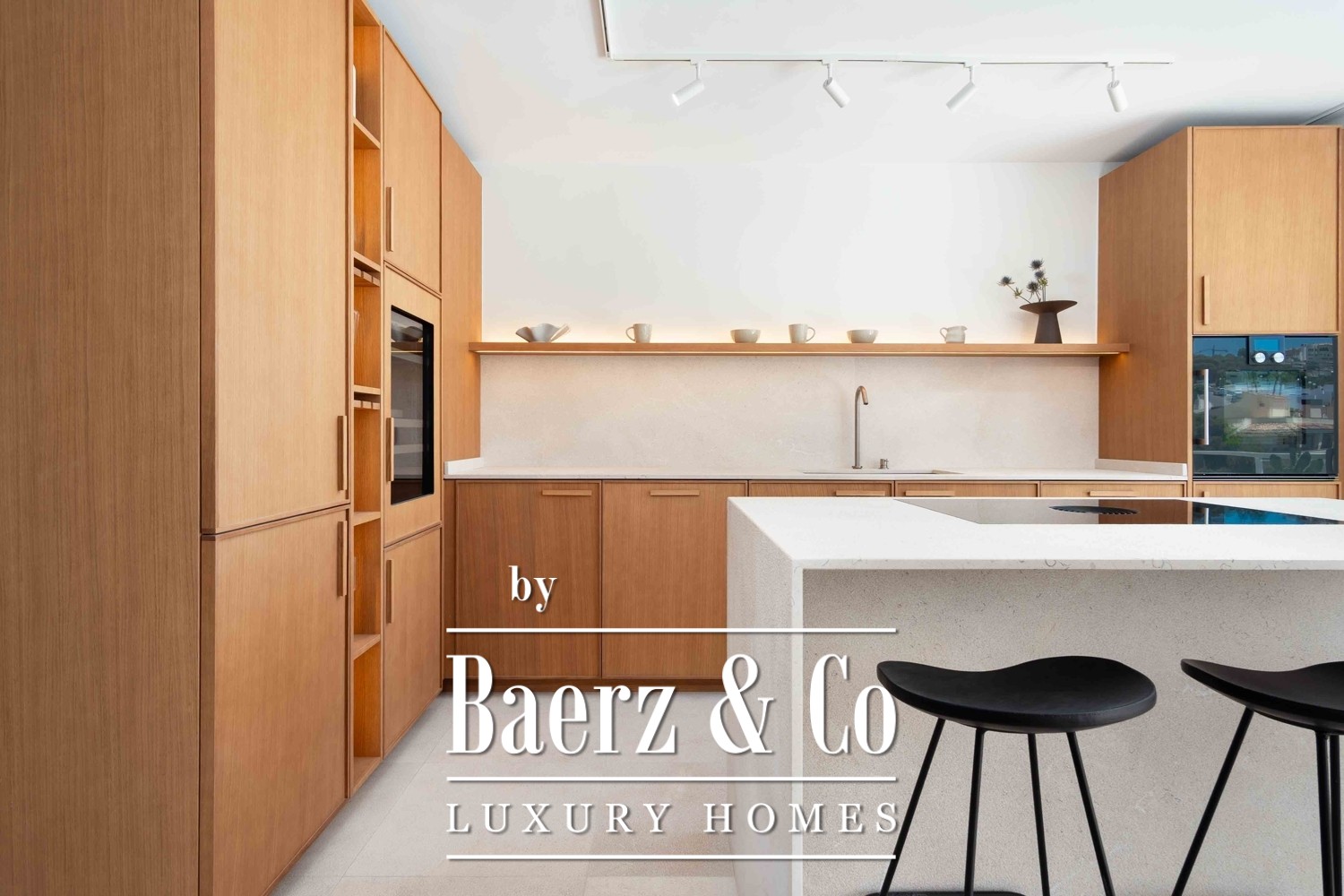 The interior design of this home is a seamless blend of Nordic elegance and Mediterranean tranquility. Bright wood finishes, soft neutral tones, and touches of blue create a calm, timeless atmosphere that invites relaxation and comfort. Every detail has been thoughtfully chosen to enhance the sense of space and light, allowing you to feel truly at home.