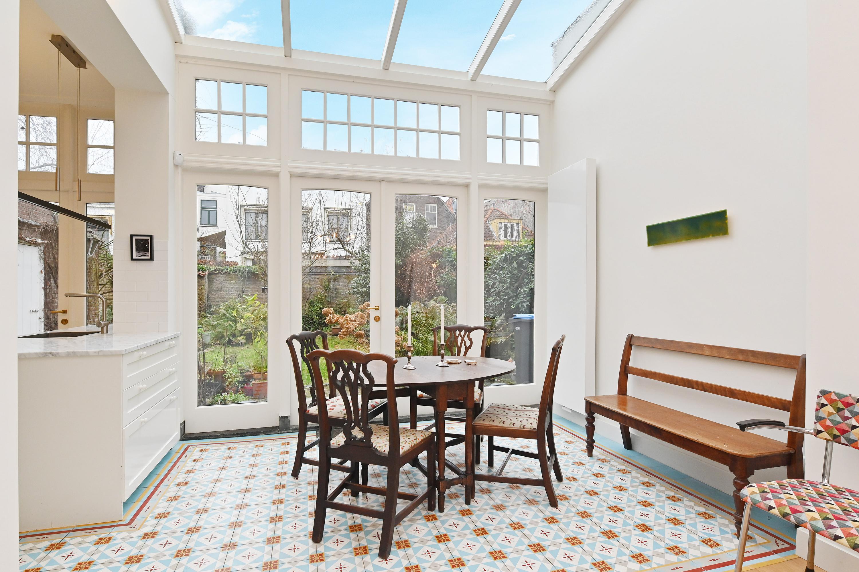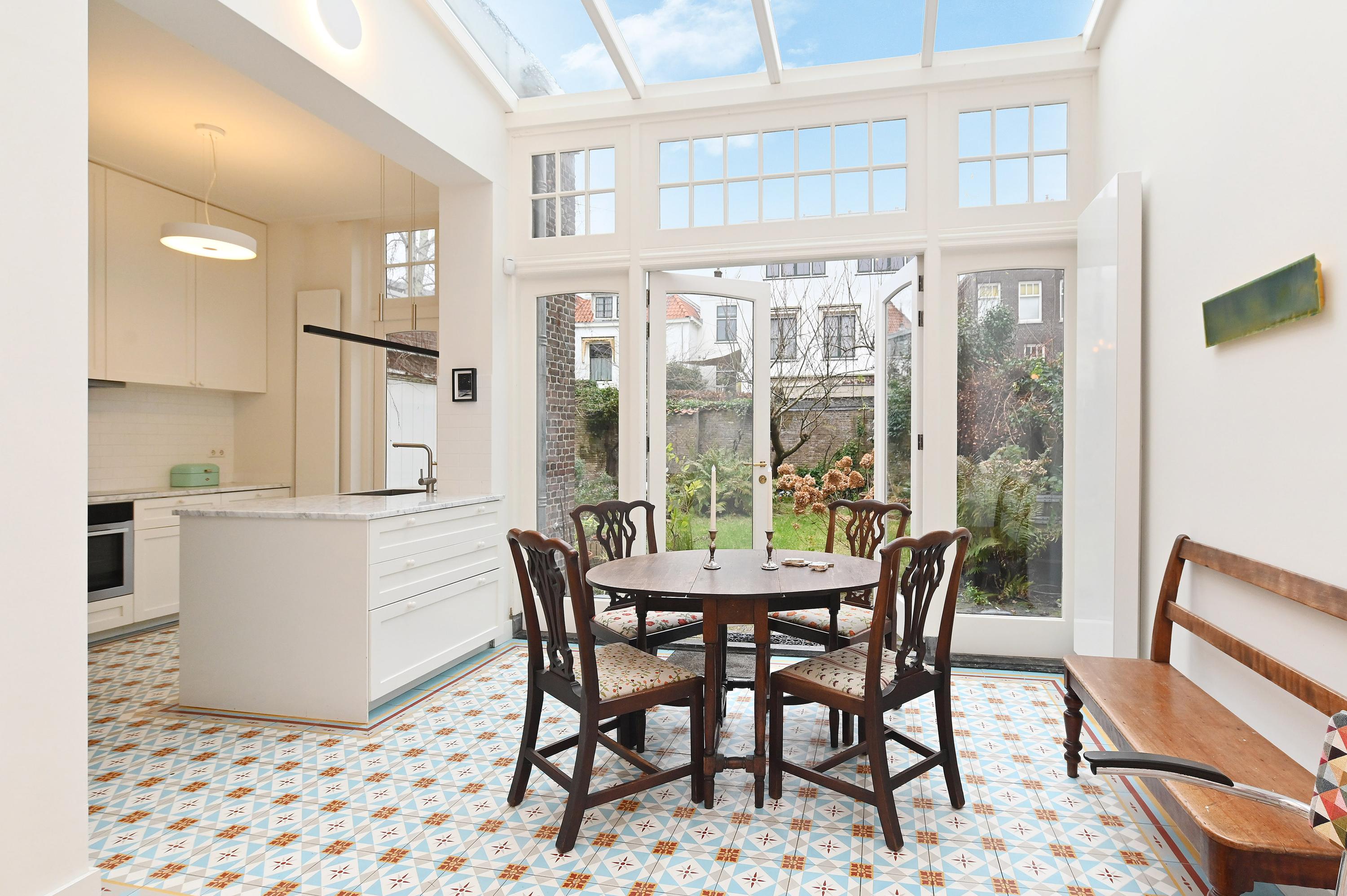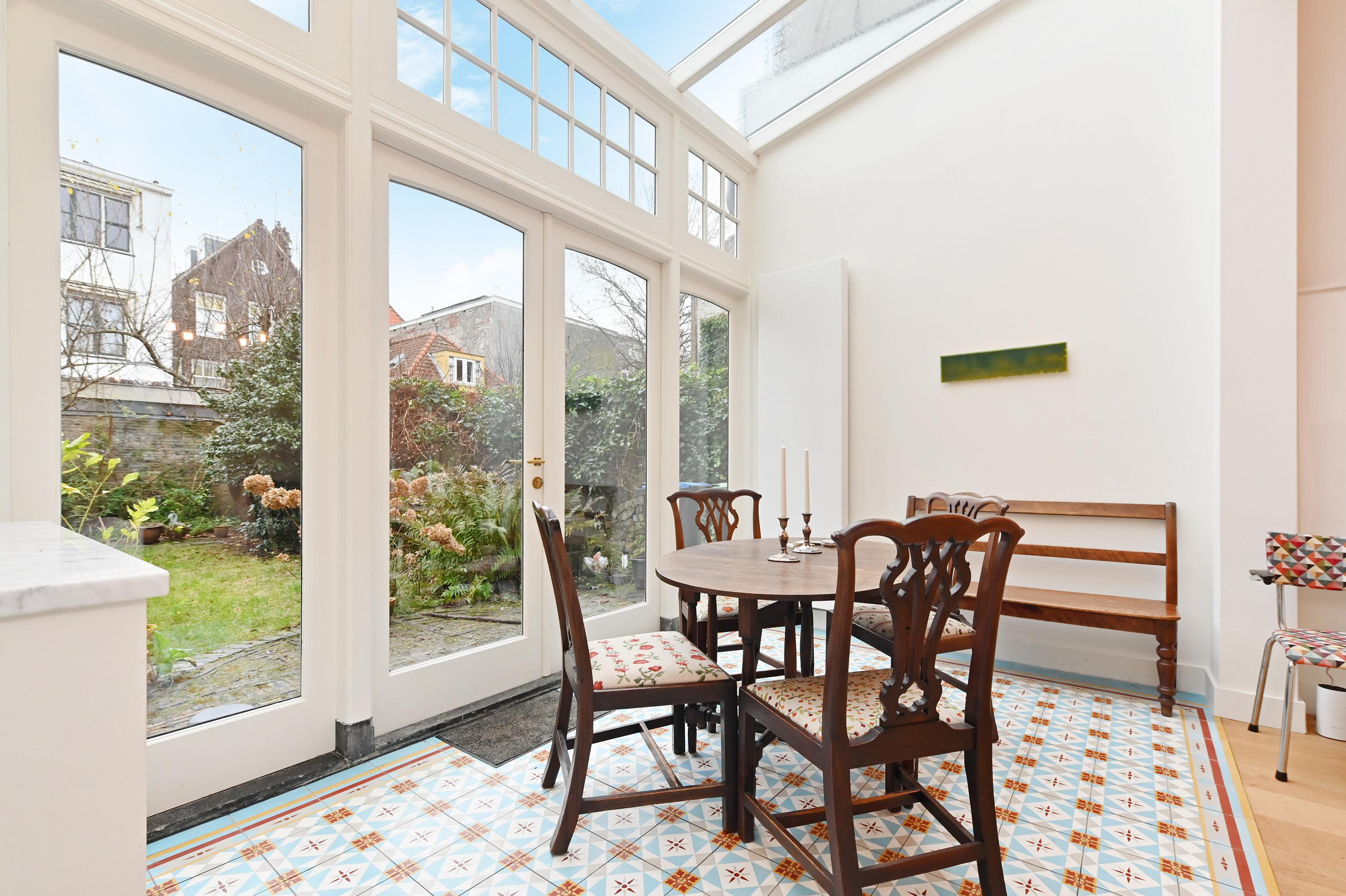 Through French doors in the dining room and kitchen, there is access to the extra-wide and 12-meter-deep, walled back garden. There's always a spot to sit out in the sun or shade, even into the evening.