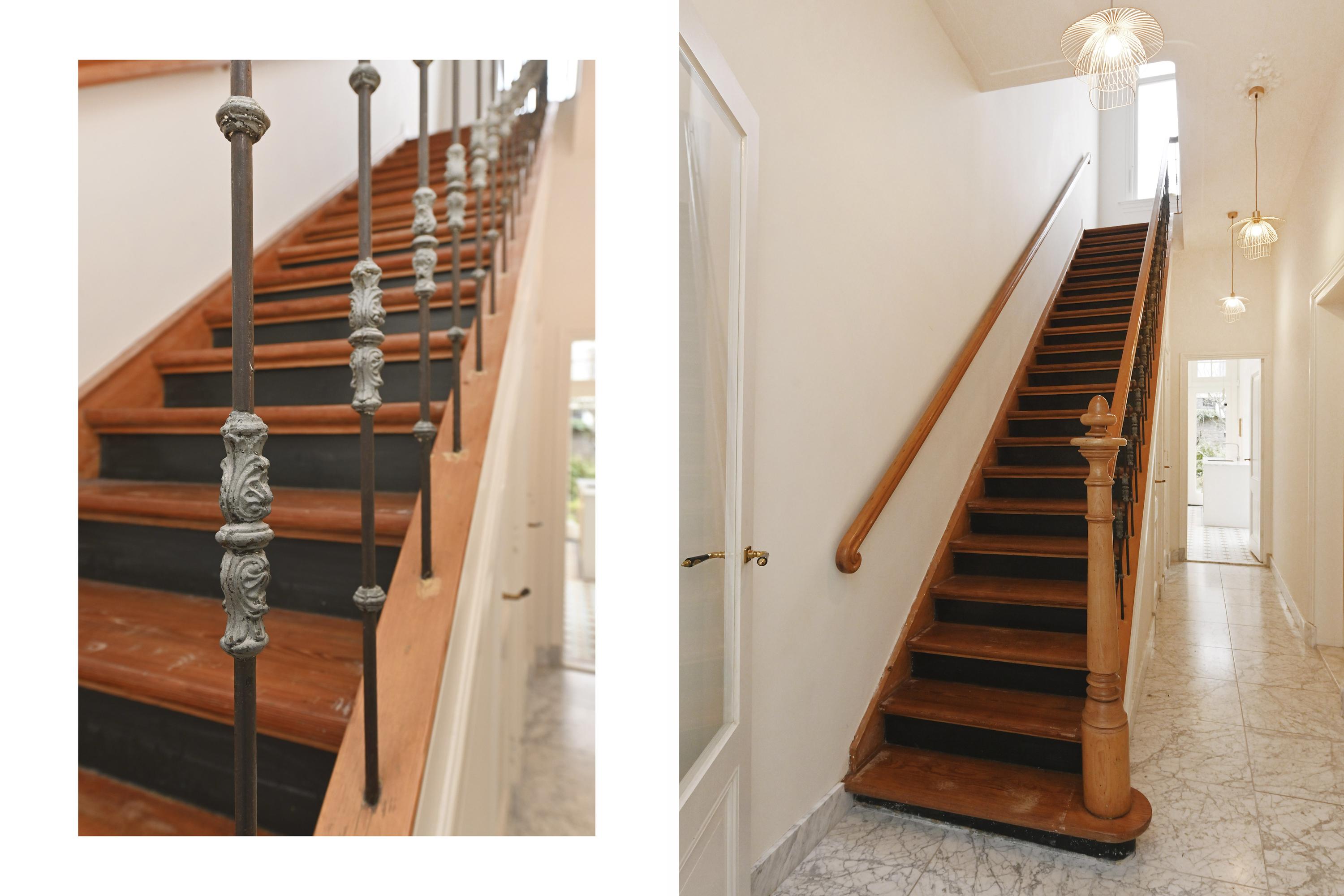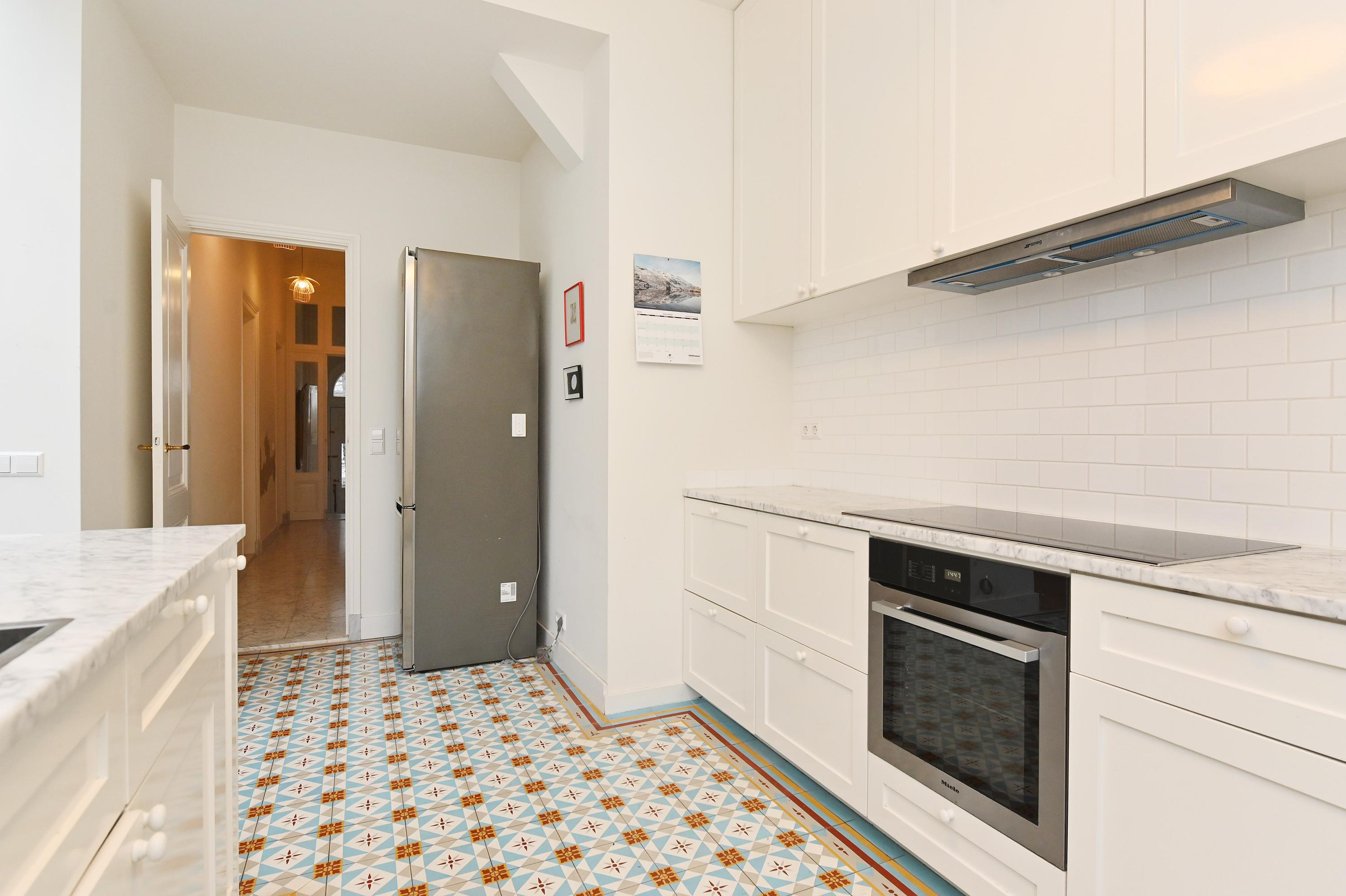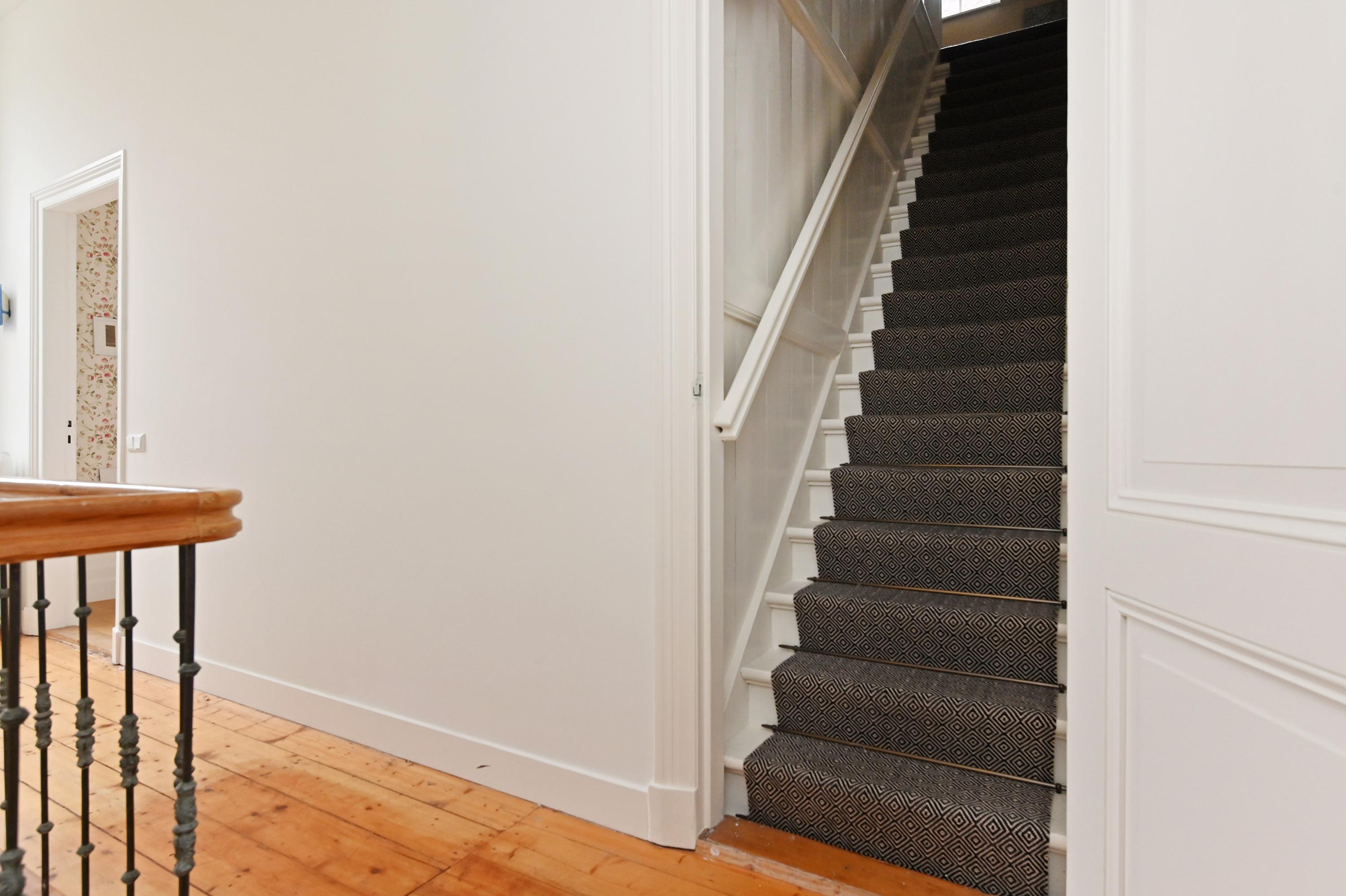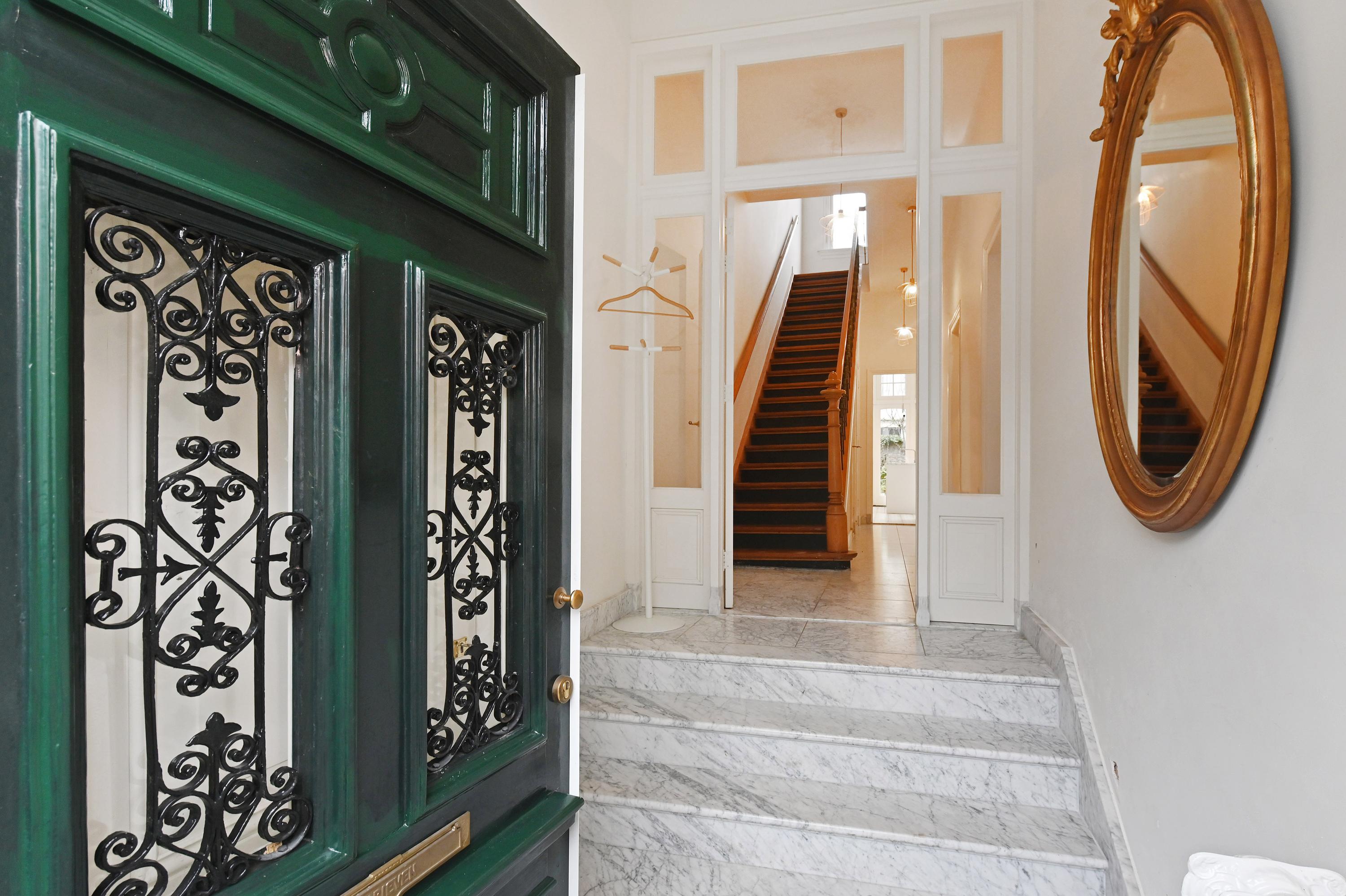 The richly decorated facade with its beautiful windows is stunning. The building is incredibly bright and boasts an impressive 220 m² of living space spread over three floors.