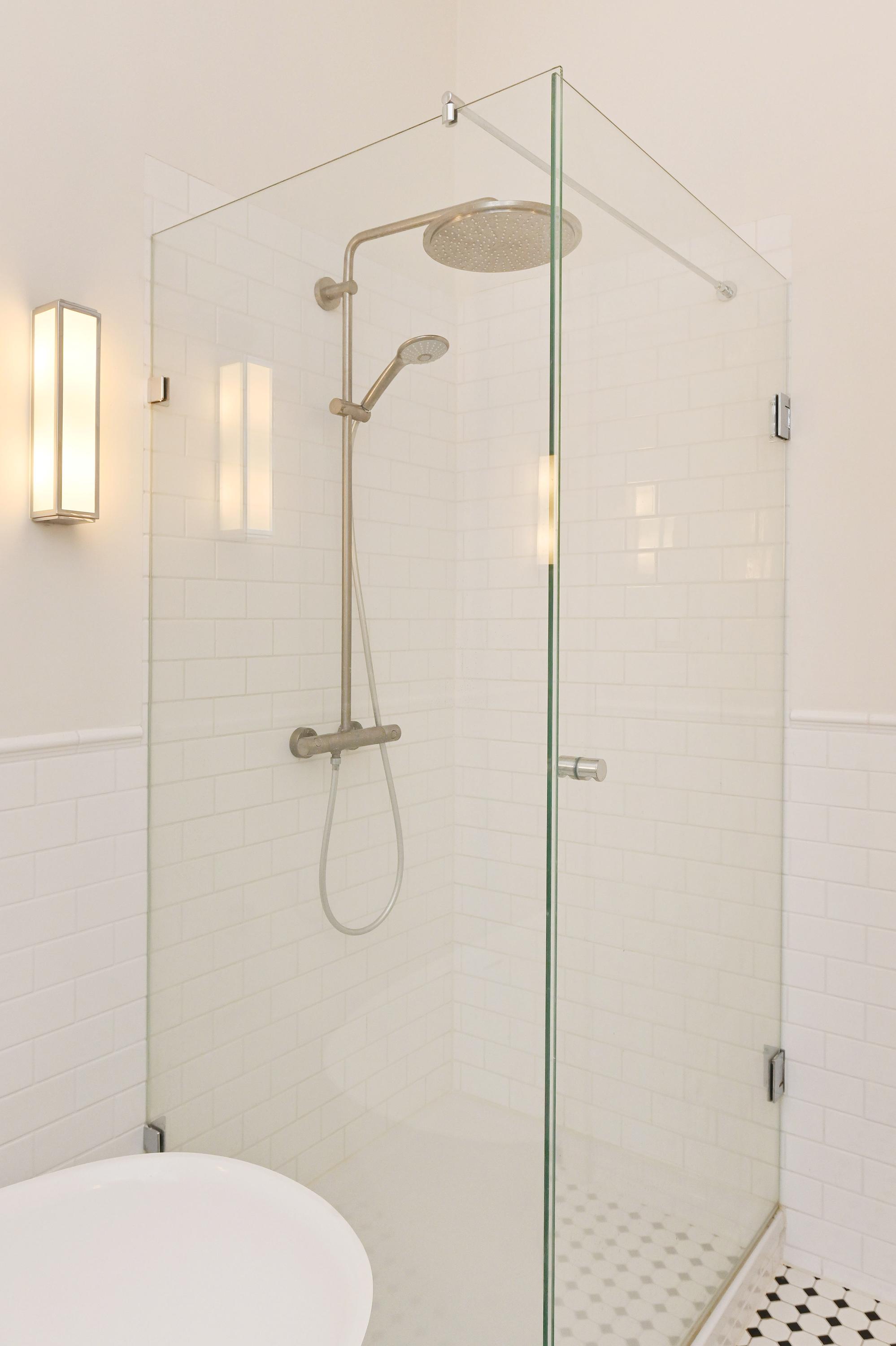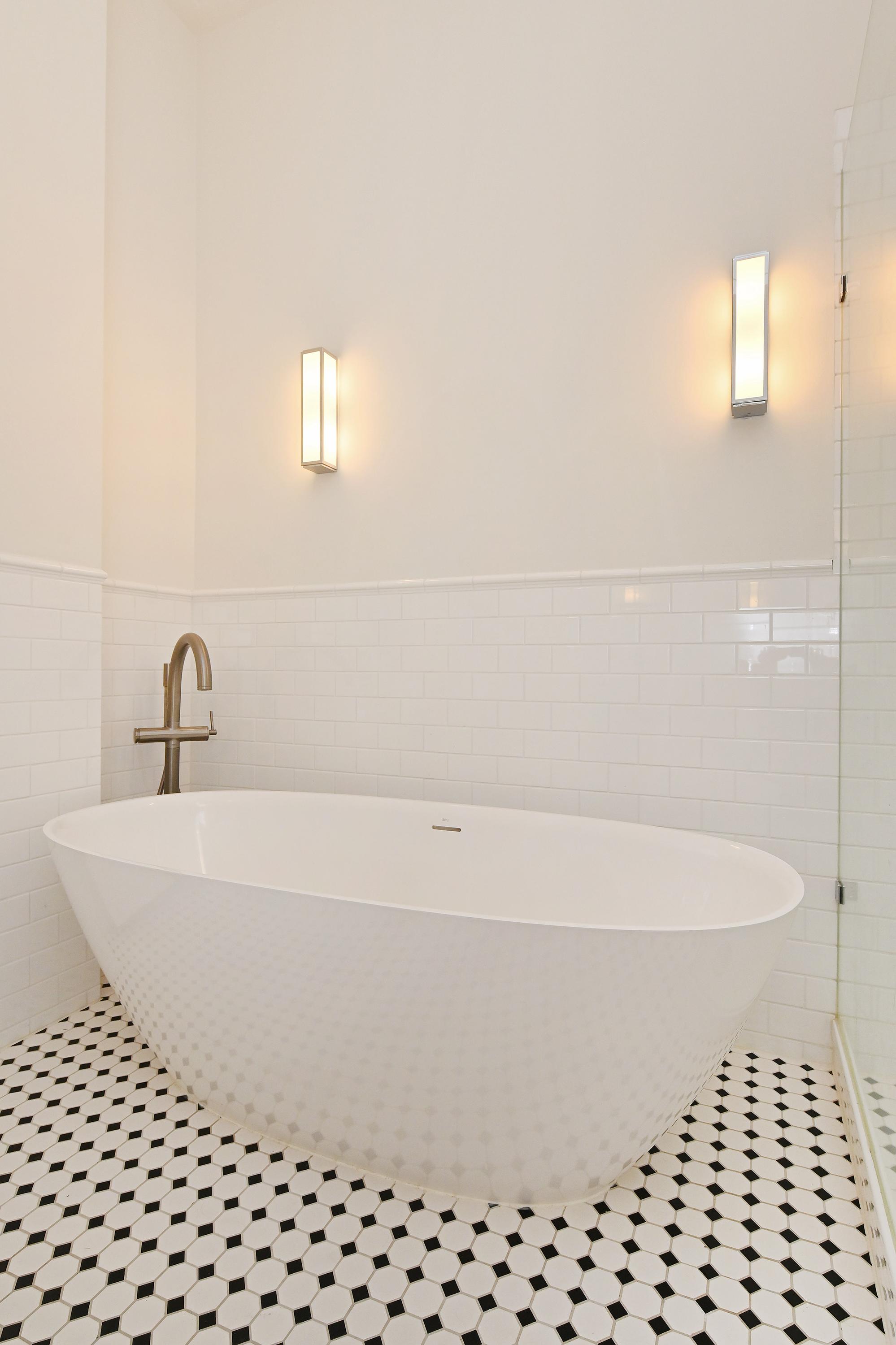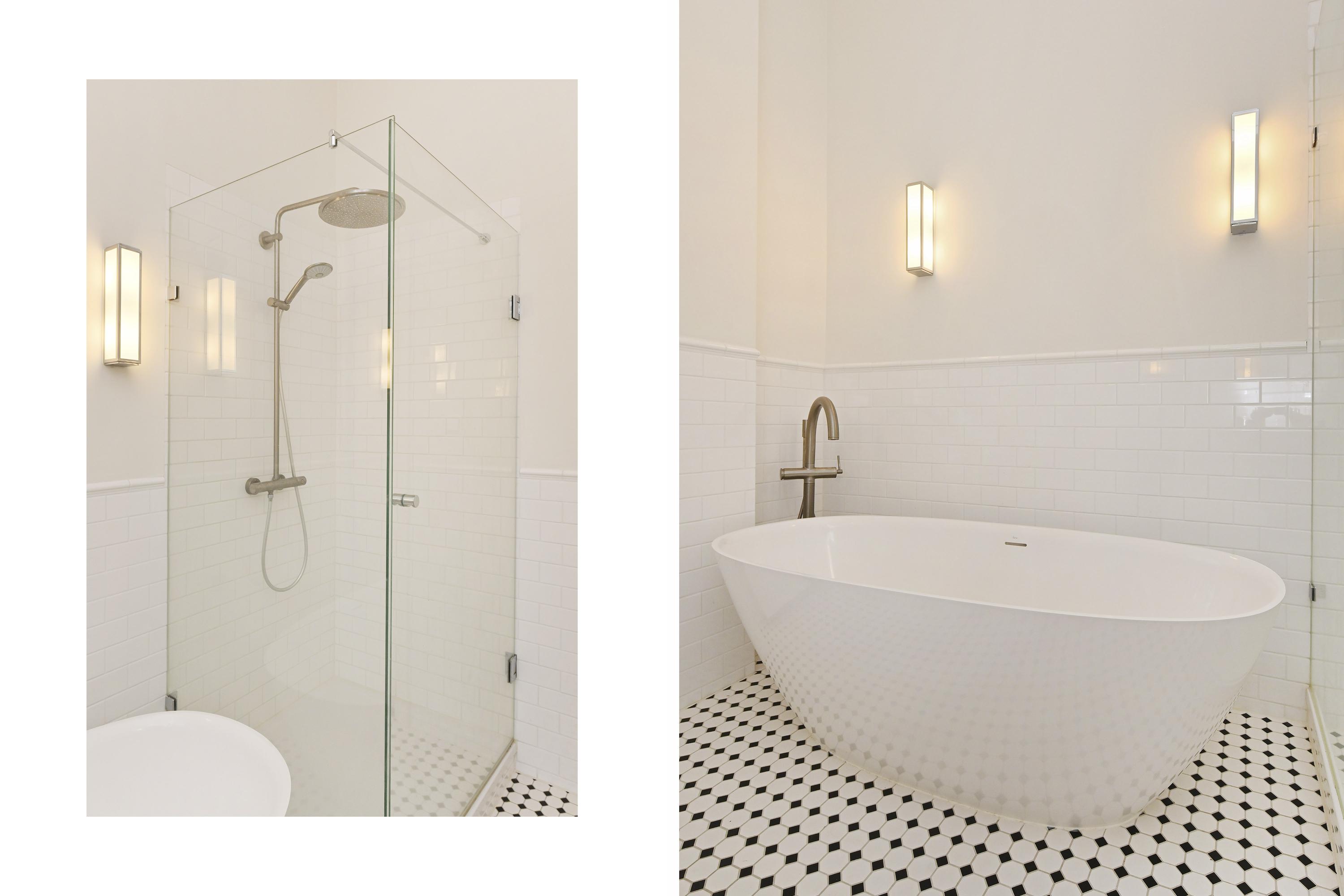 At the rear is a large bedroom that would be ideal as a master bedroom. This floor boasts beautiful 3.4-meter-high ceilings. A new bathroom with a shower, bathtub, double sink, and toilet.