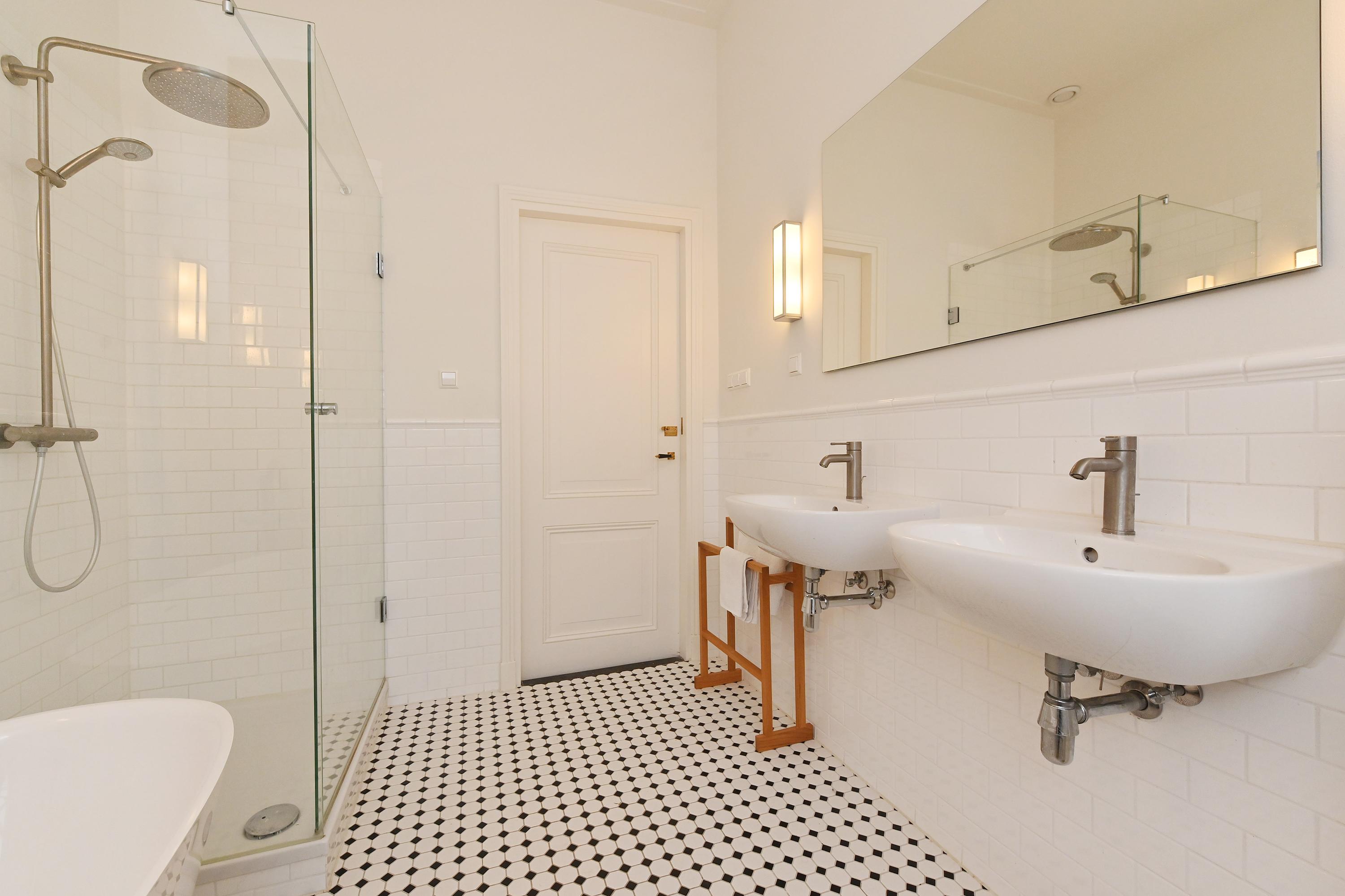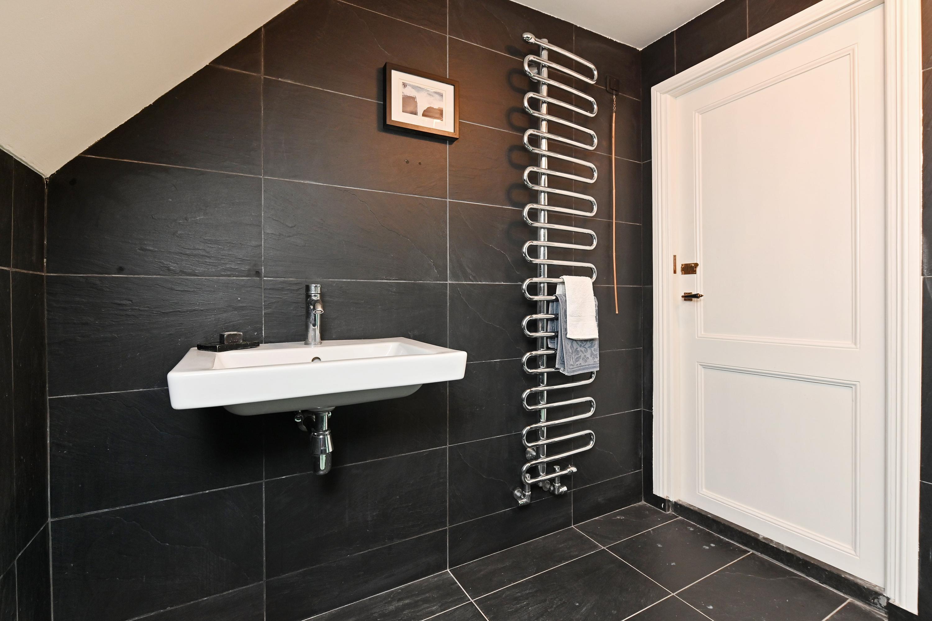 Stairs to the second full floor with two bedrooms at the rear and a large open attic with a ceiling height of over 3 meters and a ridge height of approximately 6 meters. There are four double glazed roof lights in this space. This attic room, with a view of the robust trusses, could easily be divided into a bedroom and a laundry room, for example. Here you will also find the connections for the washing machine and dryer, as well as the central heating boiler and water heater. A modern toilet serves the two bedrooms. As well as a modern bathroom with a spacious walk-in shower, designer radiator, designer toilet cabinet, and modern velux skylight.