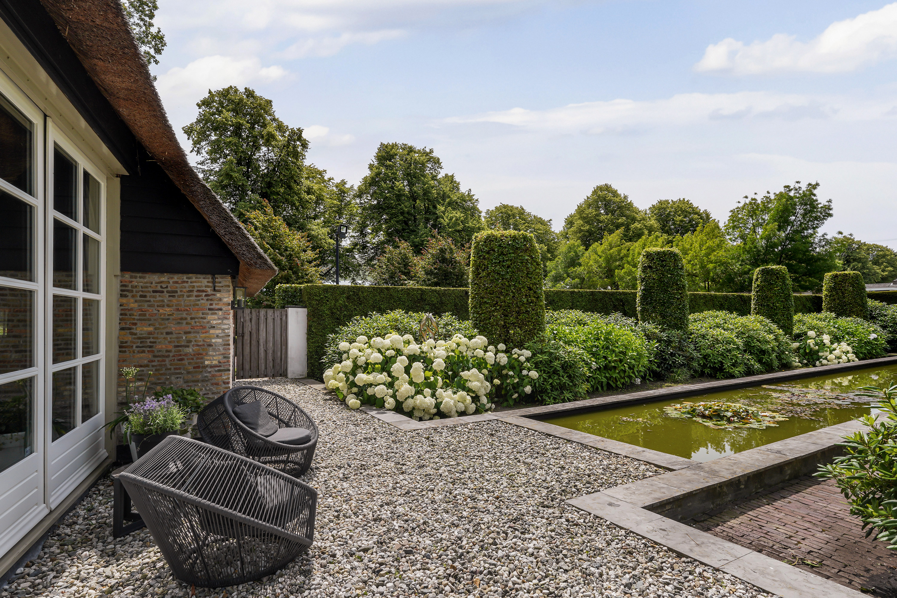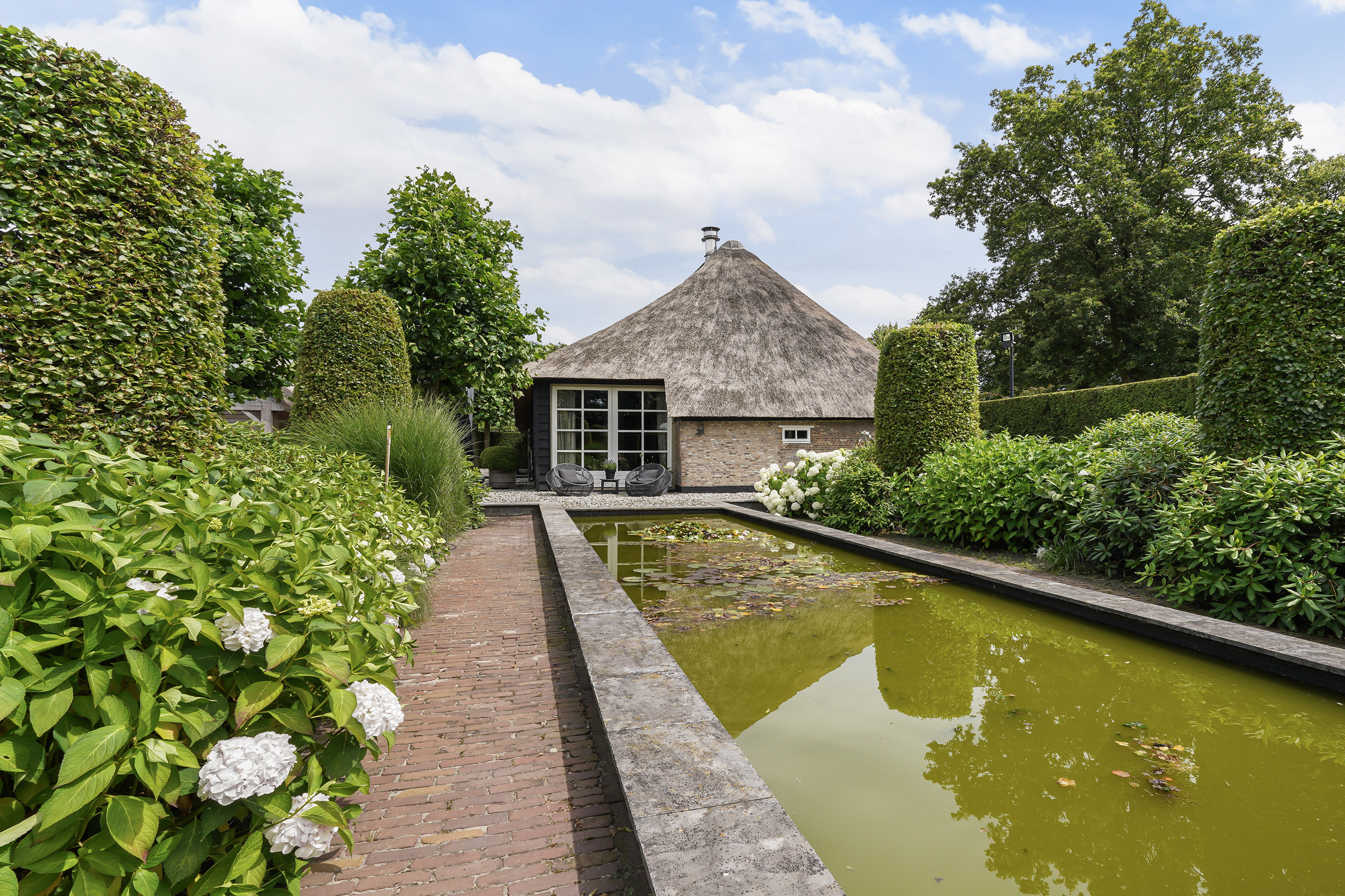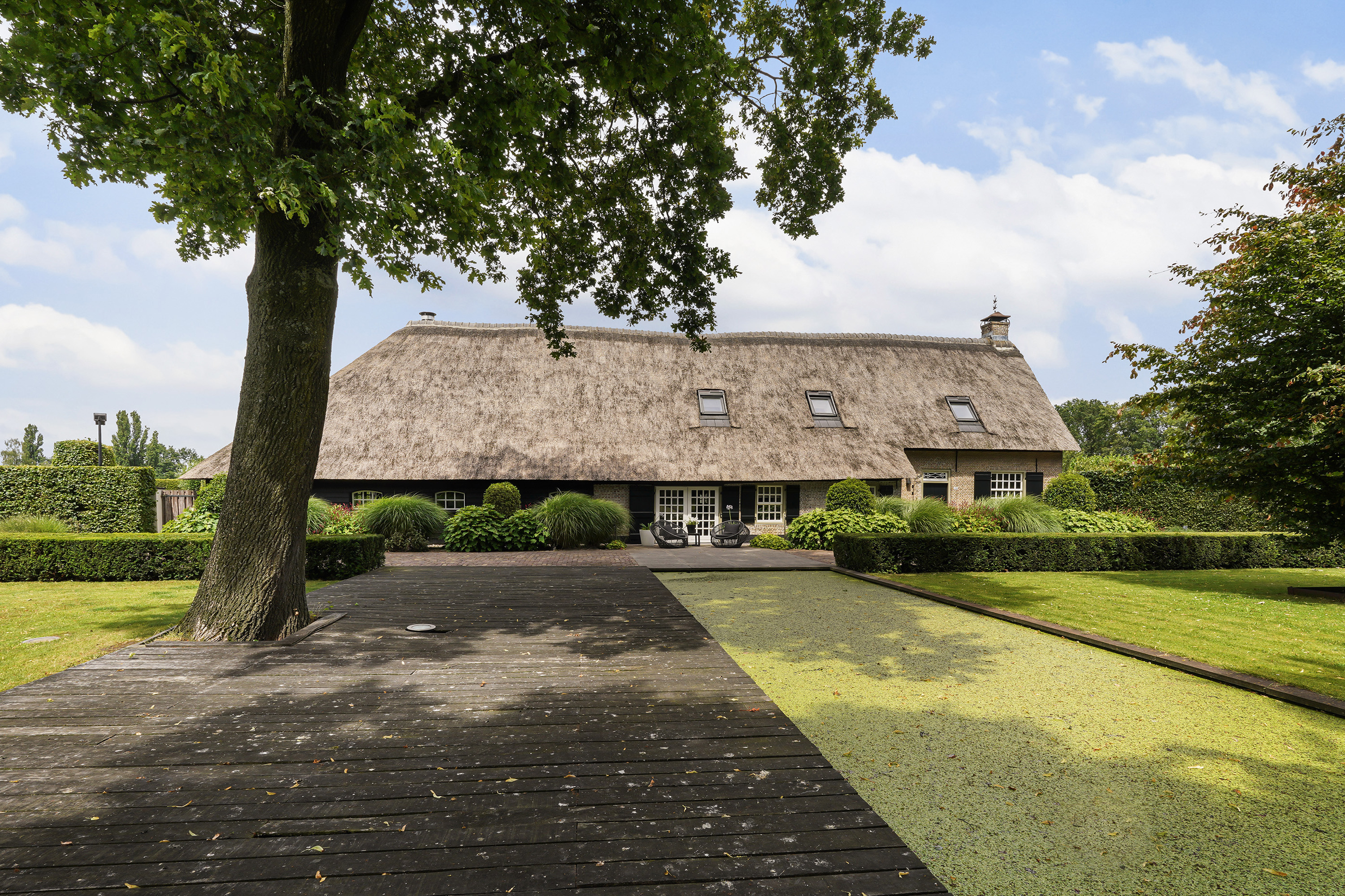 This fully renovated 18th-century Brabantian long farmhouse, designated as a national monument, seamlessly combines historic charm with modern comfort. Set on a generous 3610 m² plot, the property features a stately driveway, an exquisitely landscaped garden with multiple ponds, a heated swimming pool, and a luxurious guesthouse complete with a kitchen, sauna, and mezzanine. Every aspect of the home has been carefully restored and upgraded, preserving its historic integrity while offering every modern convenience.