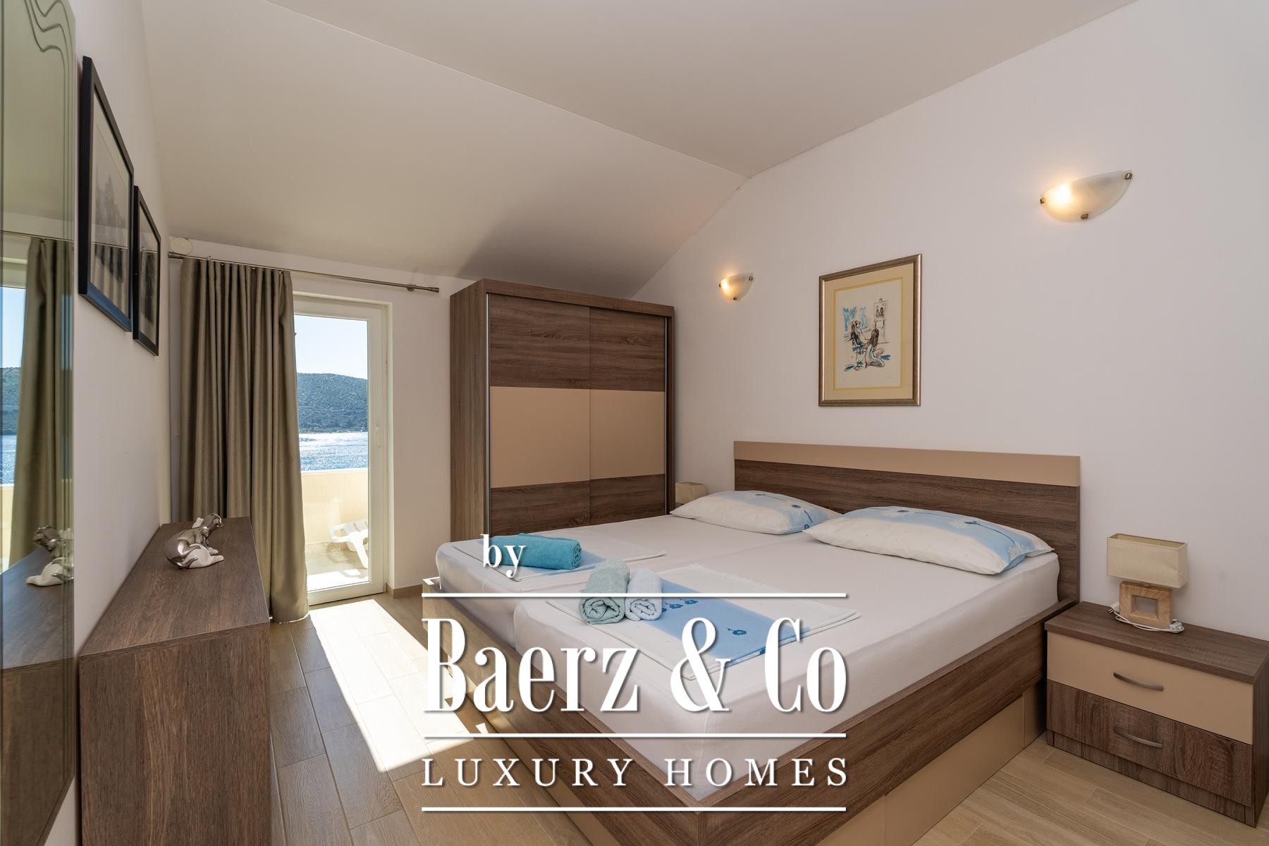 Slano - House with Garage, 350 m² Gross Floor Area, in an Elevated Position with Stunning Sea and Surrounding ViewsThe property has three levels, including the garage and a parking area in front of the house.The basement has a storage room, a living room with a kitchen, a bedroom, a bathroom, a laundry/storage room, and a spacious terrace.On the ground floor, there is an apartment with an entrance hall, a spacious living room with a kitchen and dining area, a loggia of 18.60 m², a toilet, a bathroom, and two bedrooms.The