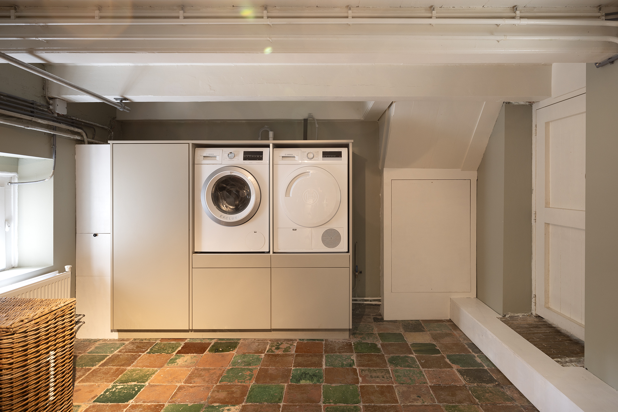 De opkamer met uitzicht op de polder is een geweldige werkkamer, voorzien van een grote schouw en een eigen entree. Onder deze kamer bevindt zich één van de twee kelders, nu in gebruik als royale wasruimte. De verdieping biedt nog meer ruimte: 4 slaapkamers, een moderne badkamer, apart toilet en zelfs een bedstee voor wie het knus wil houden.