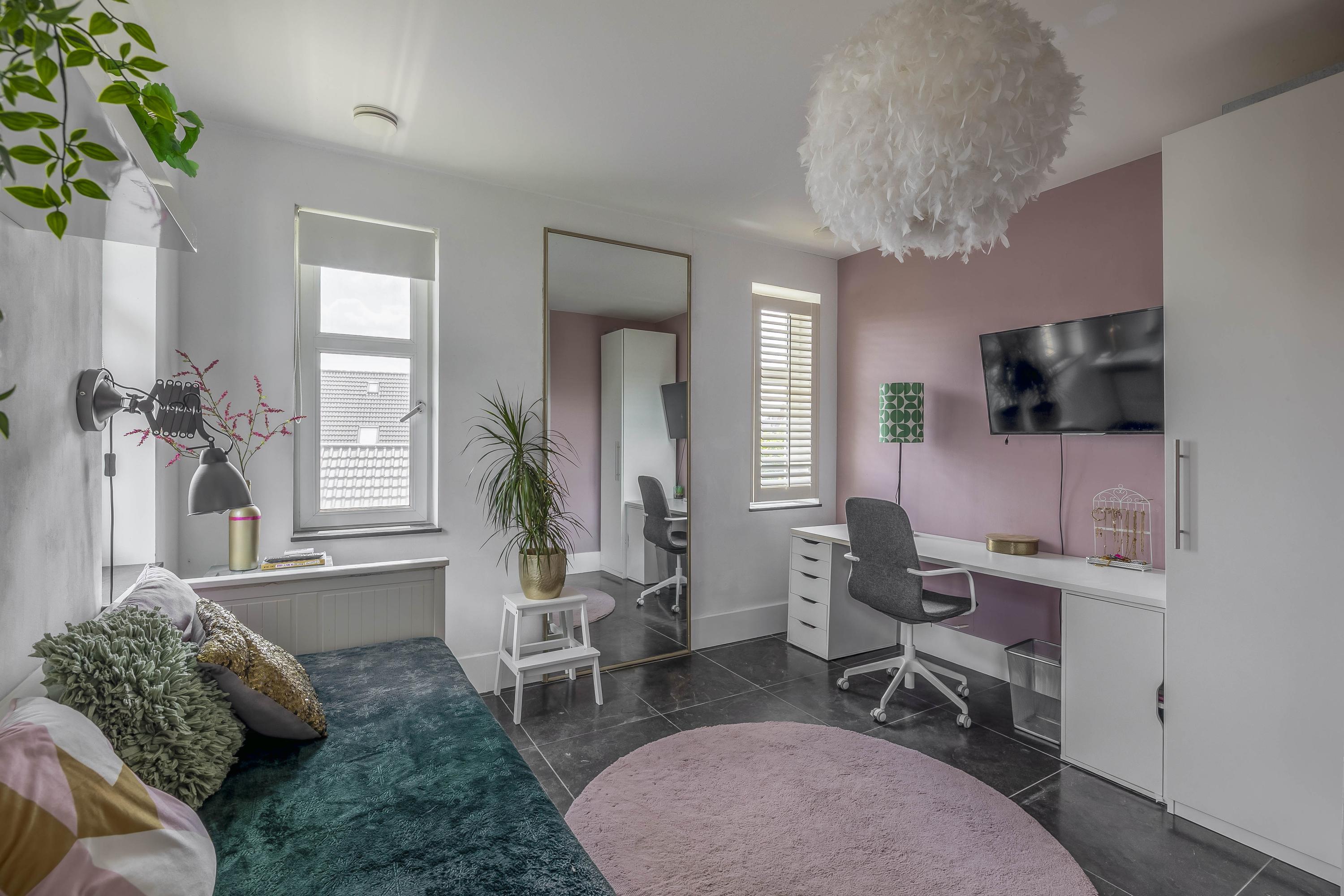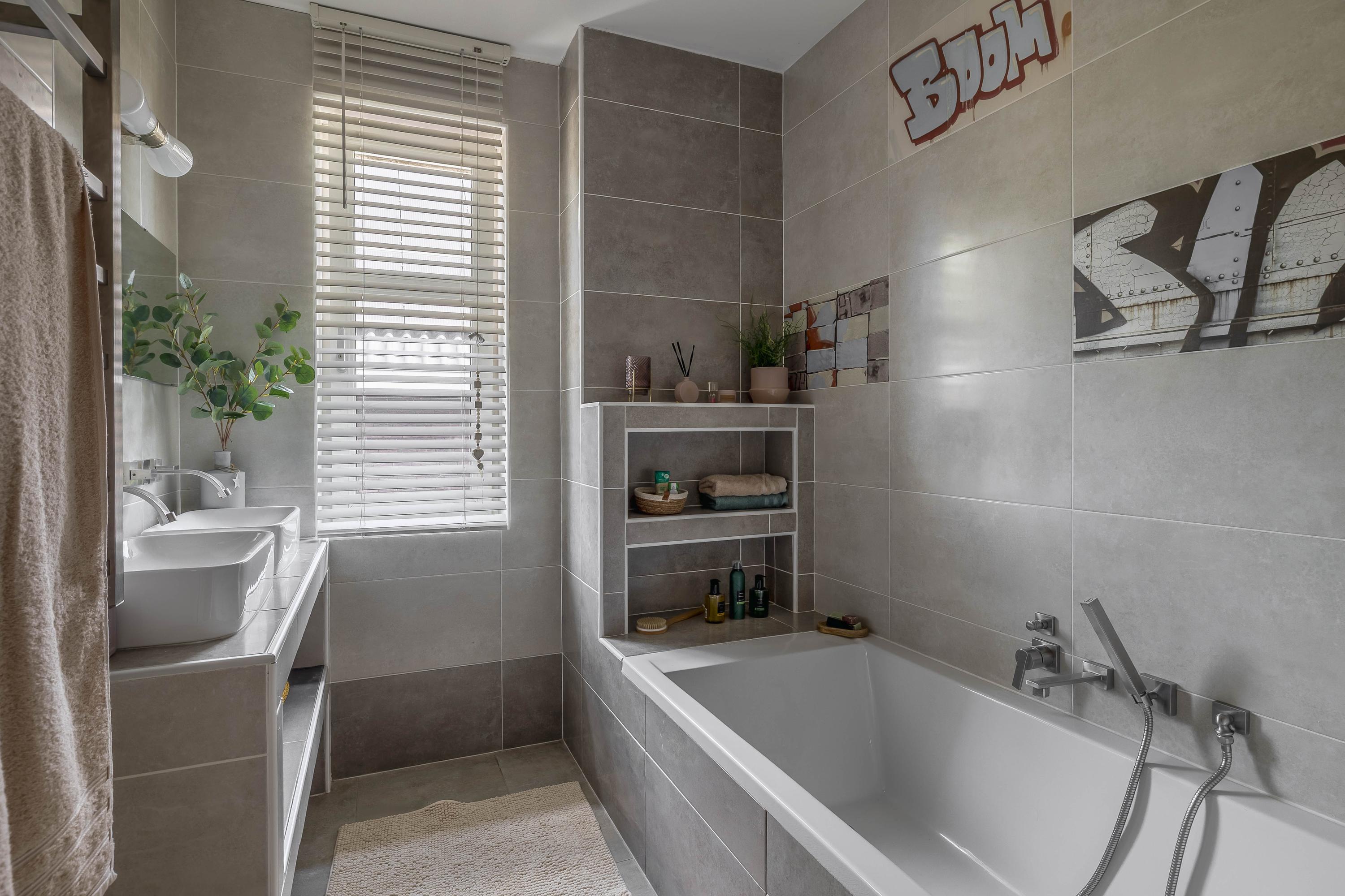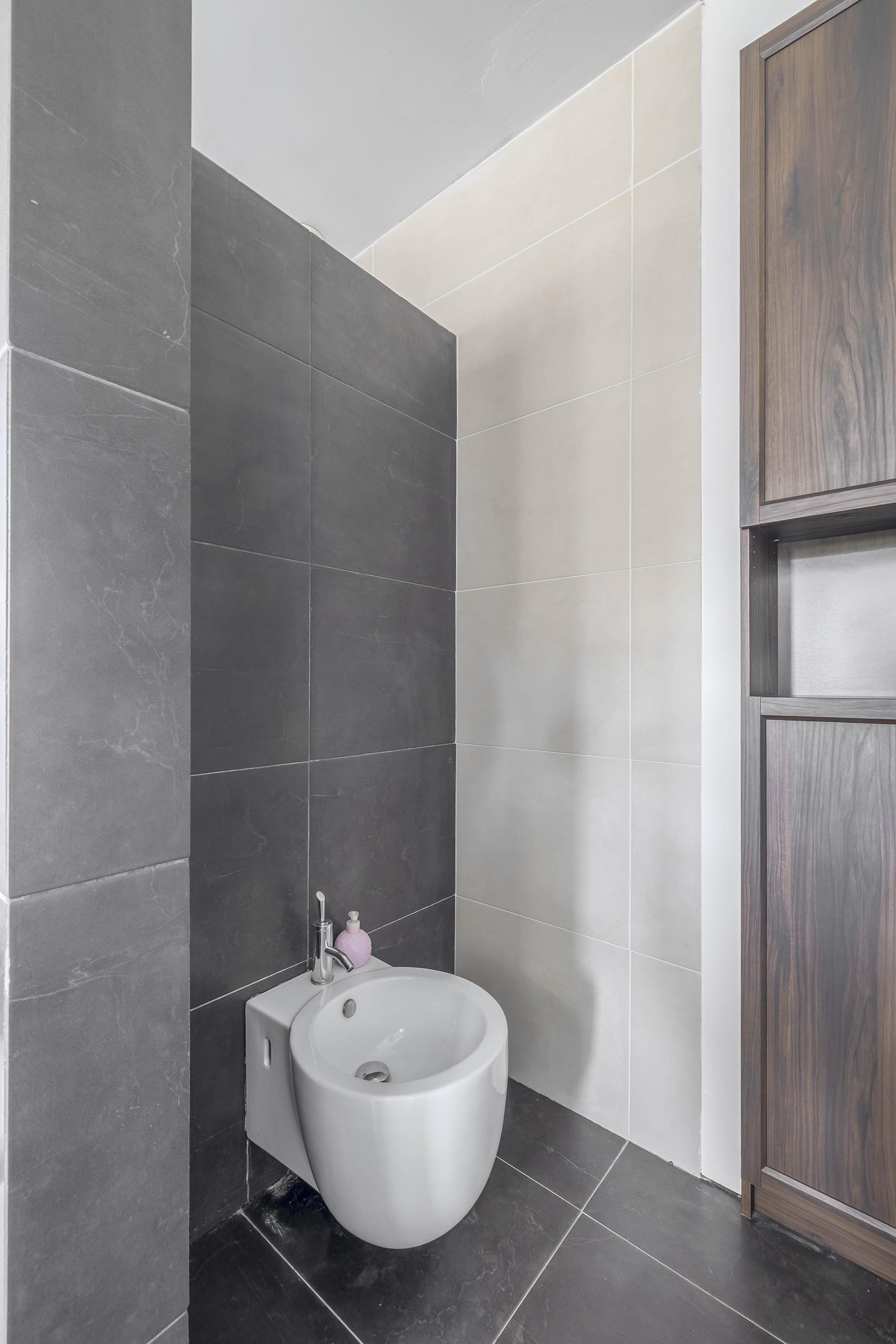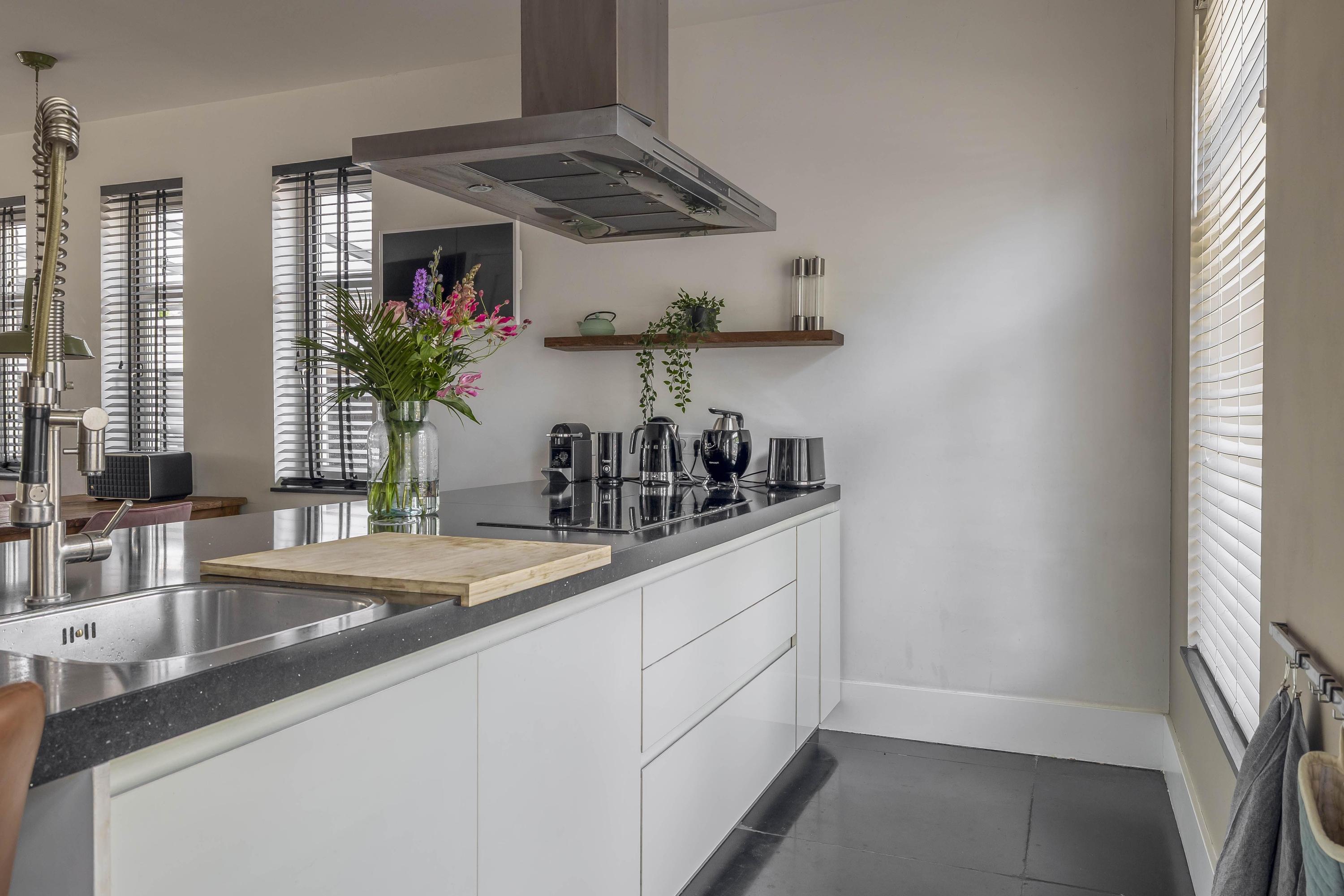 The interiors unfold across three levels of understated quality, from the kitchen’s elevated position overlooking the street, to a living room that soars to 3.5 meters, seamlessly connected to the private south-facing garden. Five bedrooms and four bathrooms, including en-suite master quarters and two additional luxurious baths, accommodate both retreat and gathering. Material choices—stone floors, stucco finishes, plastic window frames with HR++ glass—balance resilience with calm tactility, while underfloor heating and cooling in most rooms ensure effortless comfort.