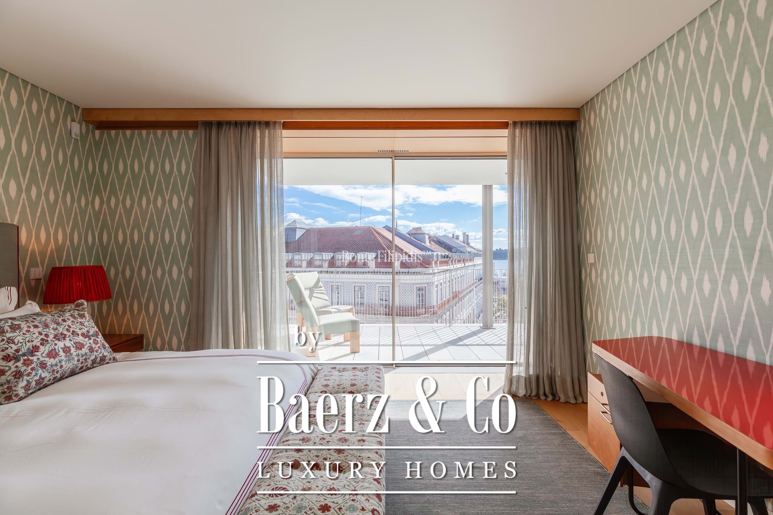 Apartment Estrela Lisbon is set in the creative enclave of Santos, known for its energy and riverside allure. This four-bedroom residence offers 248 m² of living space, where refined design and light are constant companions. A 46 m² private terrace, oriented south, connects interior and exterior, framing panoramic views of the Rio Tejo, Cristo Rei, and Largo de Santos, and offering sunlight throughout the day.