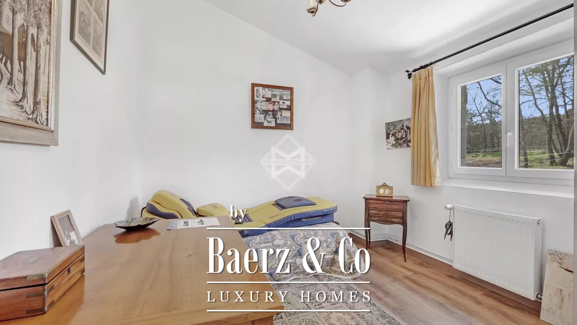 Within the 10,800 m² enclosed grounds, a saltwater infinity pool with swim spa creates a tranquil retreat. Equestrian amenities feature three horse stalls and a sand arena, meeting the needs of discerning horse enthusiasts. A suite of modern facilities, including air conditioning, water softener, double glazing, car port, security systems, and automated gates, ensures ease and security.