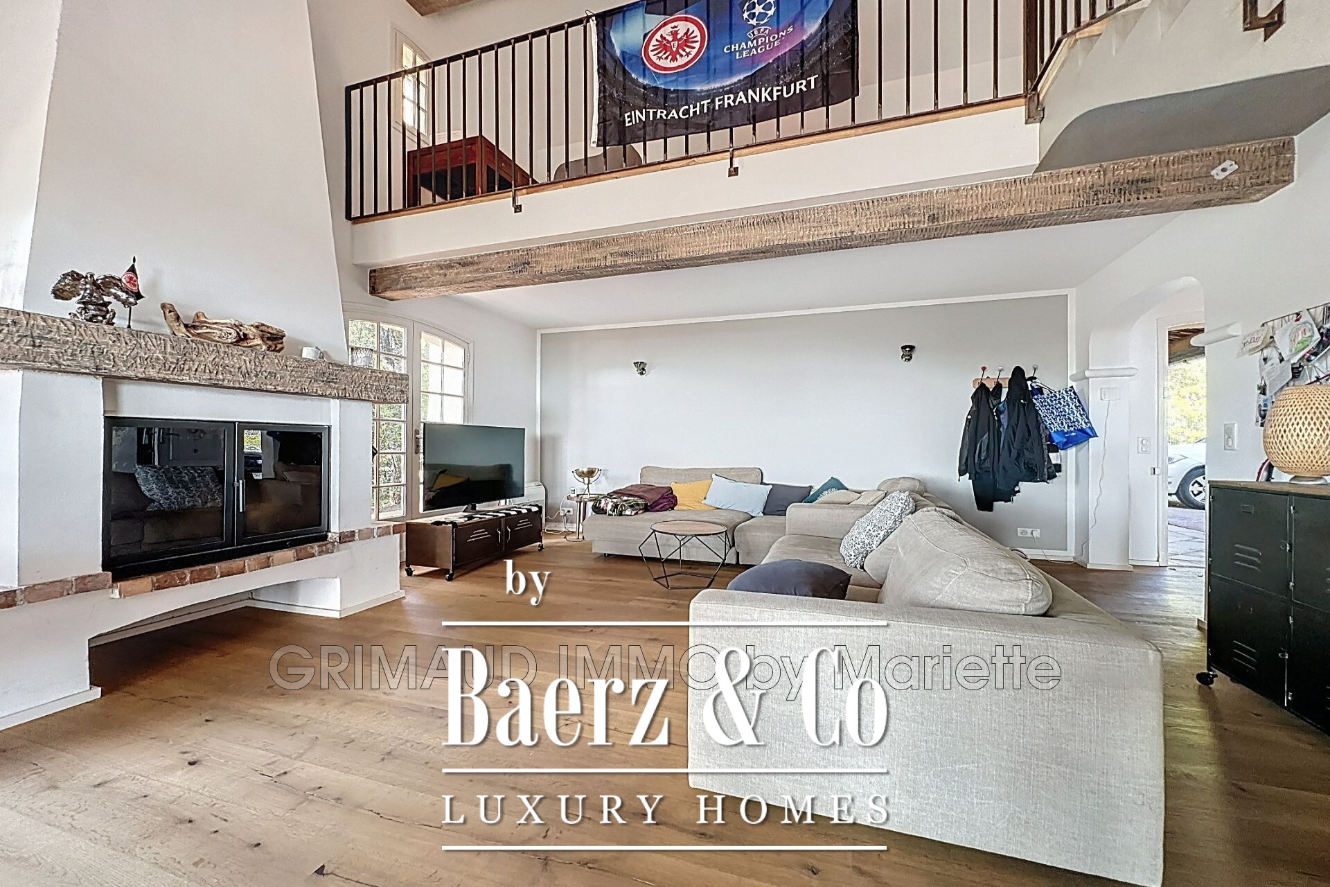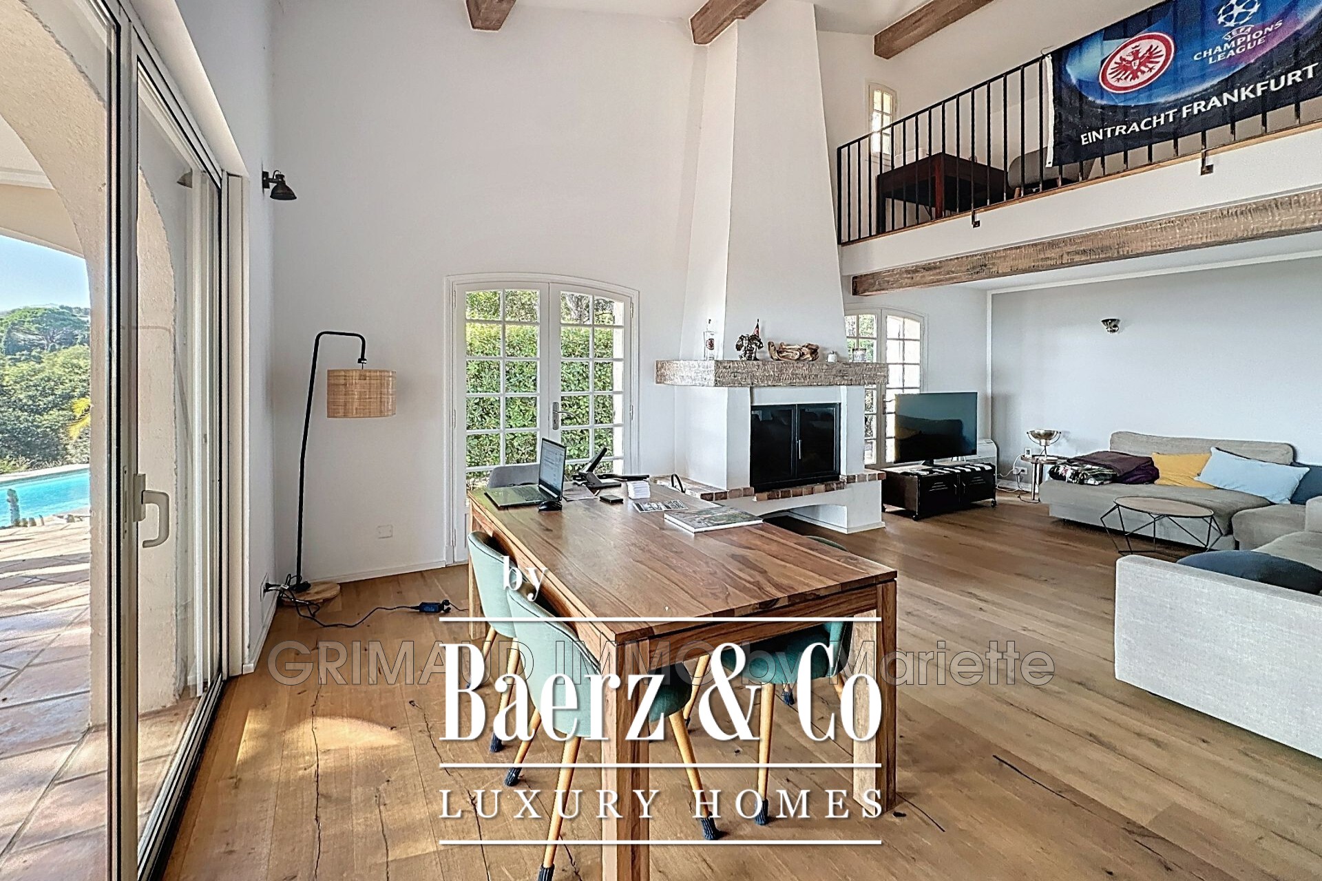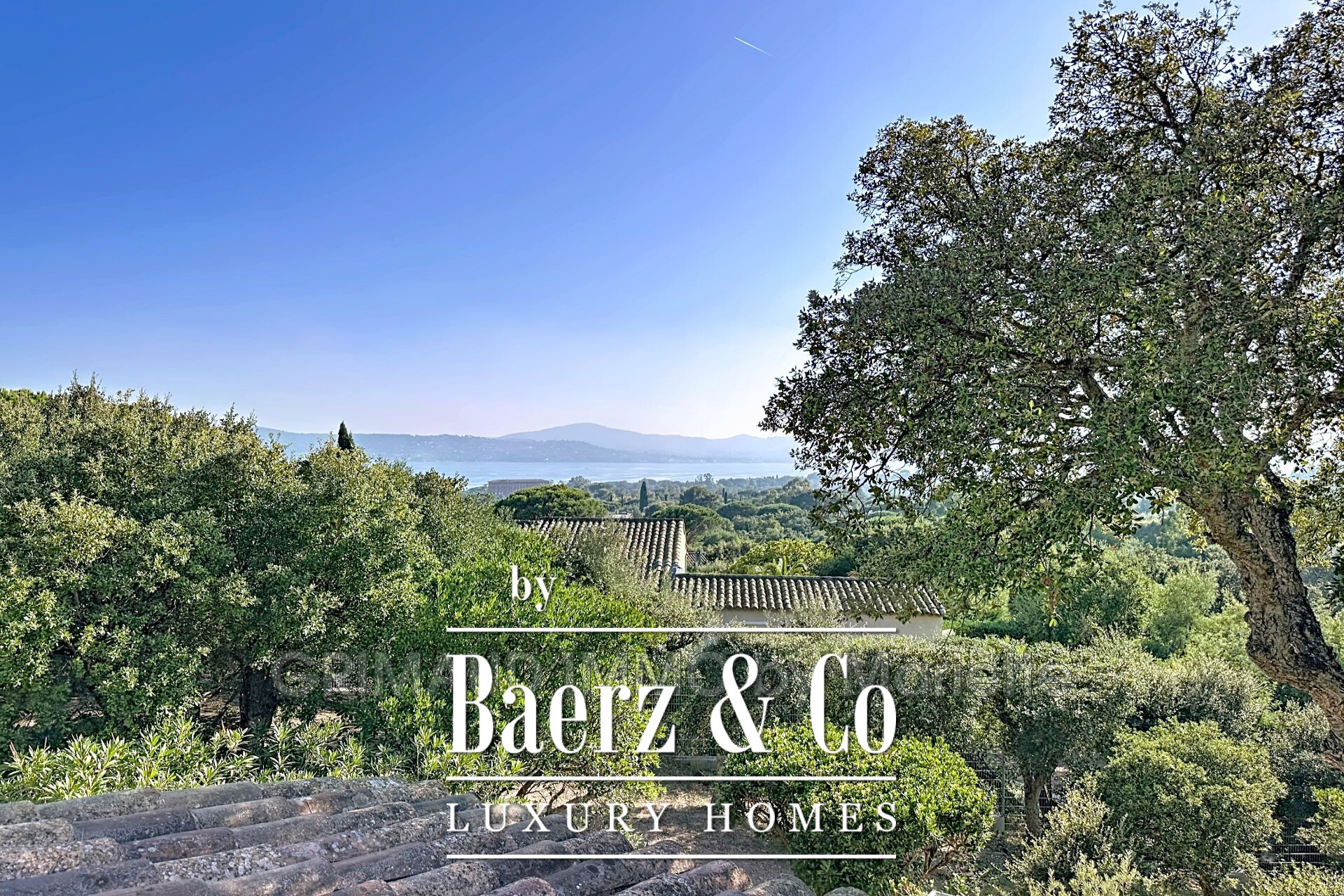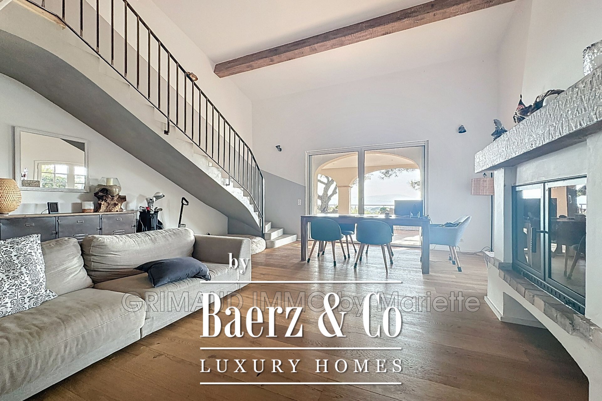 Villa Grimaud with Bay of Saint Tropez View welcomes you to a refined Provençal residence positioned quietly on a 4100 m² plot. This villa Grimaud offers 143 m² of living space, combining practical elegance with an understated sense of luxury. The entrance hall opens to a bright living room with a fireplace, and an independent fitted kitchen. The ground floor features three bedrooms and two shower rooms, while upstairs the master suite includes its own bathroom and a dedicated office space.