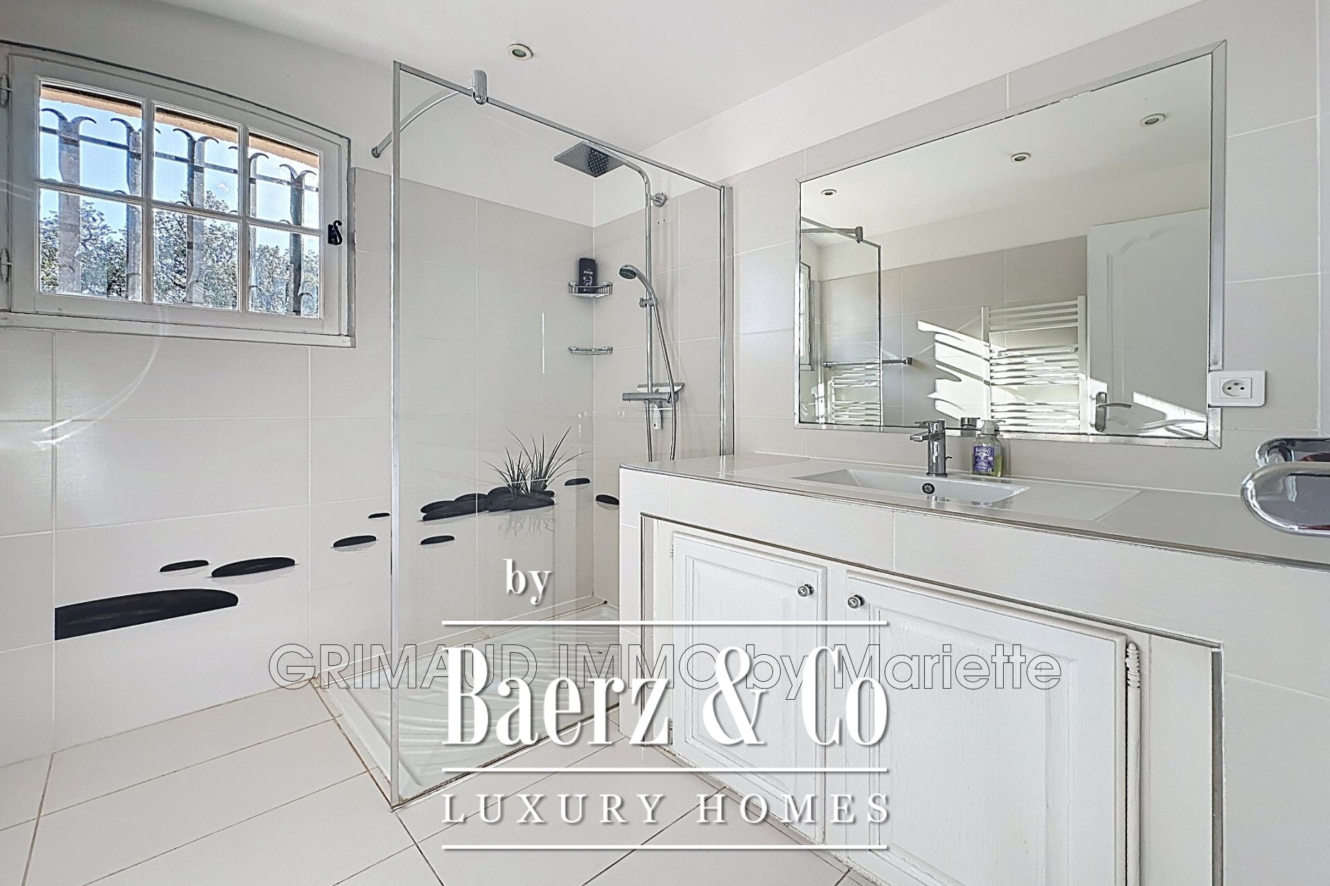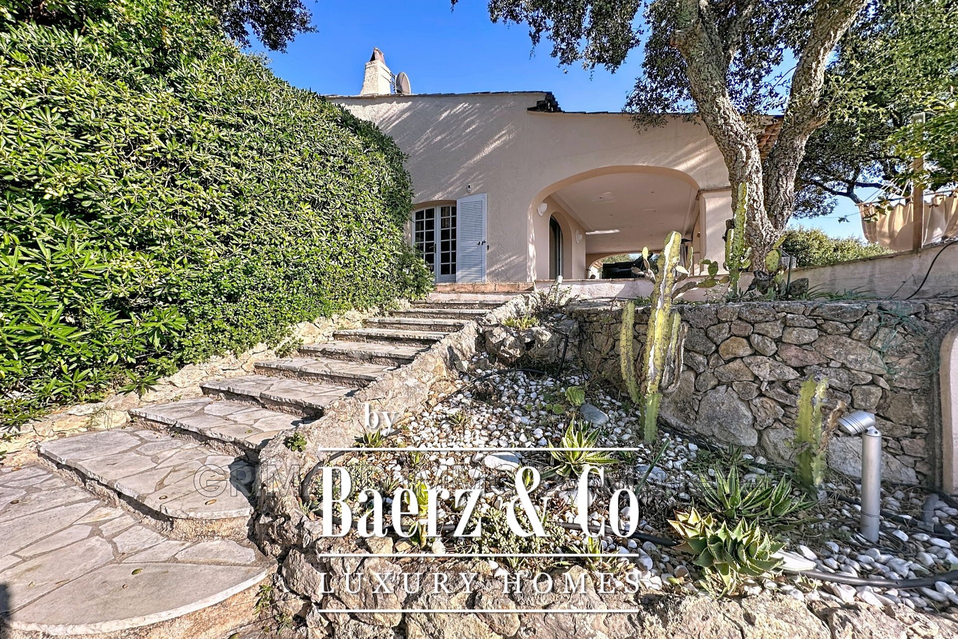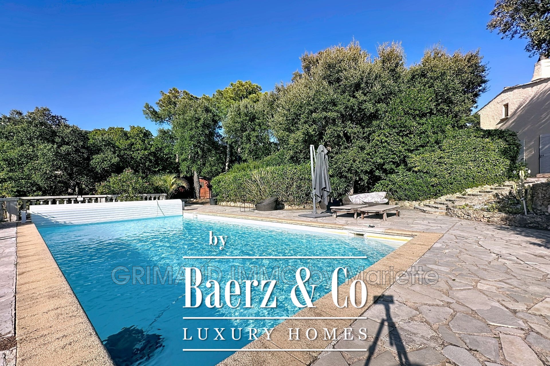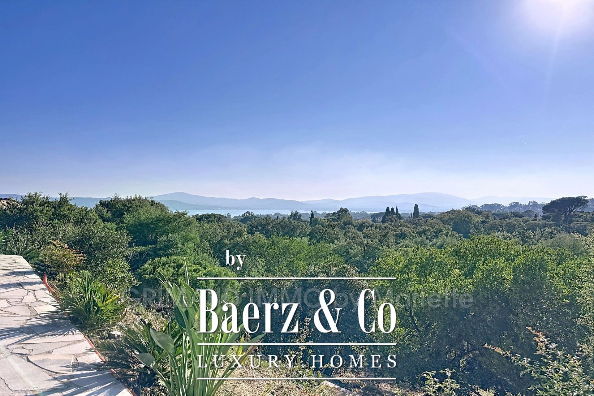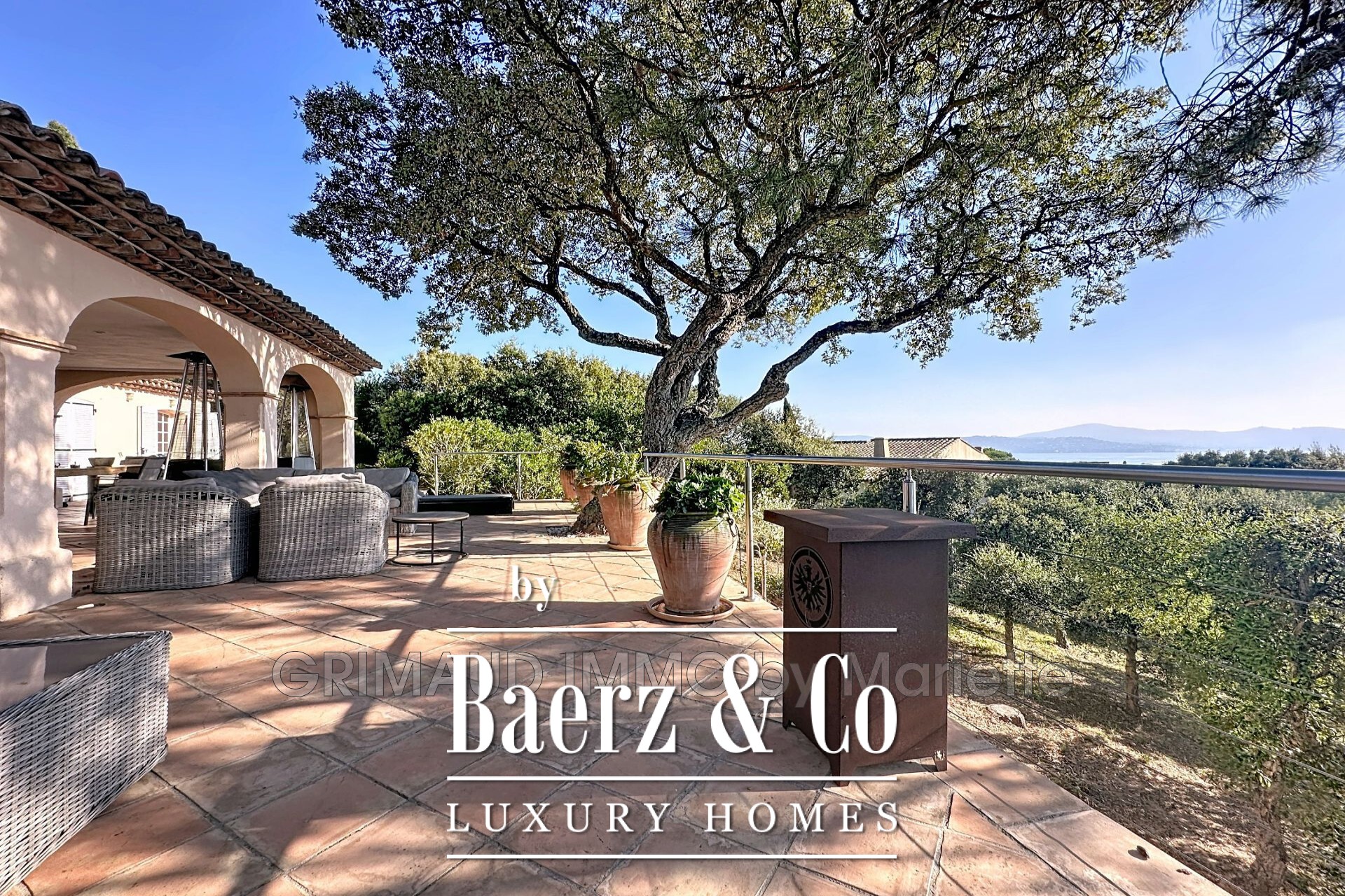 Villa Grimaud with Bay of Saint Tropez View welcomes you to a refined Provençal residence positioned quietly on a 4100 m² plot. This villa Grimaud offers 143 m² of living space, combining practical elegance with an understated sense of luxury. The entrance hall opens to a bright living room with a fireplace, and an independent fitted kitchen. The ground floor features three bedrooms and two shower rooms, while upstairs the master suite includes its own bathroom and a dedicated office space.