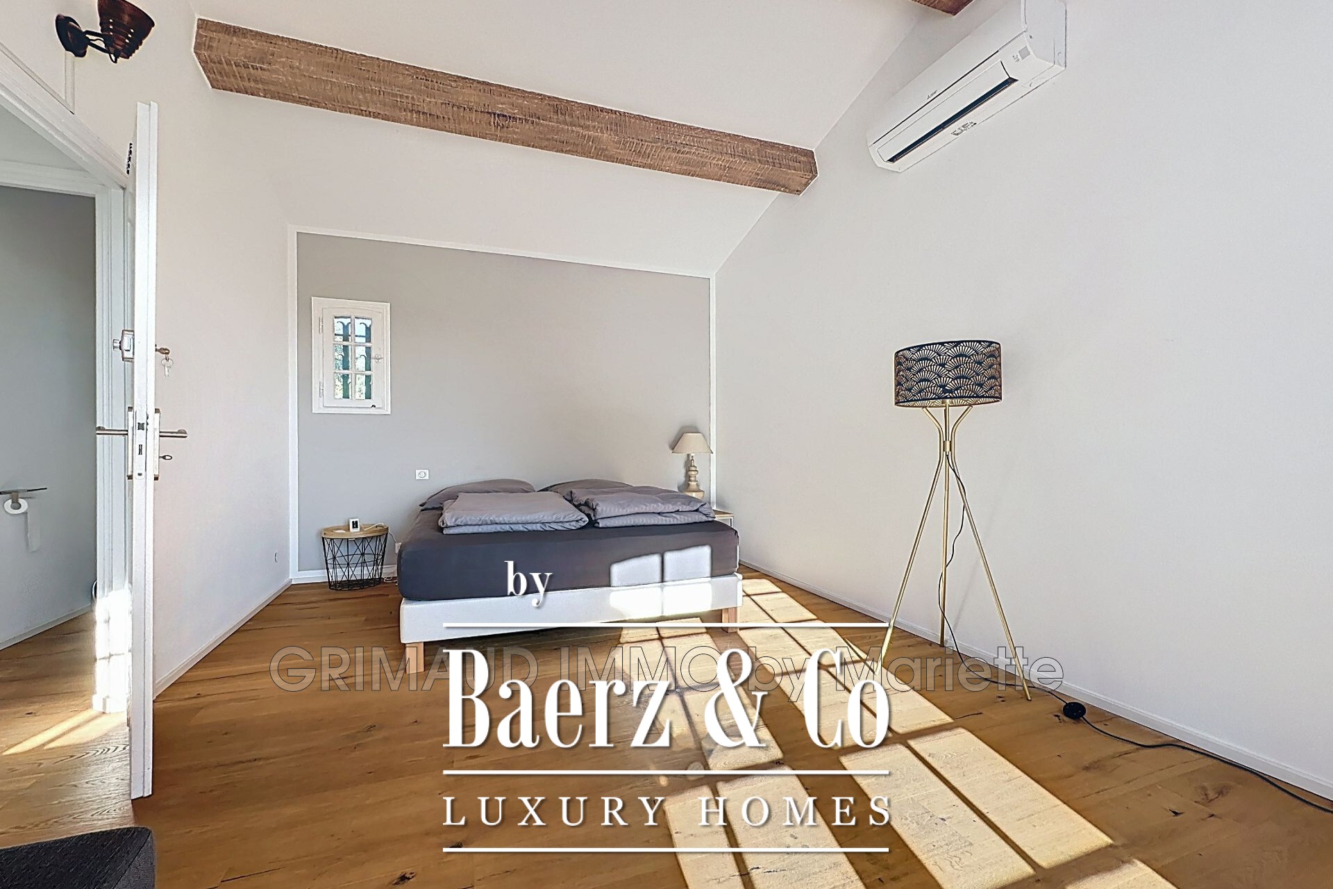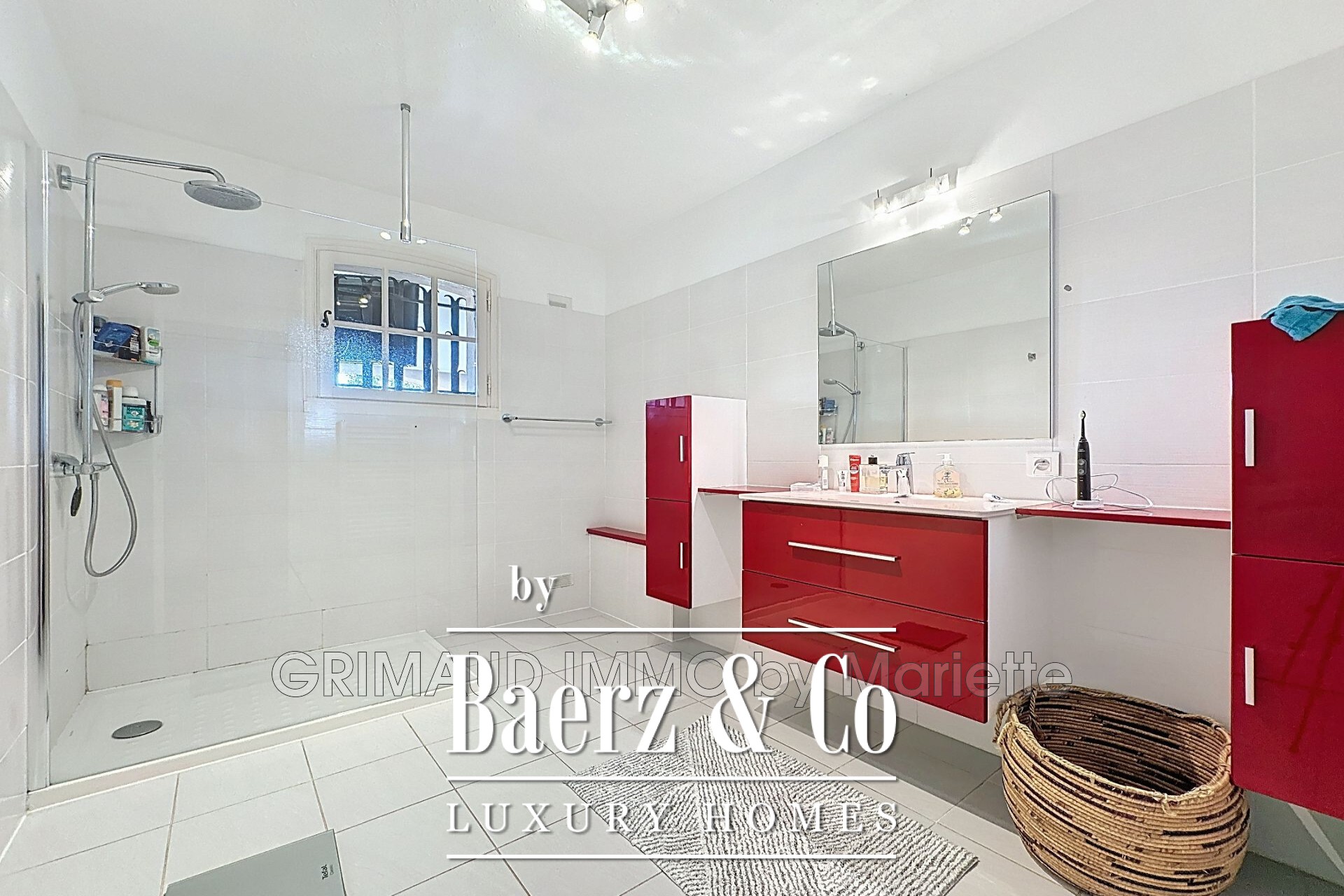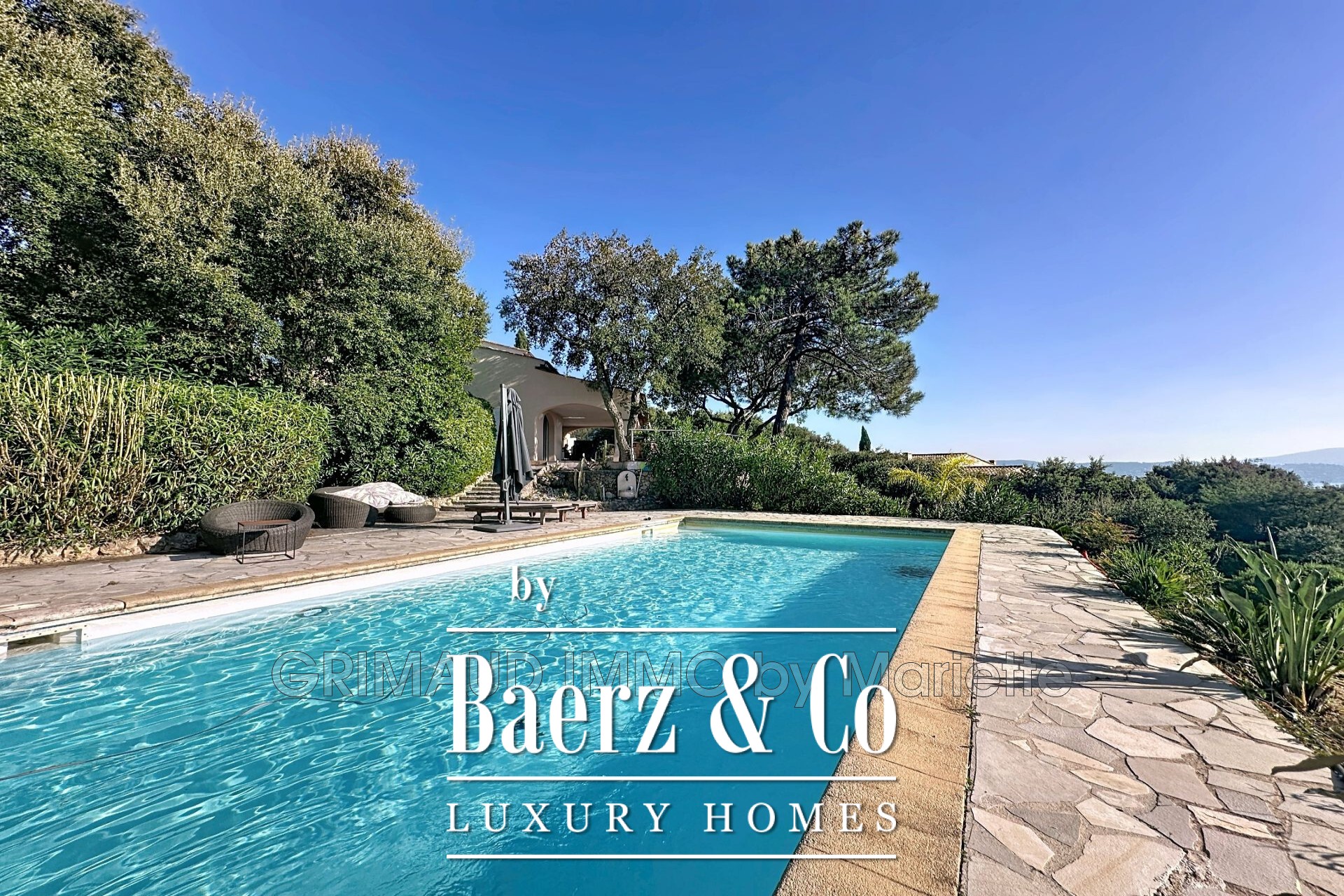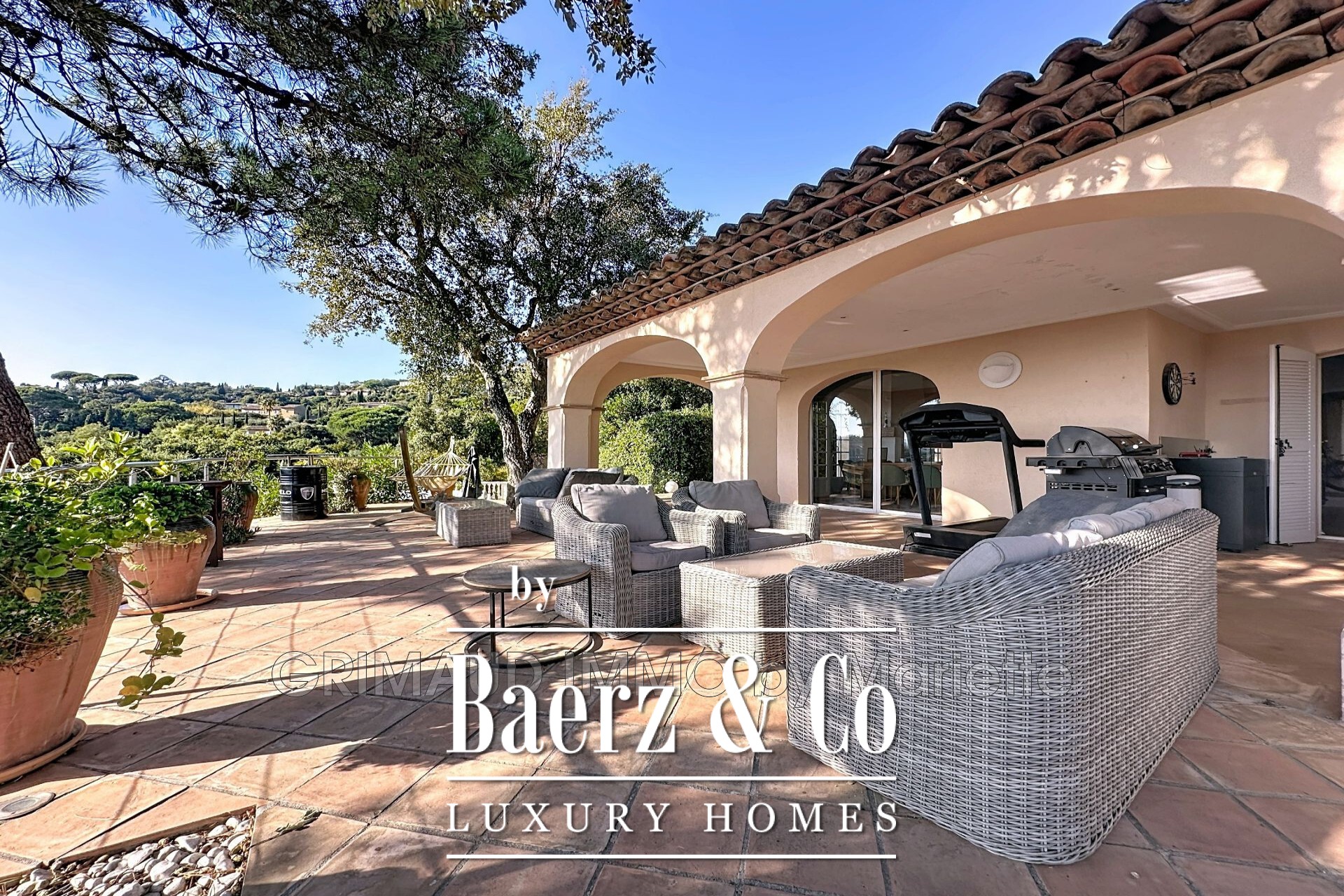 Villa Grimaud with Bay of Saint Tropez View welcomes you to a refined Provençal residence positioned quietly on a 4100 m² plot. This villa Grimaud offers 143 m² of living space, combining practical elegance with an understated sense of luxury. The entrance hall opens to a bright living room with a fireplace, and an independent fitted kitchen. The ground floor features three bedrooms and two shower rooms, while upstairs the master suite includes its own bathroom and a dedicated office space.