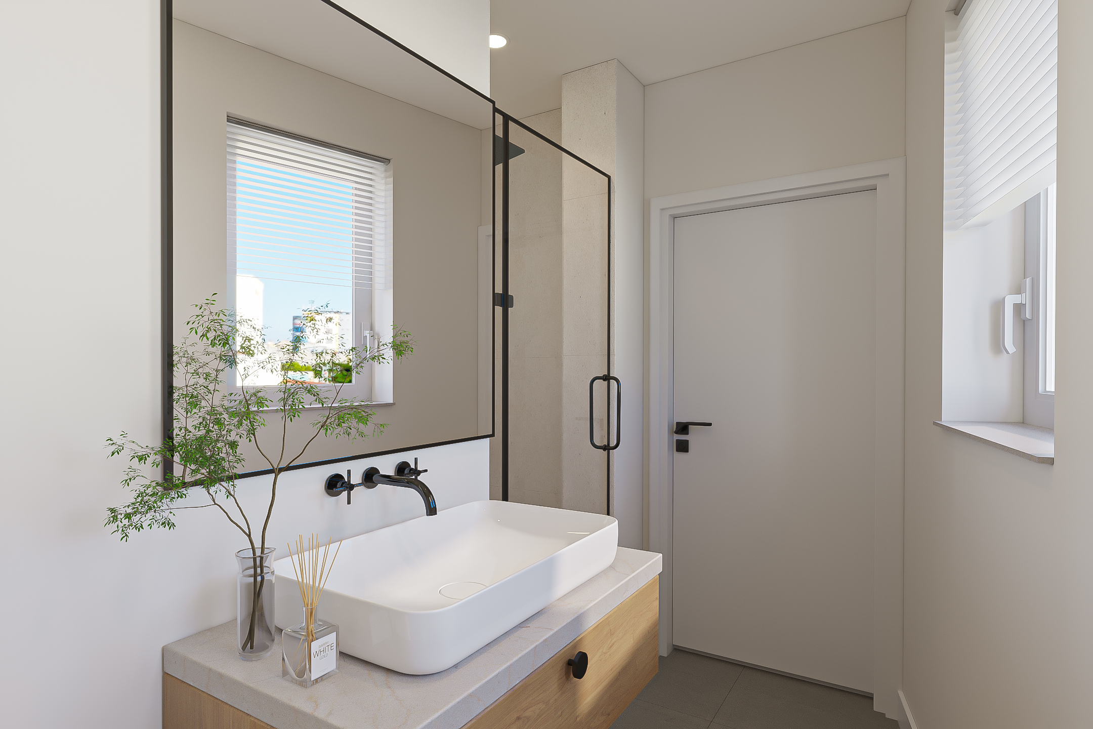 A unique feature, supported by preliminary municipality approval, is the potential to divide the penthouse into two independent apartments, each with its own entrance and flexible layout.