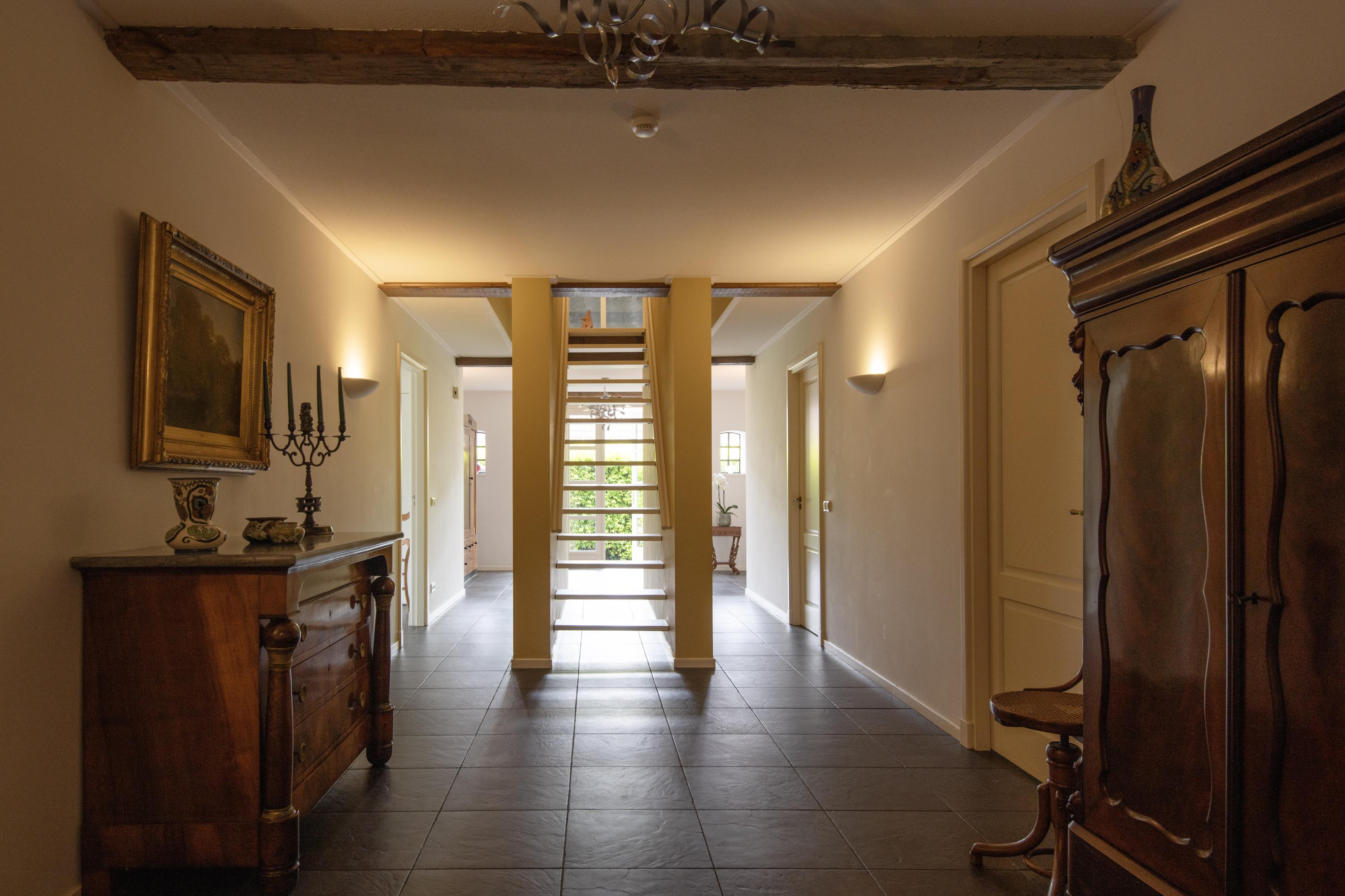 Accessibility is excellent, as Utrecht can be reached in 30 minutes and Eindhoven Airport in 40 minutes. The farmhouse is not only well maintained, but above all comfortable. All hardwood windows have HR glazing, walls and floors are insulated and on the insulated roof are no less than 46 solar panels. Together with the Nefit heat pump and 2 high-efficiency boilers, in combination with underfloor heating on the entire first floor, this ensures sustainable comfort. The farmhouse also guarantees safe living and is equipped with burglar-proof locks and hinges and an extensive alarm system with alarm notification.