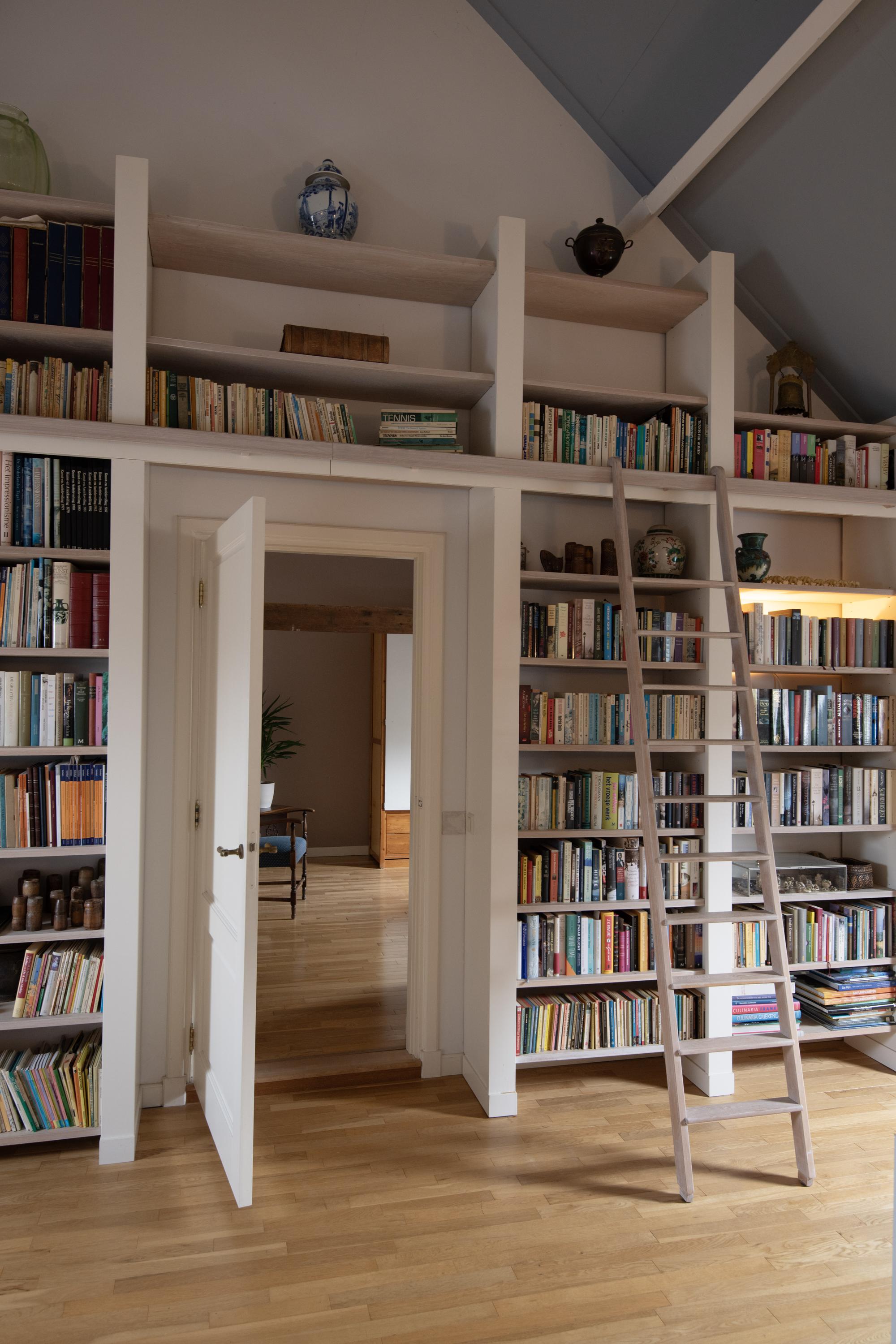 This floor has two entrances. In the front house, the staircase leads to a beautiful, bright room which is furnished as a library.