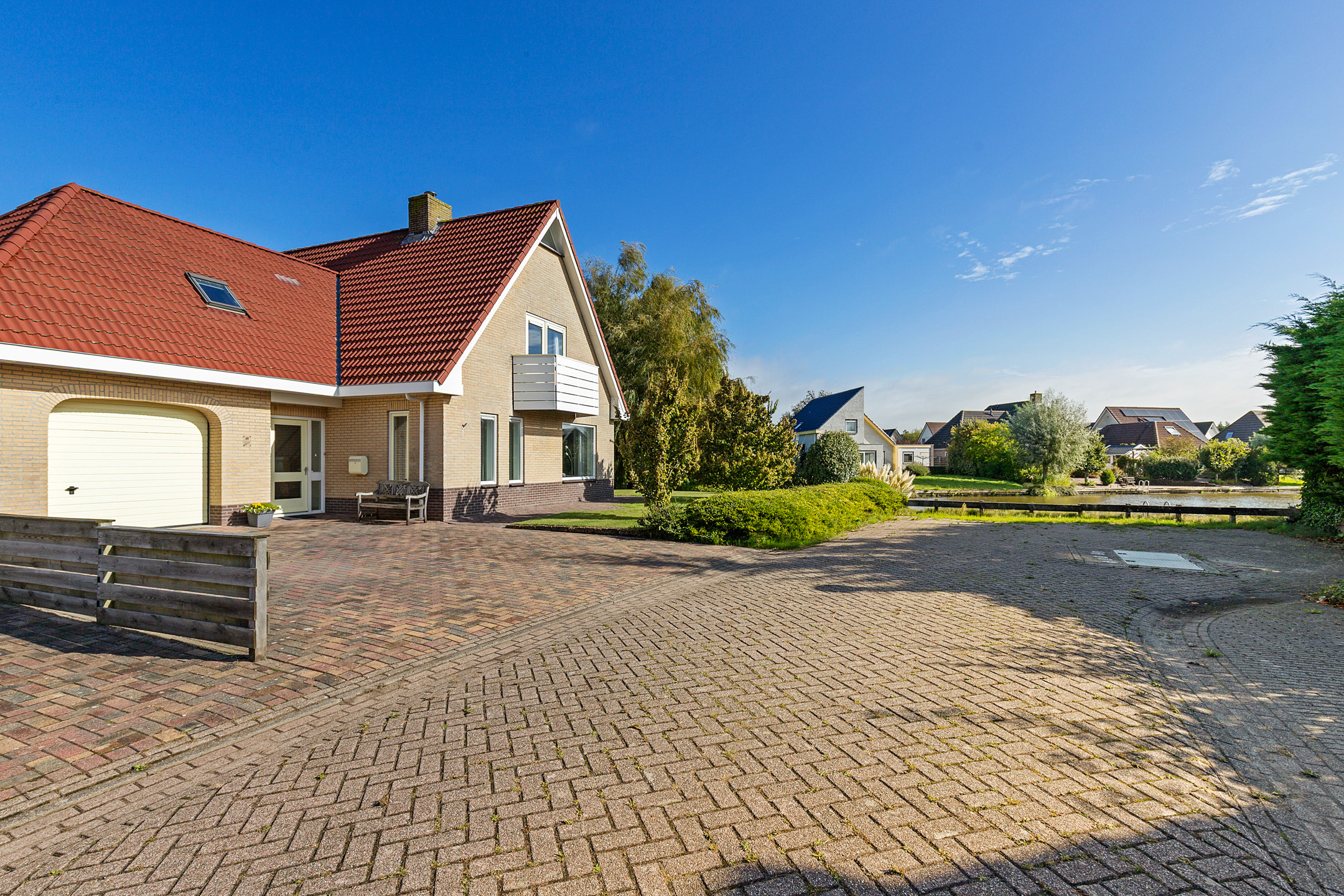 This well-maintained villa with indoor garage is situated directly on the water in one of Harlingen’s most desirable and spacious residential neighbourhoods, bordering the bird reserve *It Hegewiersterfjild*. From both the living room and kitchen, the home offers panoramic views of wide waterways and lush greenery.