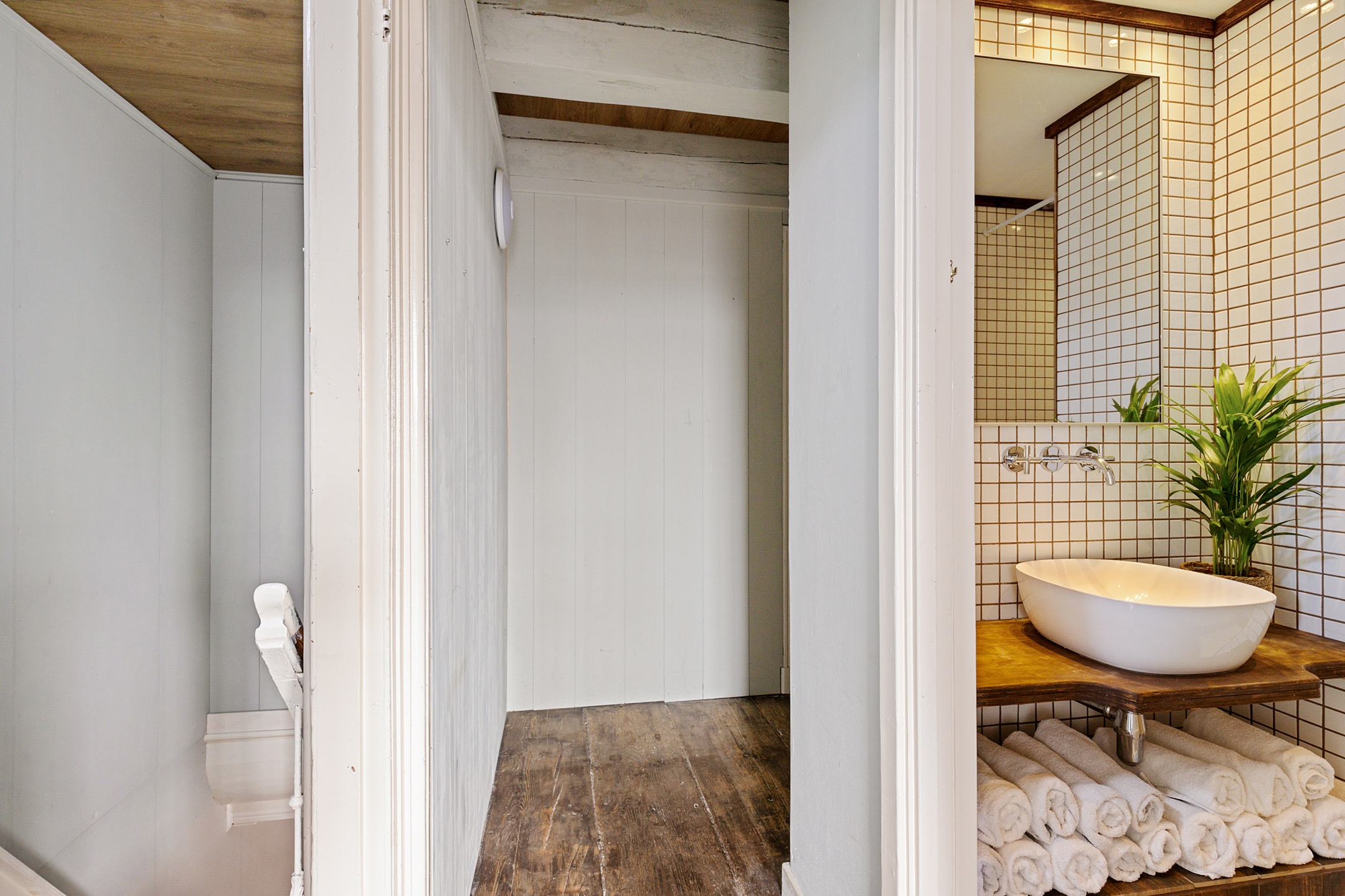 An impressive centuries old wooden staircase leads to the full attic level of 106 m2 with a ceiling height of 2.17 m where the original trusses and heavy beams remain beautifully exposed. The old cabin offers a phenomenal view over Harlingen and to the rear is a more modern roof window. This level has excellent potential for transformation into a loft style living space.