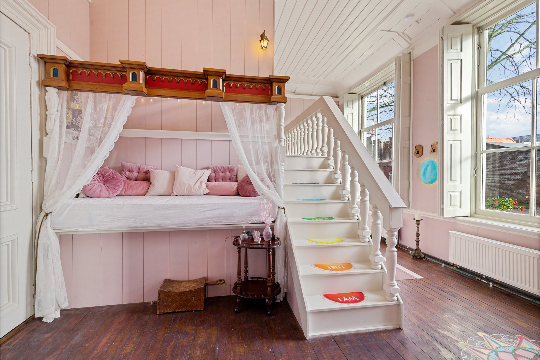 A fixed staircase leads to the second floor. Here is a charming studio apartment with complete kitchen box bed and views over the Franekereind. Directly next to the apartment is the bathroom with washbasin and shower the toilet is separate.