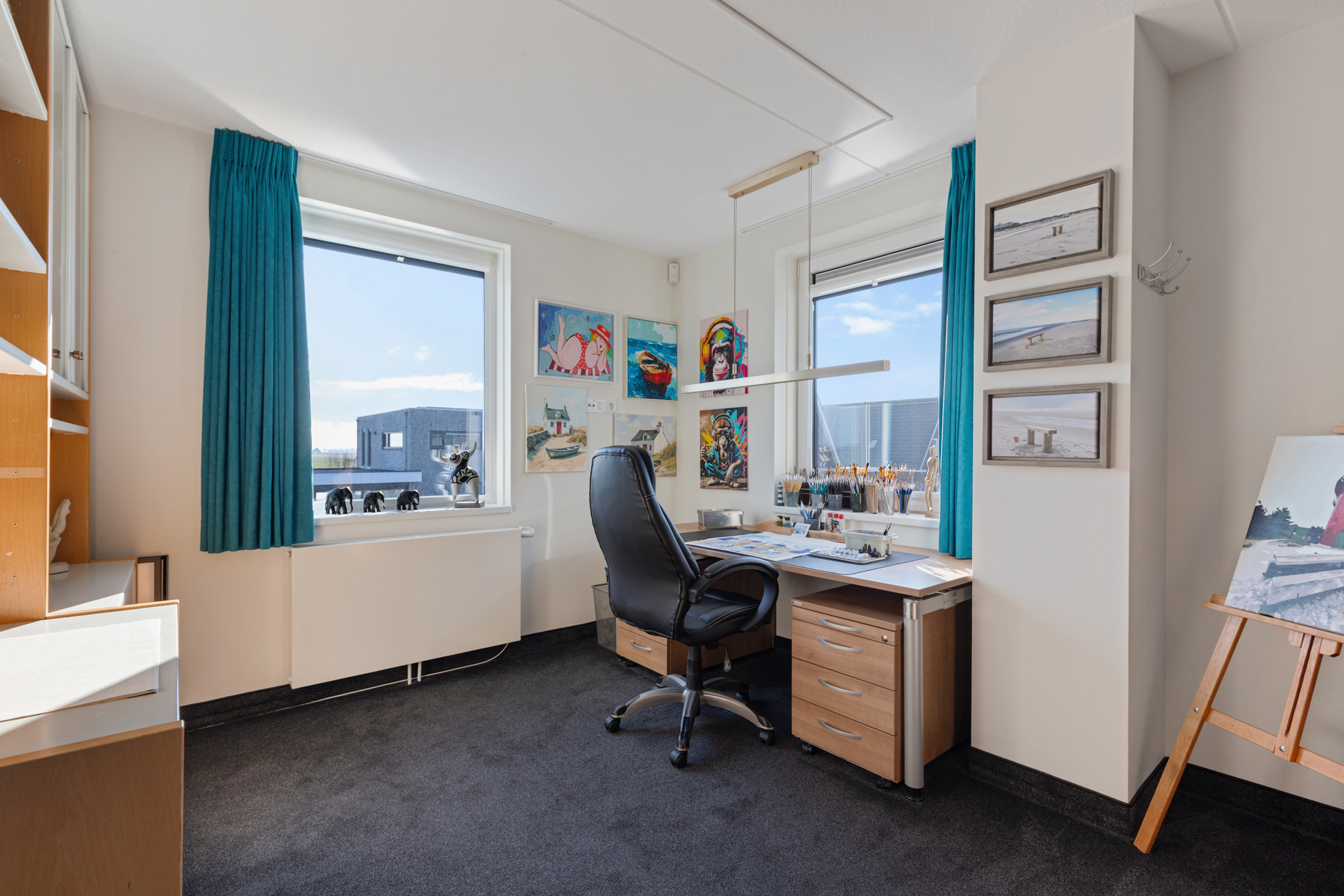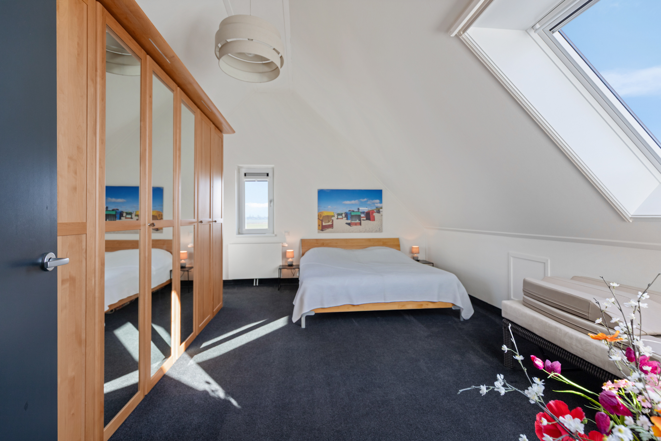 Via a fixed staircase, you reach the second floor, with two bedrooms and a large walk-in storage room (possible additional bathroom). Both rooms have high vaulted ceilings, creating a playful and spacious atmosphere. One room also features its own walk-in closet.