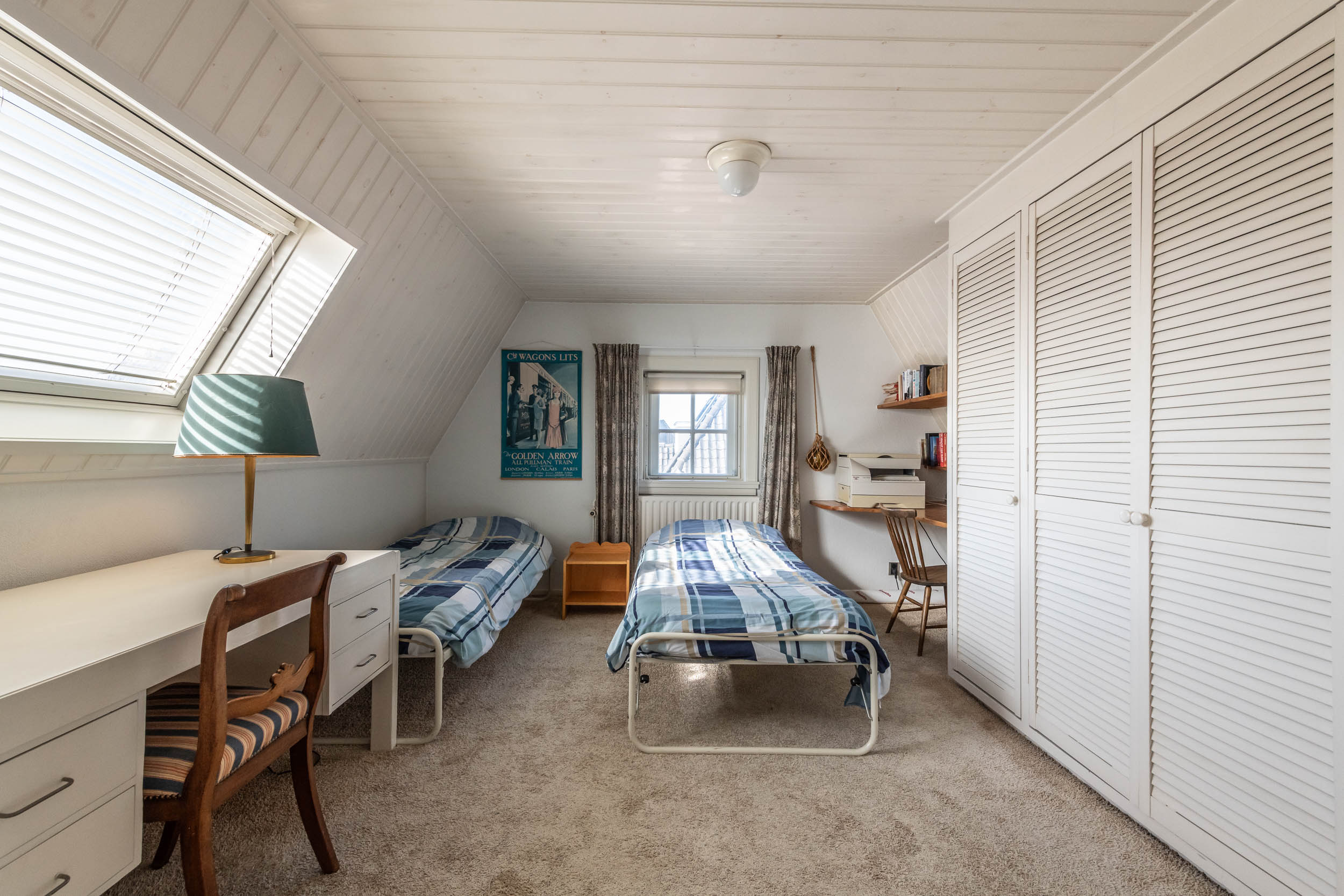 A private drive introduces the property, while the beautifully tended west-facing back garden—with sun-drenched terraces—ensures privacy and tranquility. Inside, original wenge wood flooring, a stone chimney with open fireplace, and authentic 1930s details combine with abundant natural light and generous proportions. The large, integrated studio of 17.2m² offers flexibility for work or creative pursuits, accessed through French doors from the front garden.