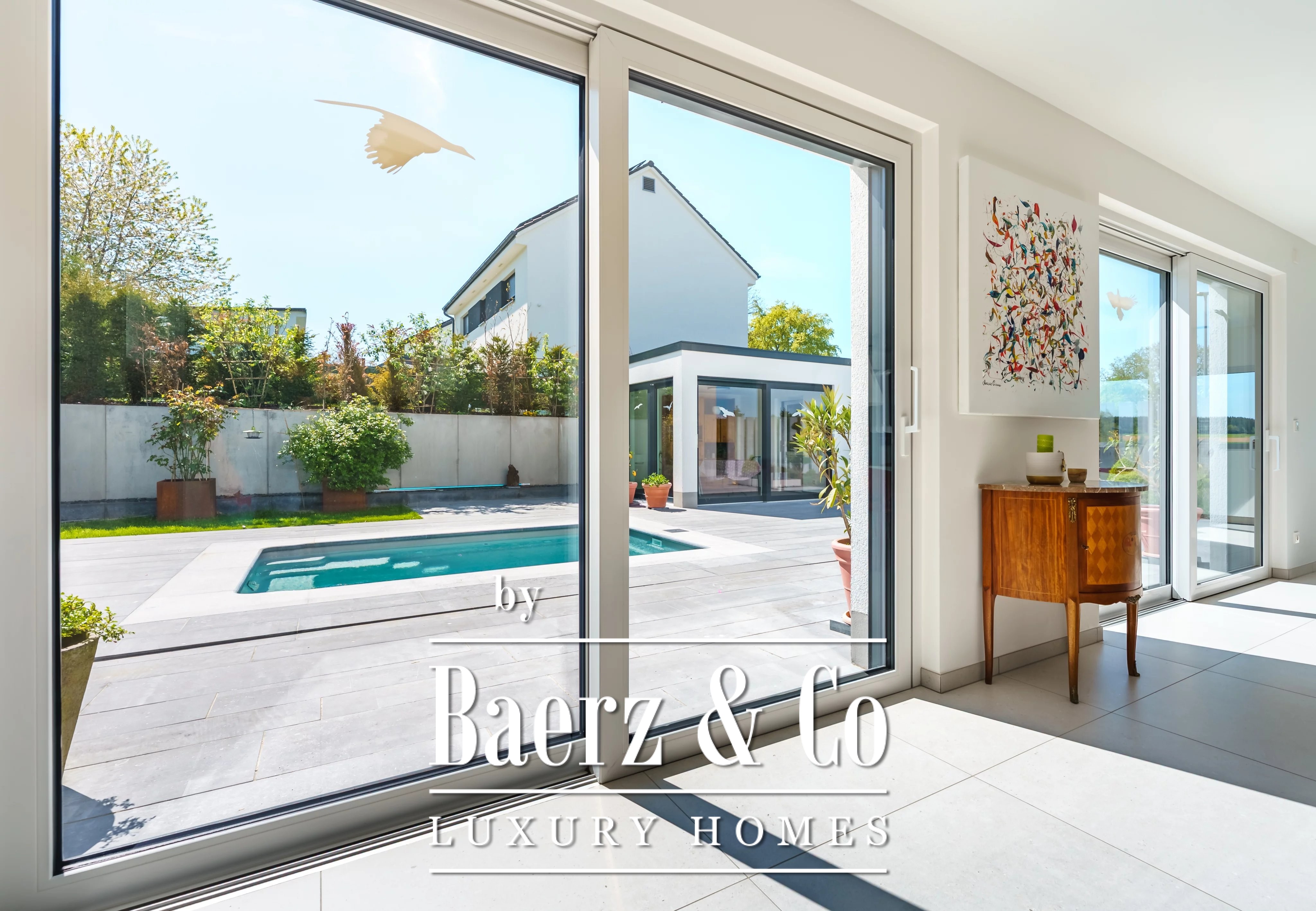 Immopartner offers a sleek, upscale villa with swimming pool and exceptional view of a Natura 2000 area.