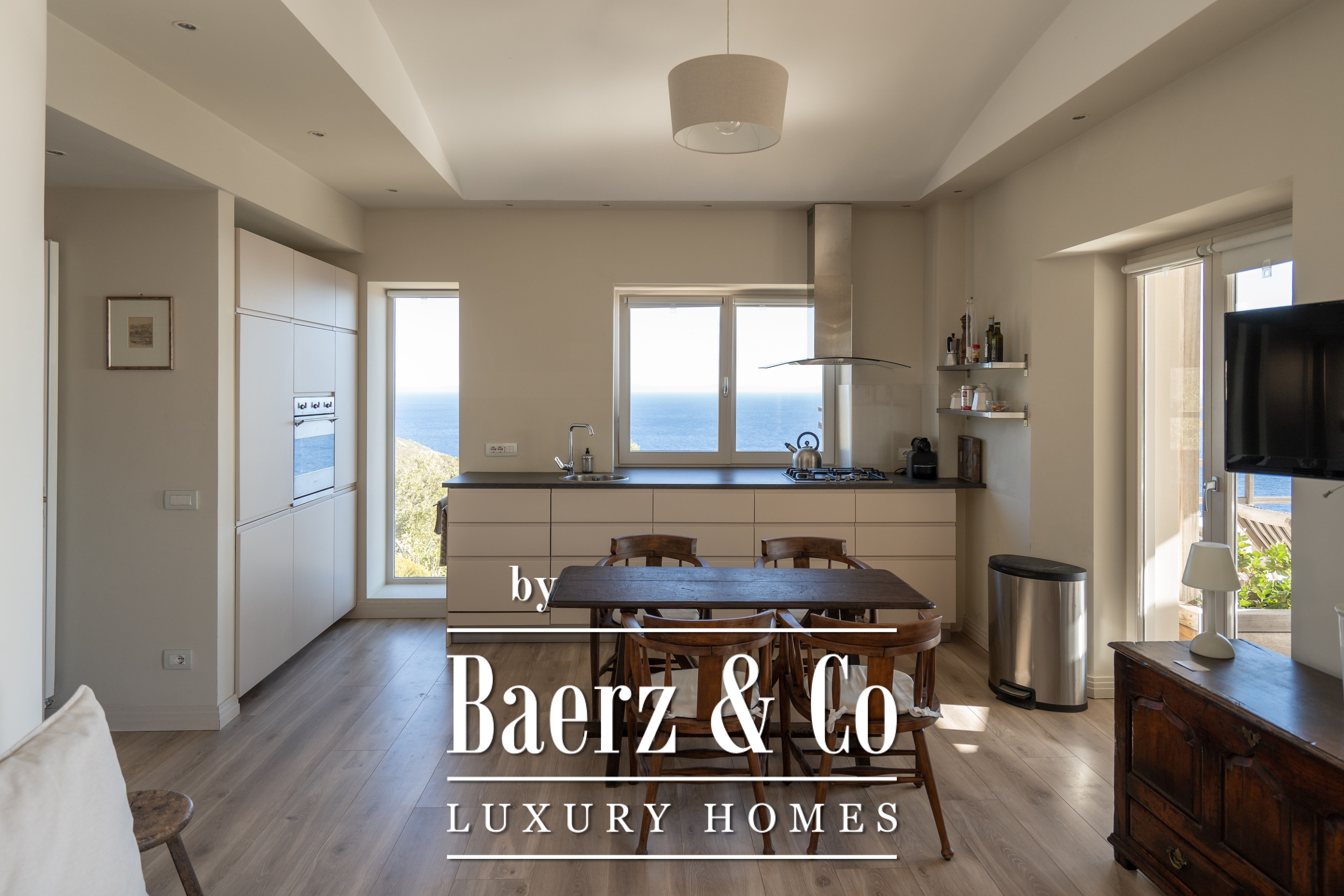 Villa Isola del Giglio with sea and mountain views is a real estate complex set on the east coast of the island, presenting 470 m² of living space. This distinctive property comprises a main villa linked by a walkway to an adjacent structure, together hosting four apartments. A fifth apartment stands independently in the gardens, newly completed in 2022. All five apartments are appointed with a double bedroom and private bath, and select living areas offer additional sofa accommodations. In total, the villa hosts up to 18 guests across carefully delineated interiors.