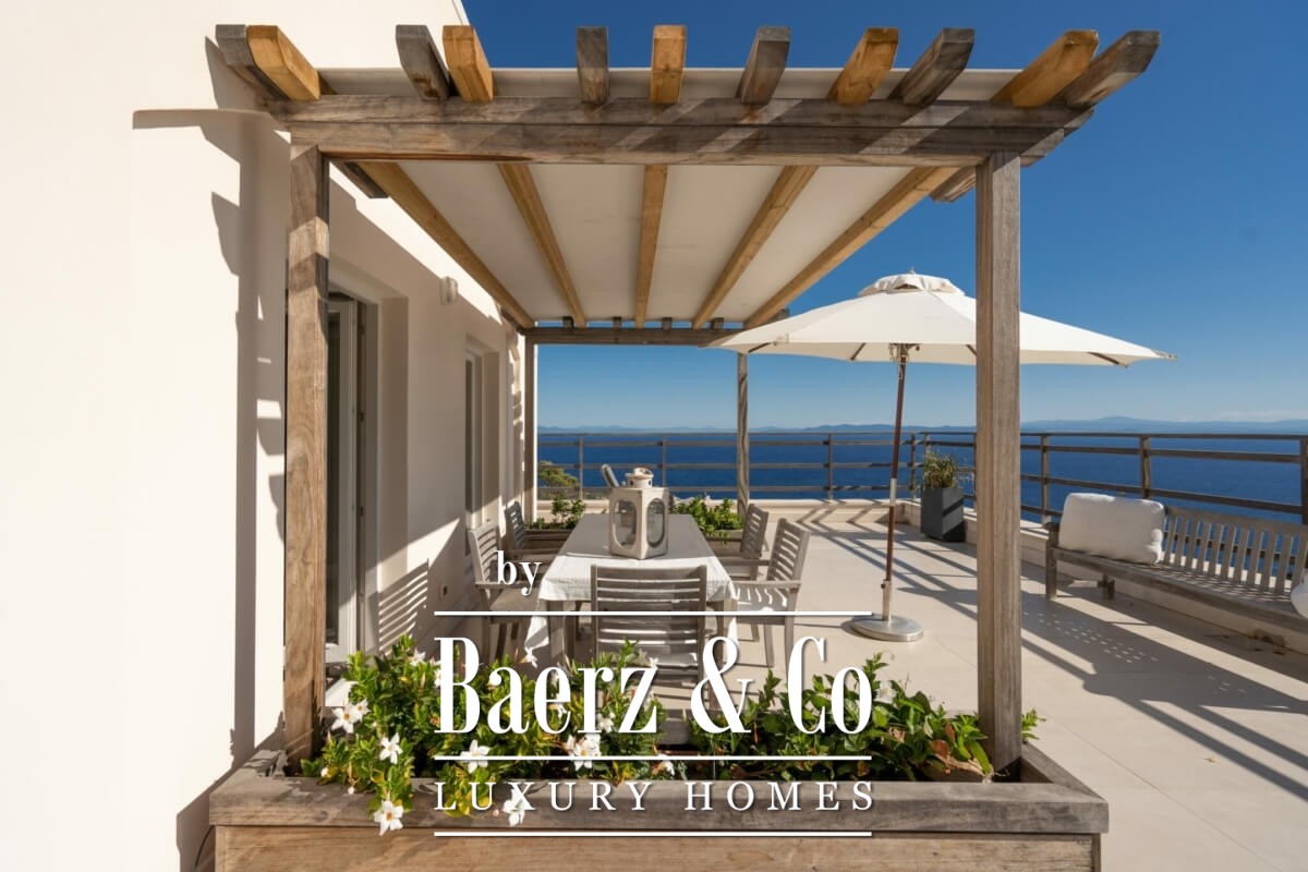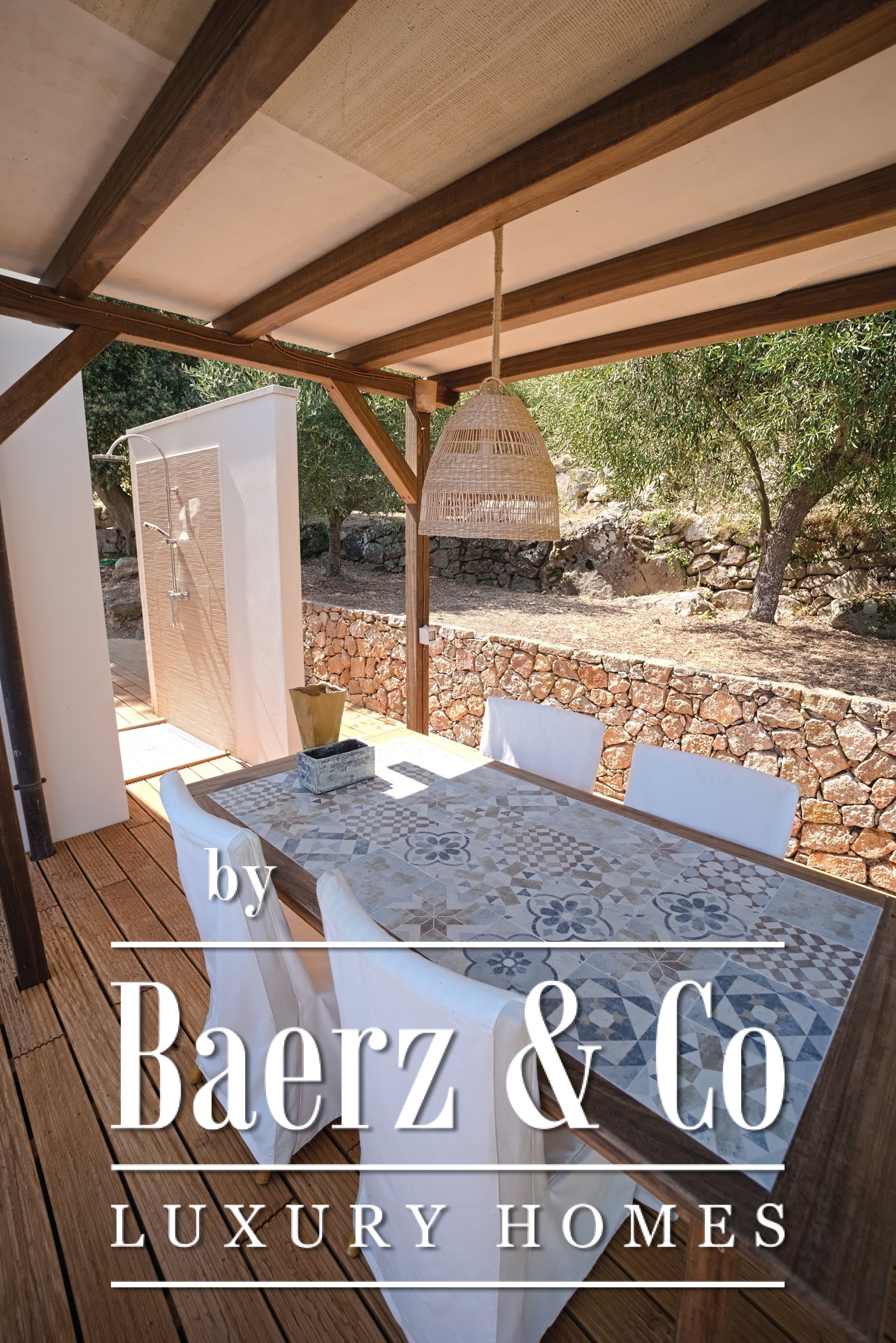 The original villa, designed in the 1950s by a noted architect, was restored in the early 2000s to preserve both authenticity and architectural integrity. Terraced gardens, Mediterranean vegetation and thriving olive groves envelop the 9,000 m² plot, affording calm and privacy. The main terrace looks out to vistas that trace the turquoise sea, Arenella beach, Monte Argentario and the island of Giannutri.