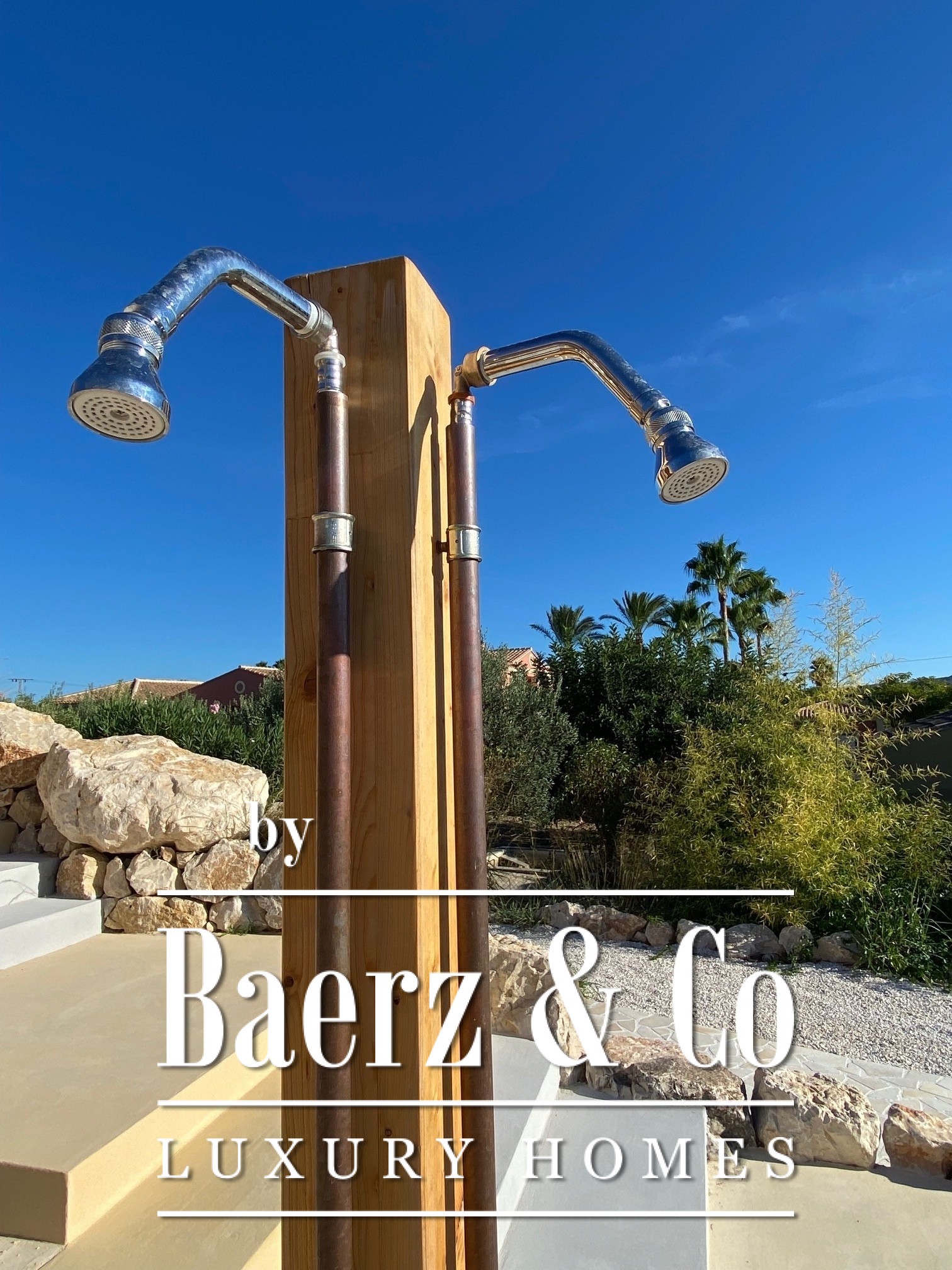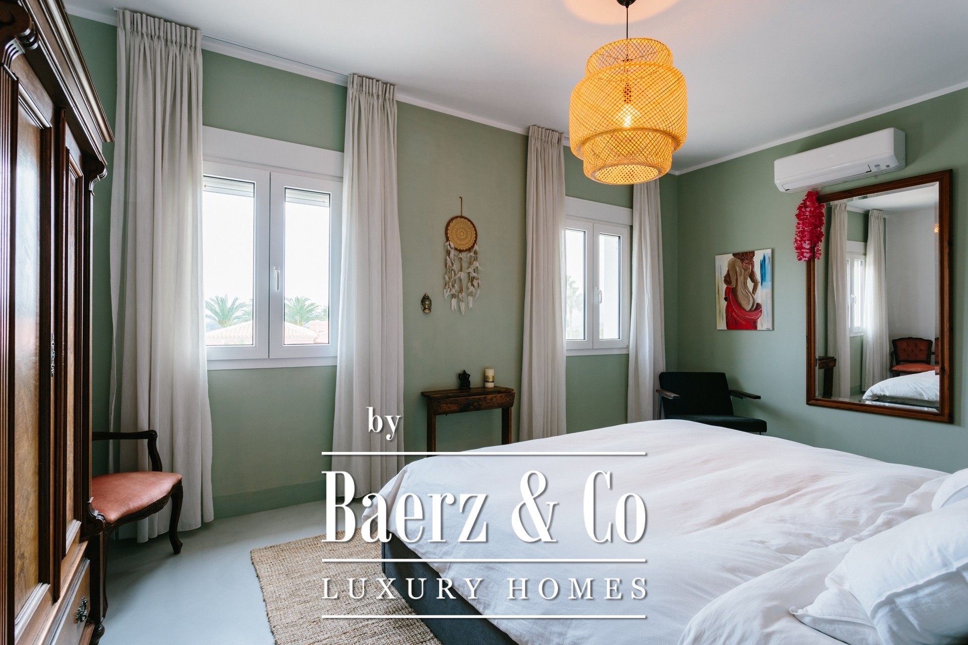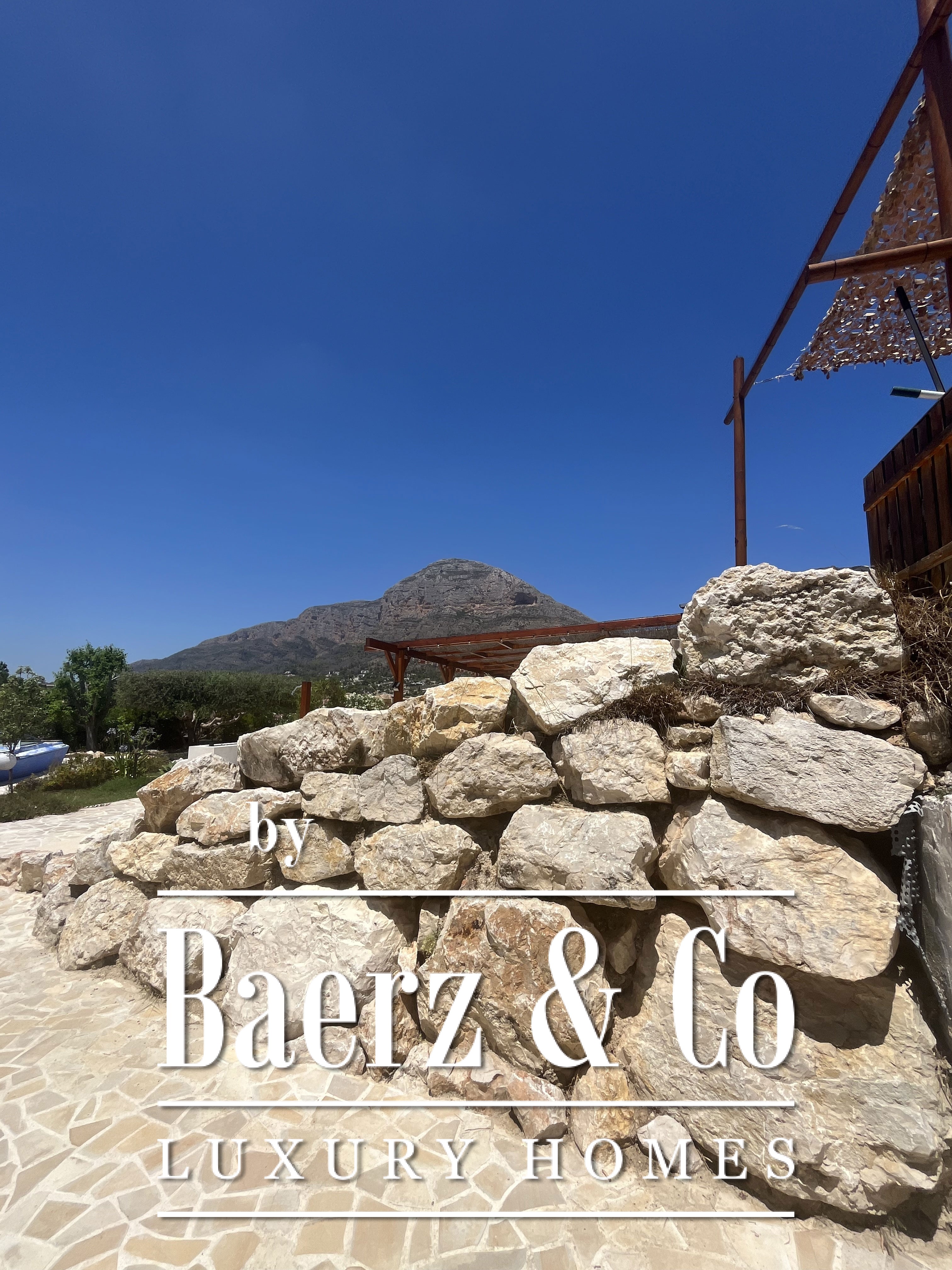 Set on a former olive grove of 1,700 m², the finca enjoys uninterrupted views of the lush green valley and the majestic Montgó Mountain.