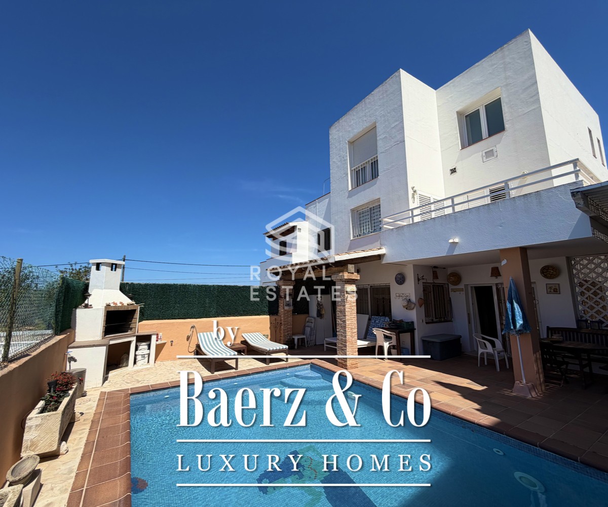 On the first floor, three double bedrooms enjoy ample proportions and natural light, with two offering direct access to a private terrace. The master bedroom, secluded on the top level, includes a hydromassage bathtub and views towards Dalt Vila, alongside a laundry area and additional flexible room. Outdoor areas, adorned with greenery, flowers and a lemon tree, invite year round enjoyment. With its combination of comfort, functionality and premiere location, this home offers an authentic approach to Ibiza island living.