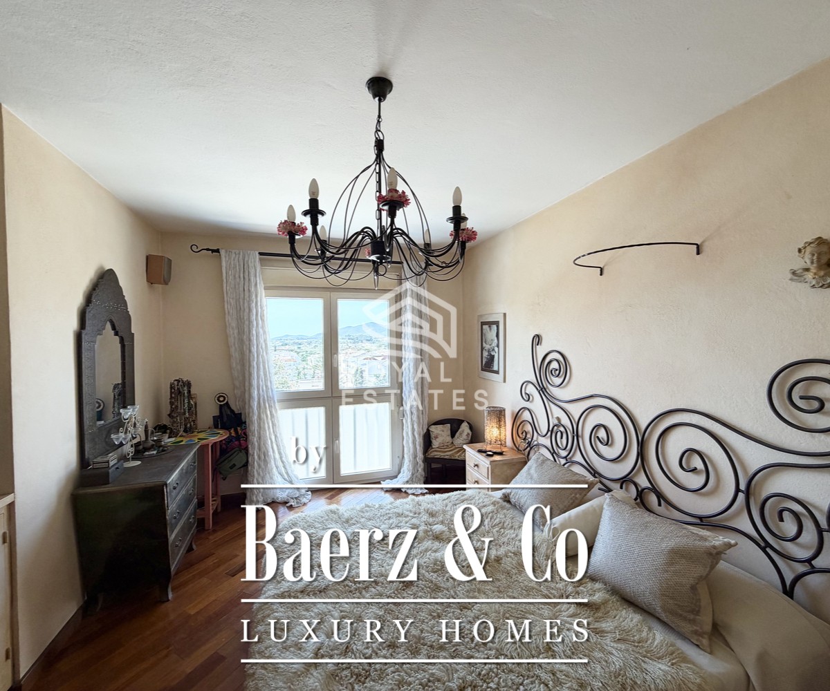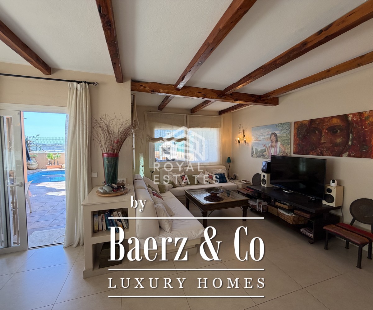 The ground floor welcomes you with a luminous living and dining area, seamlessly connecting to a sun filled terrace. Large windows invite natural light, enhancing the indoor outdoor flow, while a covered porch offers shade in the warmer months. A private swimming pool, surrounded by a well tended garden, forms a serene backdrop ideal for relaxation. The newly renovated kitchen, with a practical pantry, is complemented by a dedicated office space designed for remote work or quiet study.