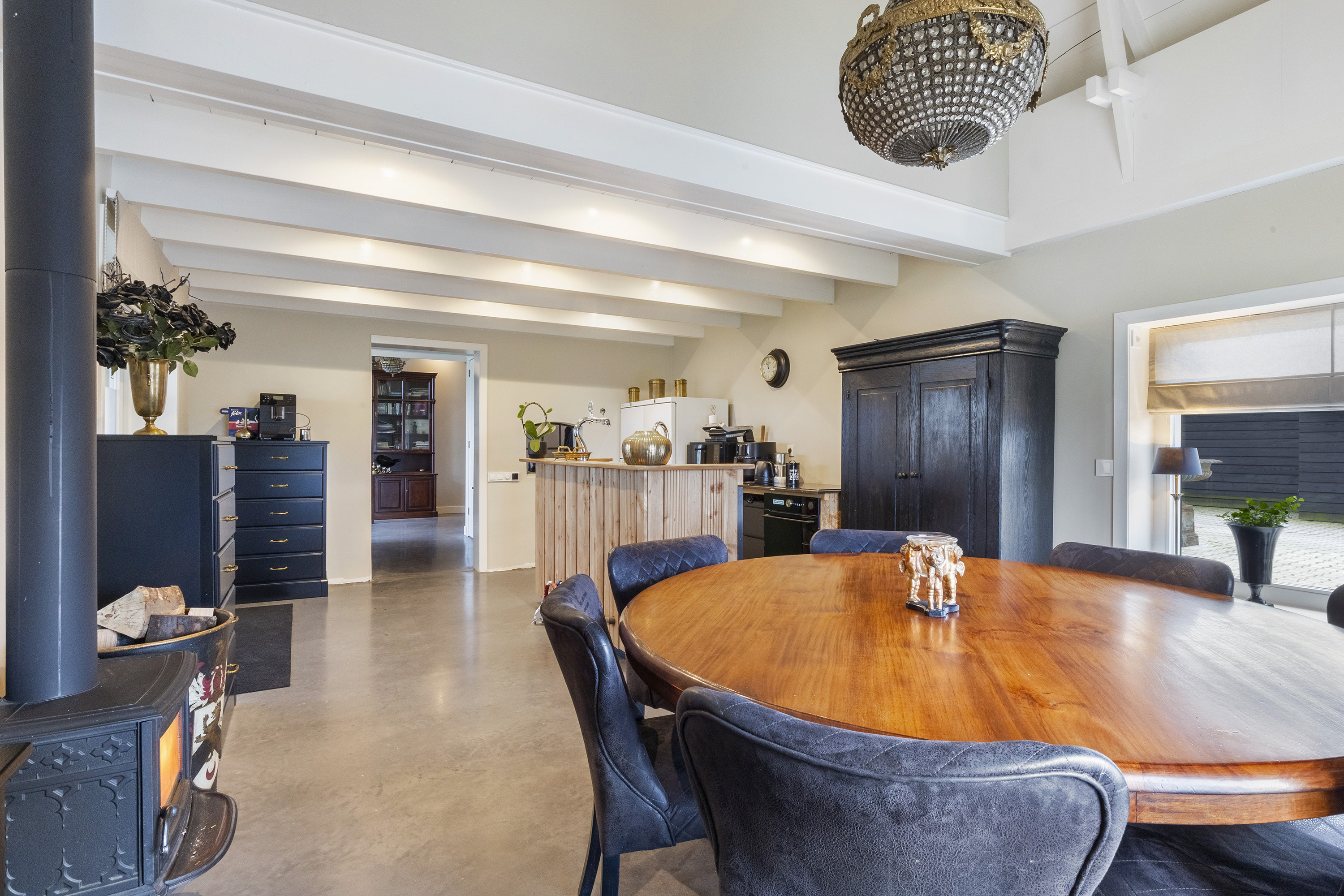 The farmhouse itself exudes atmosphere and authenticity, with high ceilings, exposed beams and a warm selection of materials, combined with contemporary levels of comfort. Thanks to high-quality insulation of the roof, floors and walls, underfloor heating, new timber window frames with HR++ glazing and a modern electrical installation, the property benefits from an energy label A.