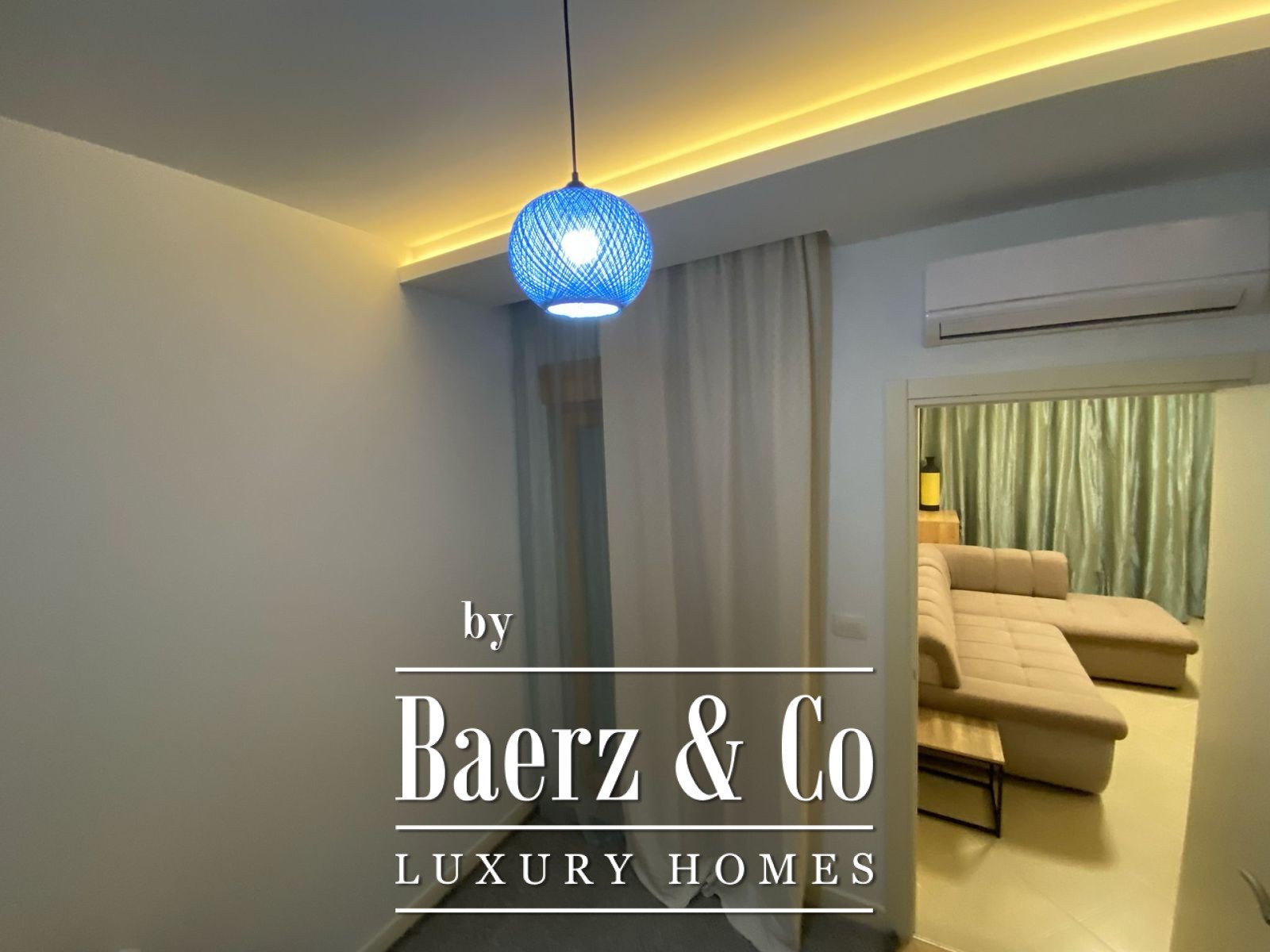 Structure of the apartment: hallway, living room with kitchen and dining table, 2 bedrooms, a bathroom, a toilet and a terrace. It has a view of the sea and the view of the mountains that surround it. The apartment is fully furnished and ready to move in.