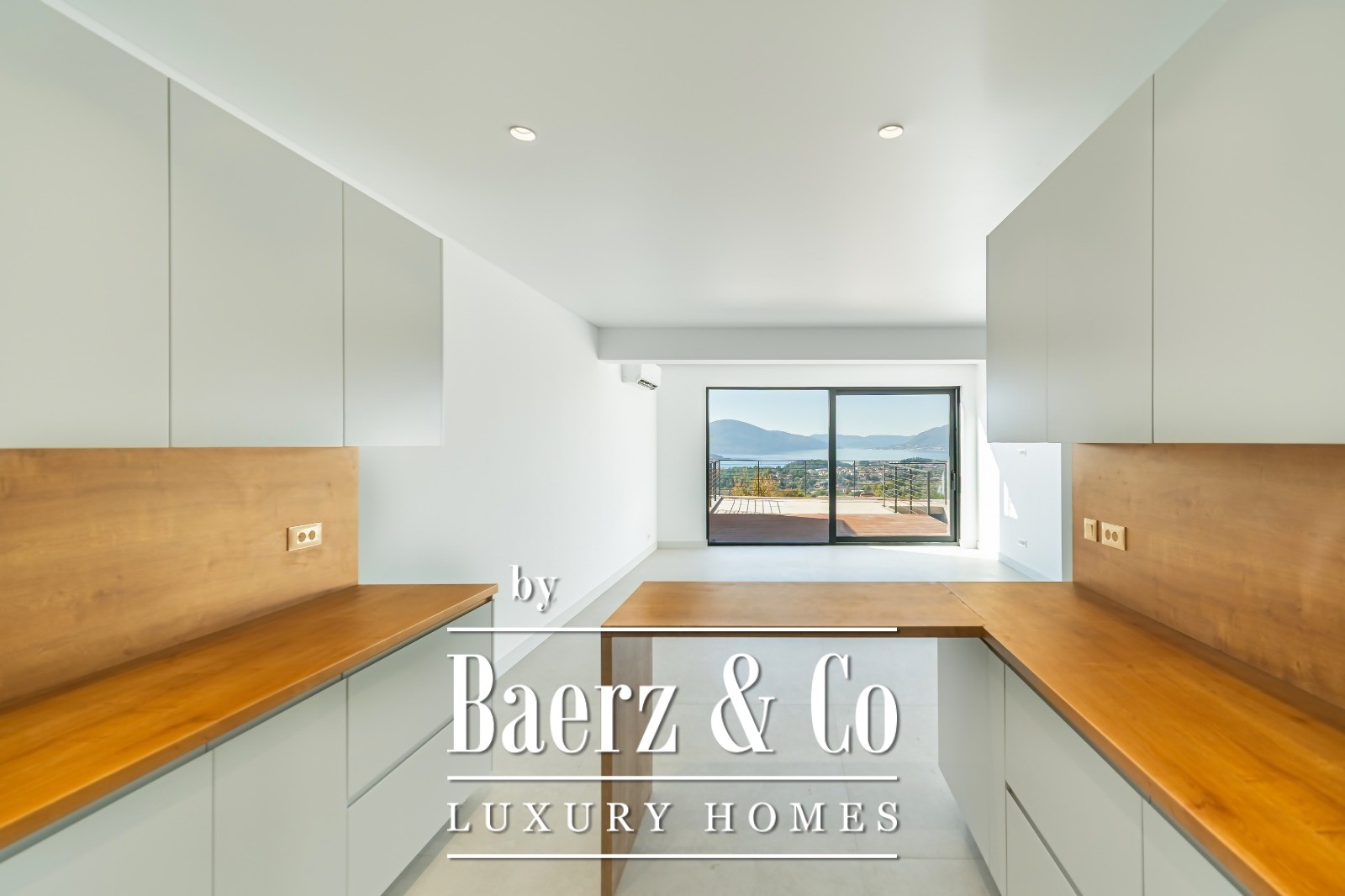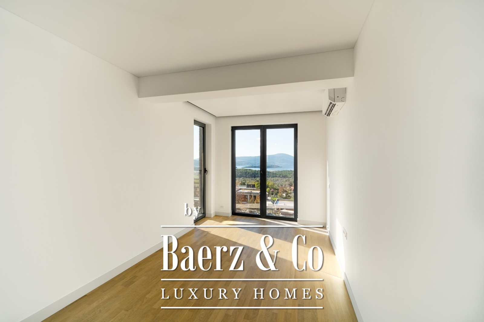 Air conditioning in the living area and master suite, underfloor heating in bathrooms and kitchen, and shockproof panoramic windows enhance both comfort and security. The grounds provide parking, a landscaped terrace, and the opportunity to tailor options such as a swimming pool or gym to individual preference, making this luxury townhouse for sale in Kotor adaptable to a discerning owner’s vision.