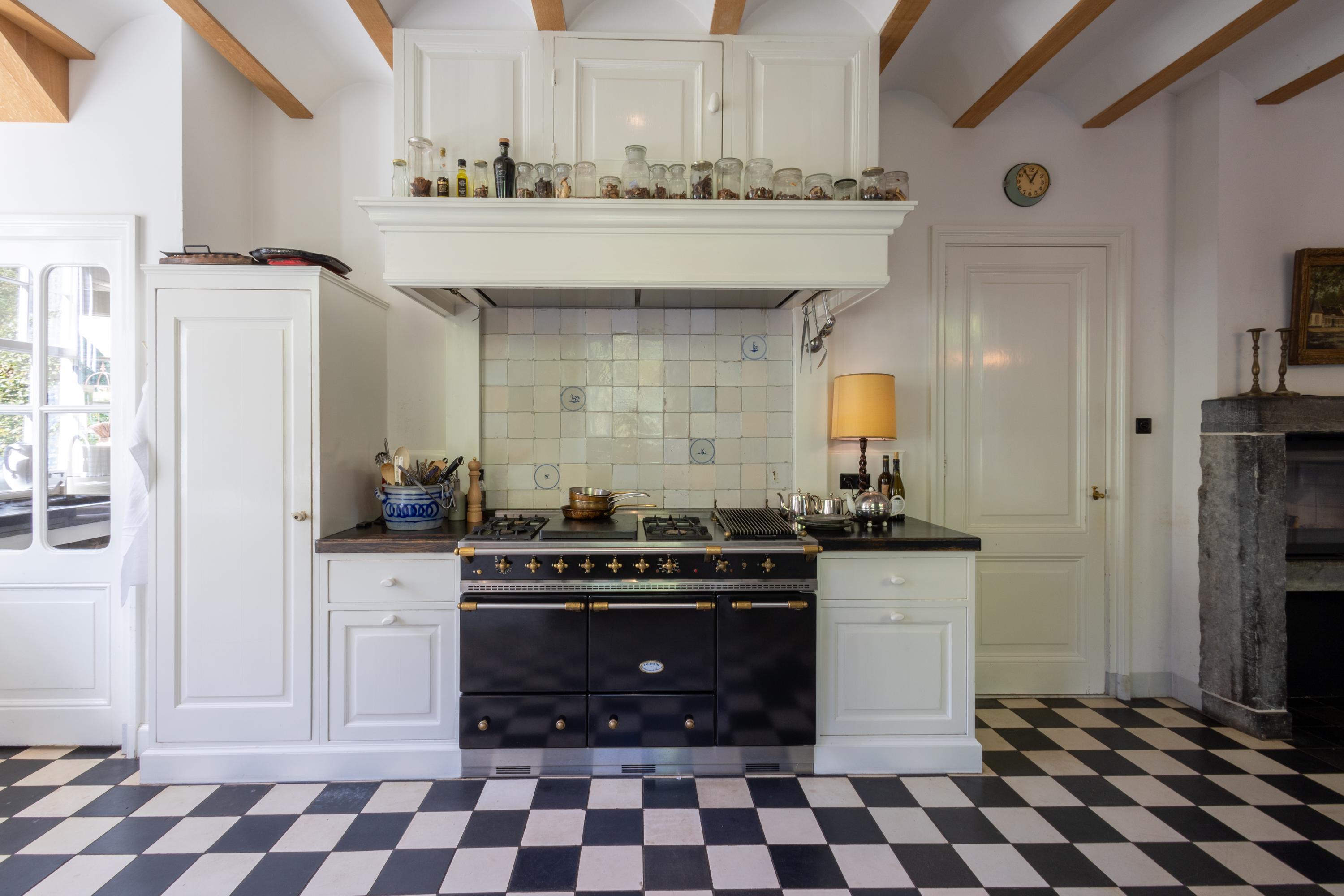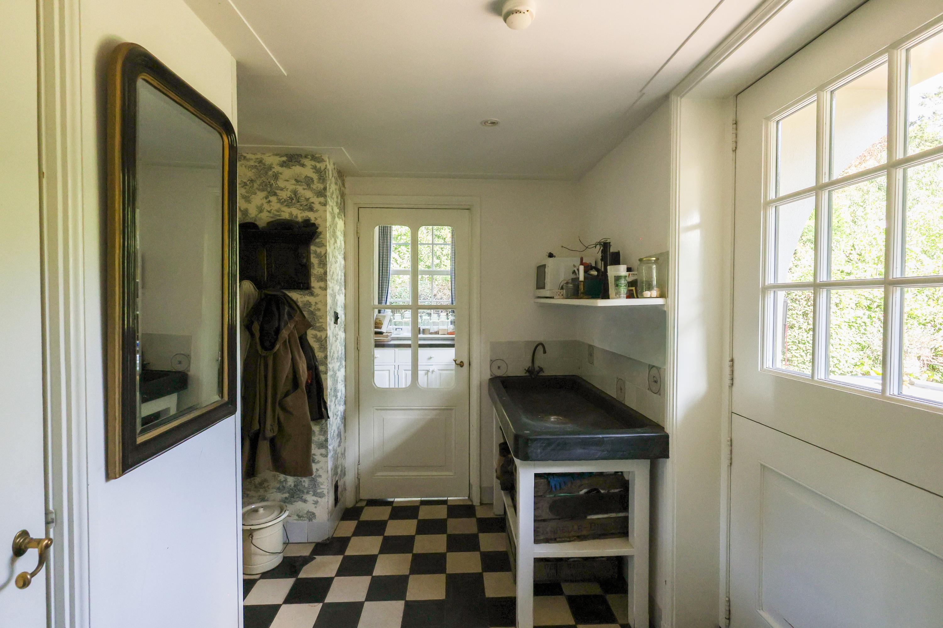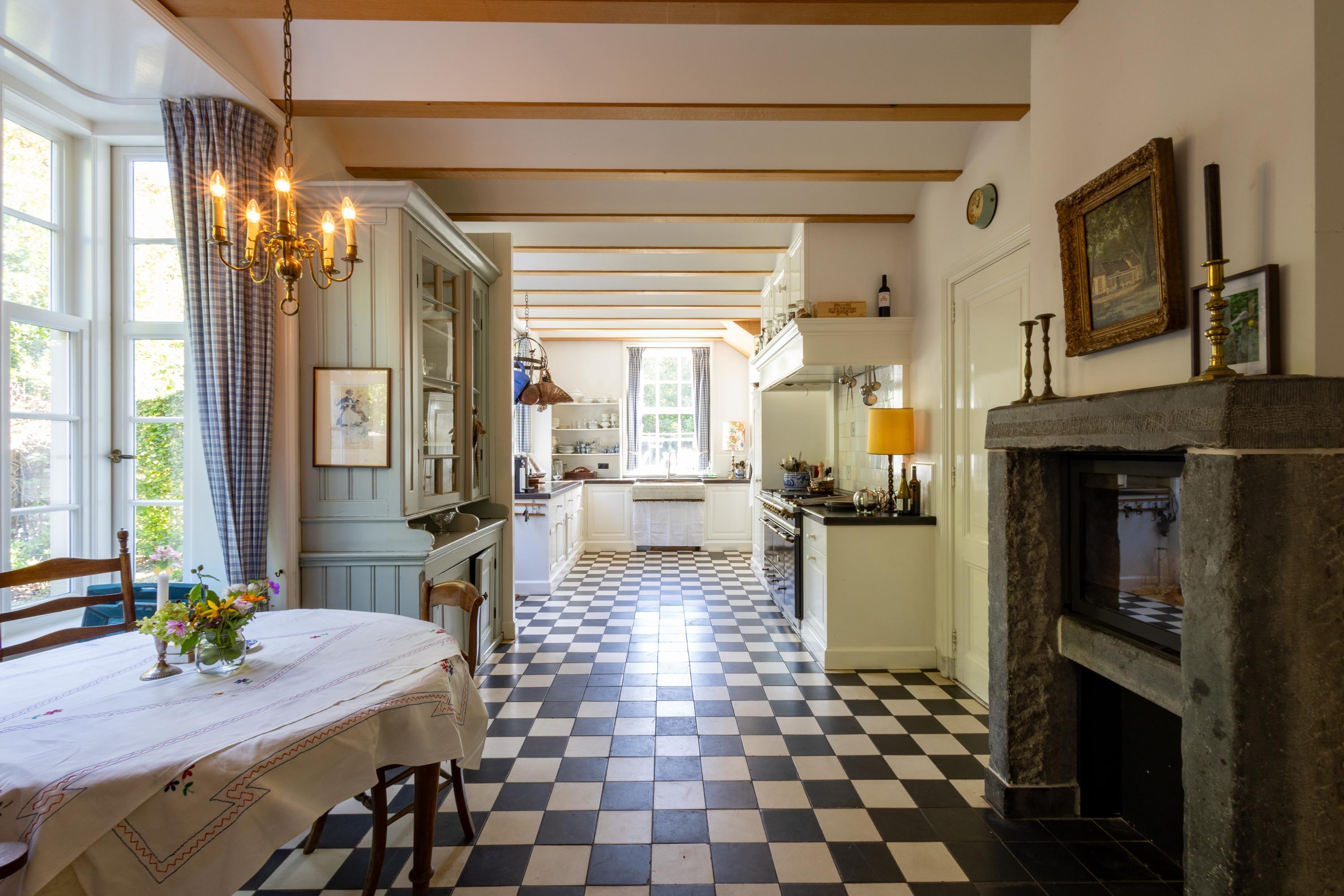 What truly sets this home apart is the soul with which it was built. Designed in 2012 by architect Van Asbeck, the villa owes its unique character to the carefully sourced, reclaimed materials. Parquet floors that once graced historic buildings, centuries-old children’s play tiles incorporated into the skirting and kitchen, doors with a story, roof tiles from a former Utrecht barracks, and even old cheese boards that have found a new purpose. In the kitchen stands a cabinet from an Amsterdam canal house — fitting seamlessly into the home’s atmosphere. Every detail breathes history and authenticity, together giving the house a rare sense of spirit and depth.