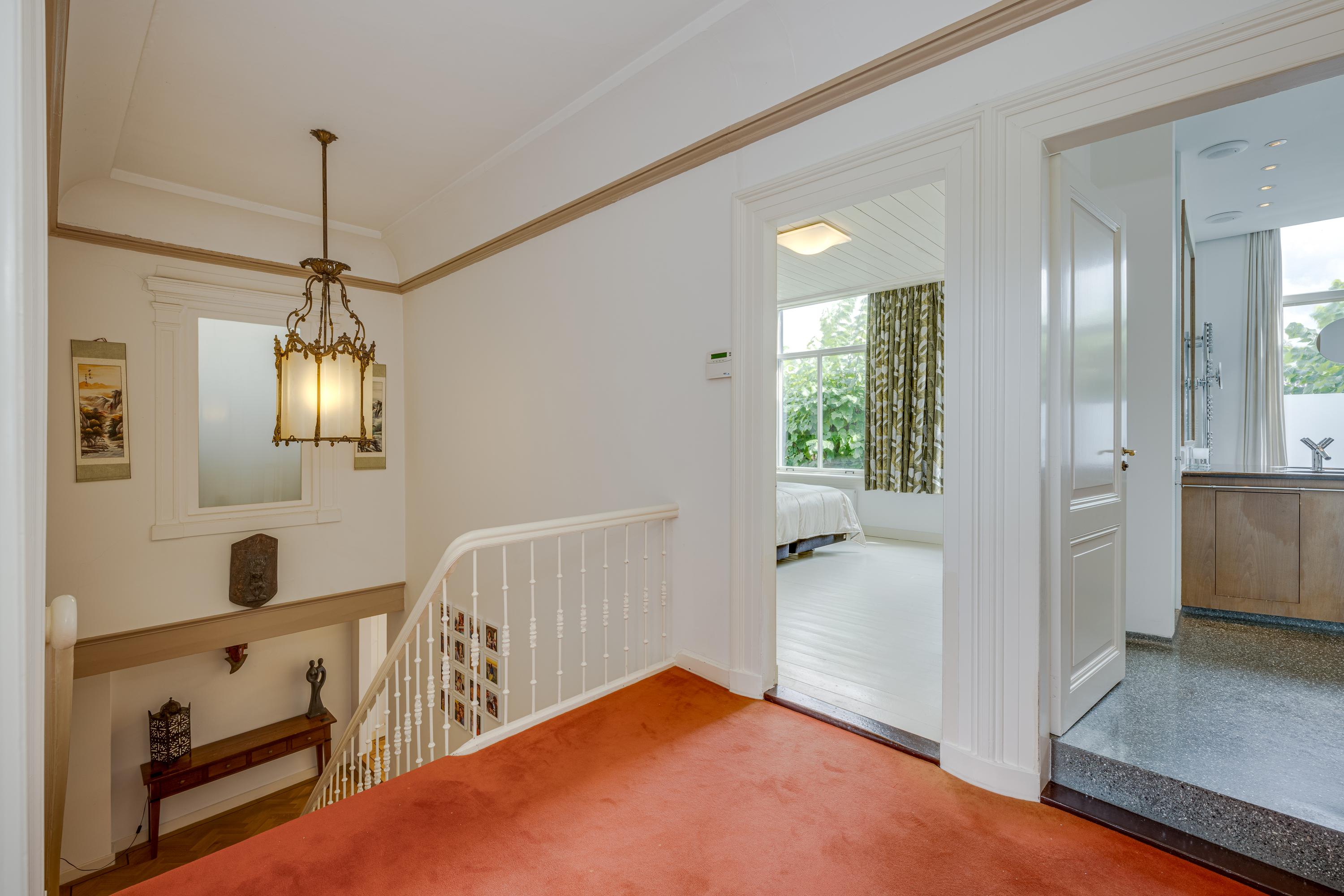 The main building from 1820 is characterised by the classic style elements from that period: a central entrance with two windows with shutters on either side and on the first floor the beginning of the roof with a central facade with three windows with shutters. The characteristics characteristic of this construction period are also present inside; high stately ceilings and windows on all sides provide beautiful light at any time of the day. On the ground floor there is an L-shaped living room en suite, fireplace with a conservatory on the garden side and a view of the Rhine on the water side. The central hall runs from front to back and has French doors to the garden with terrace on the water side. On the left side of the hall are the kitchen with utility room with a passage to the barn, the spacious basement and the formal dining room with again a beautiful view of the Rhine and the passing boats.
