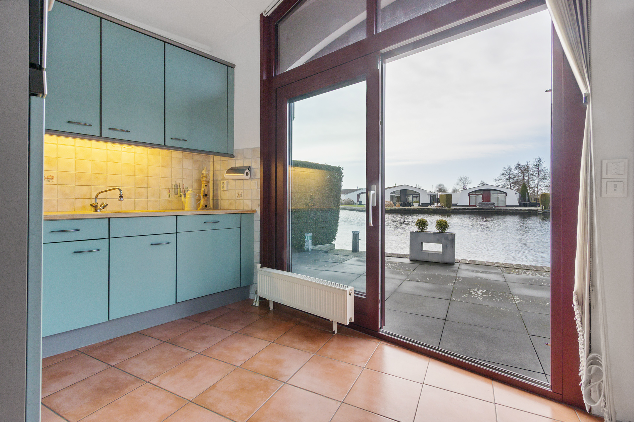 The garden is low-maintenance and features multiple terraces. Thanks to its south-facing position along the water, you benefit optimally from sunlight and natural light throughout the day. Whether you wish to enjoy a peaceful breakfast by the water in the morning or drinks in the sheltered evening sun, there is always a perfect spot to be found.