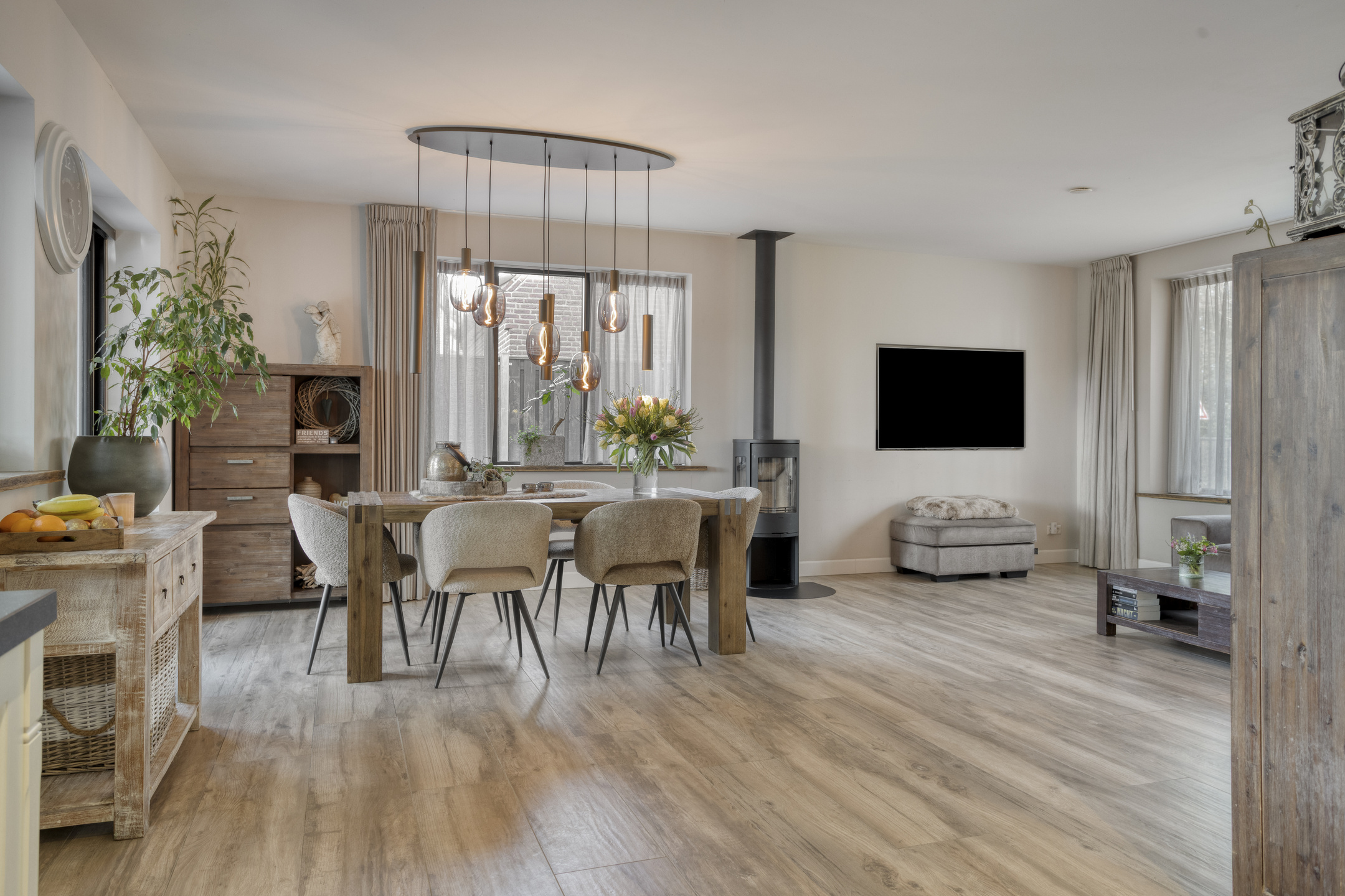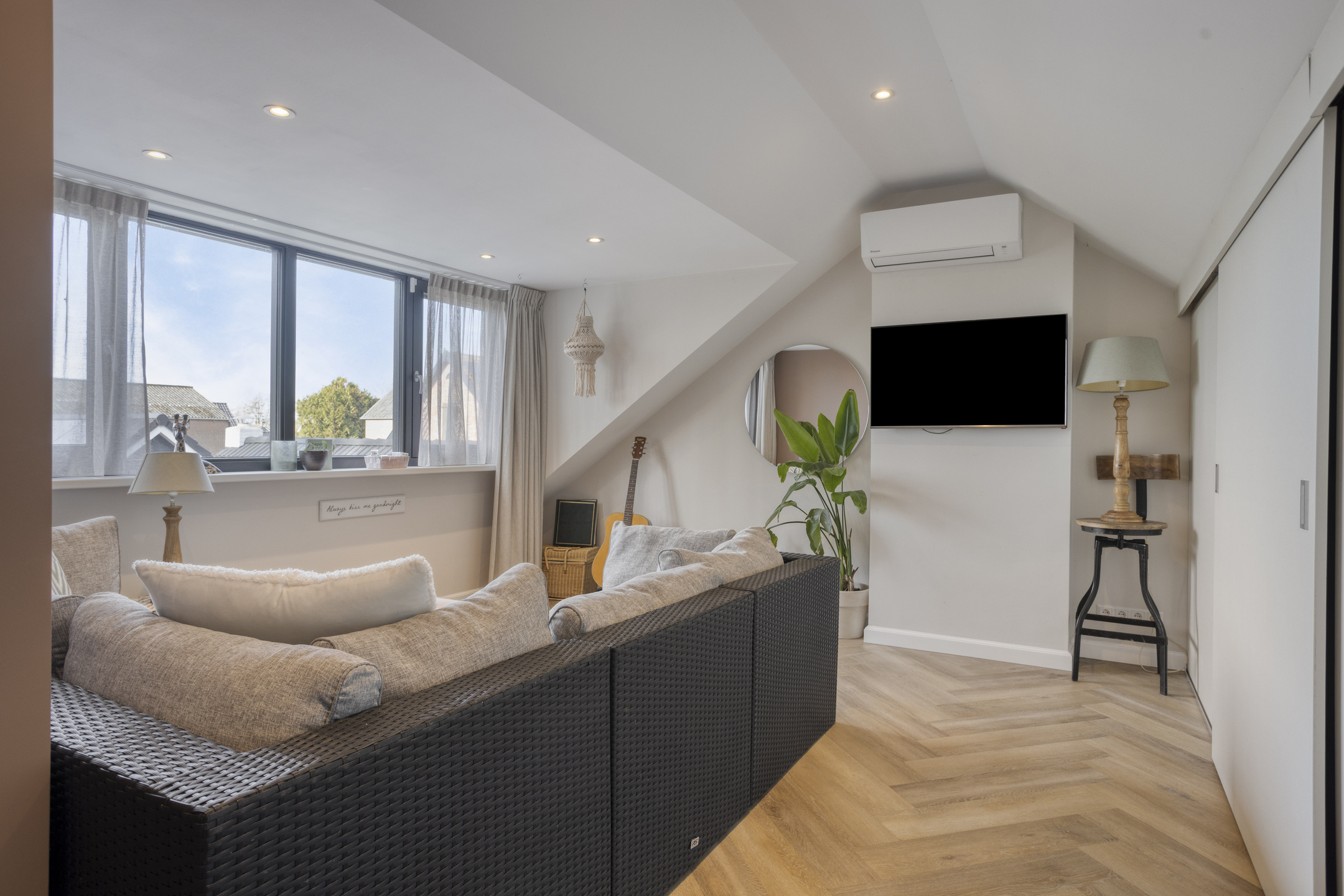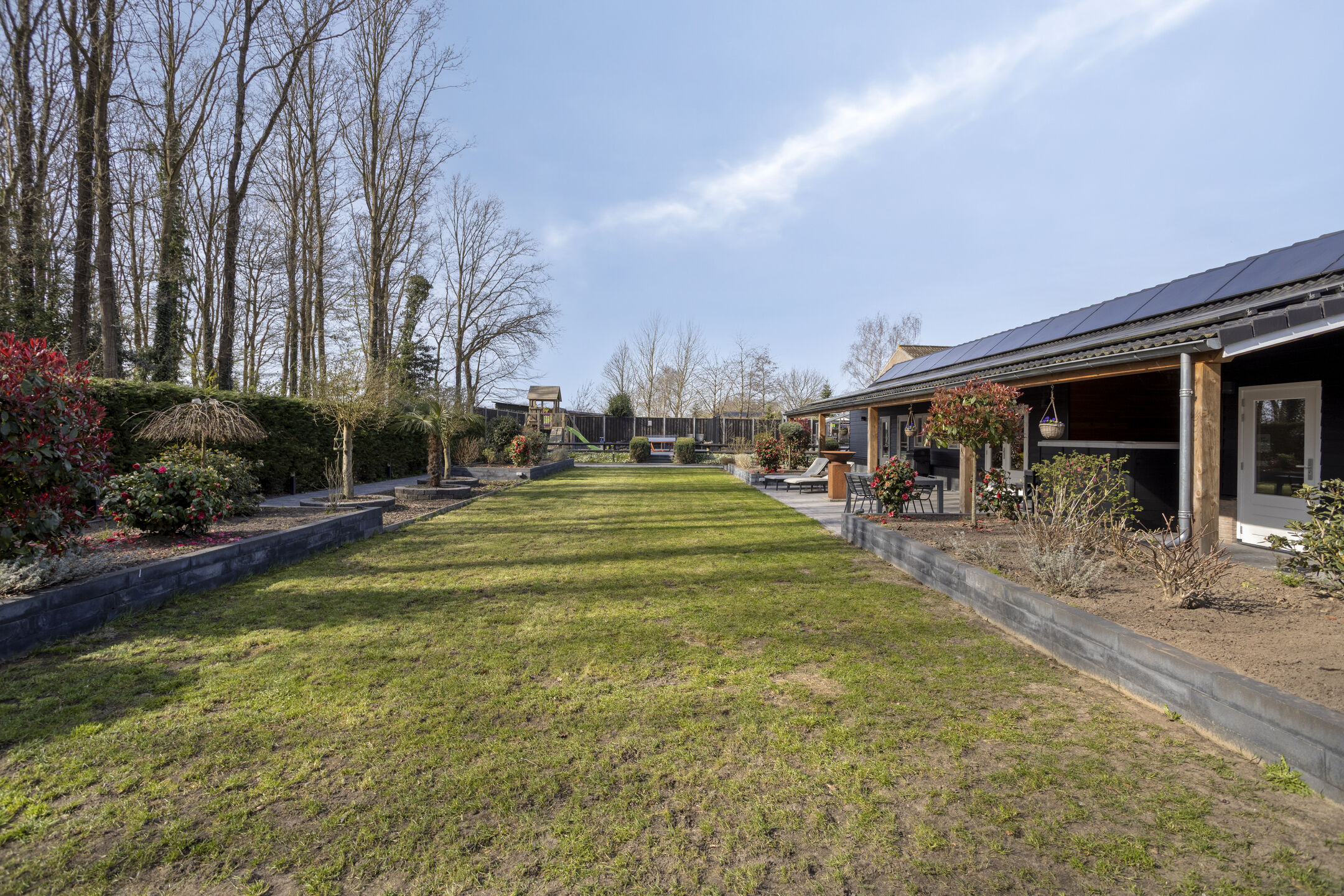 Extremely sustainable and energy-efficient (energy label A+++), this home is fully future-proof and equipped with every conceivable modern installation. Features include double wall insulation, floor and roof insulation, HR++ glazing in hardwood frames, an air-source heat pump with a 260-litre boiler tank, underfloor heating on both the ground and first floors, no fewer than 44 solar panels, and multiple air conditioning units.